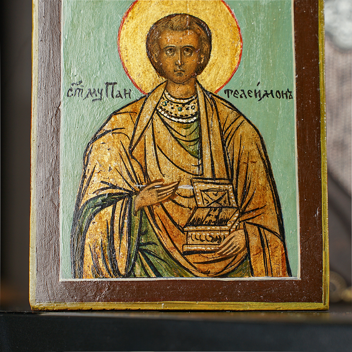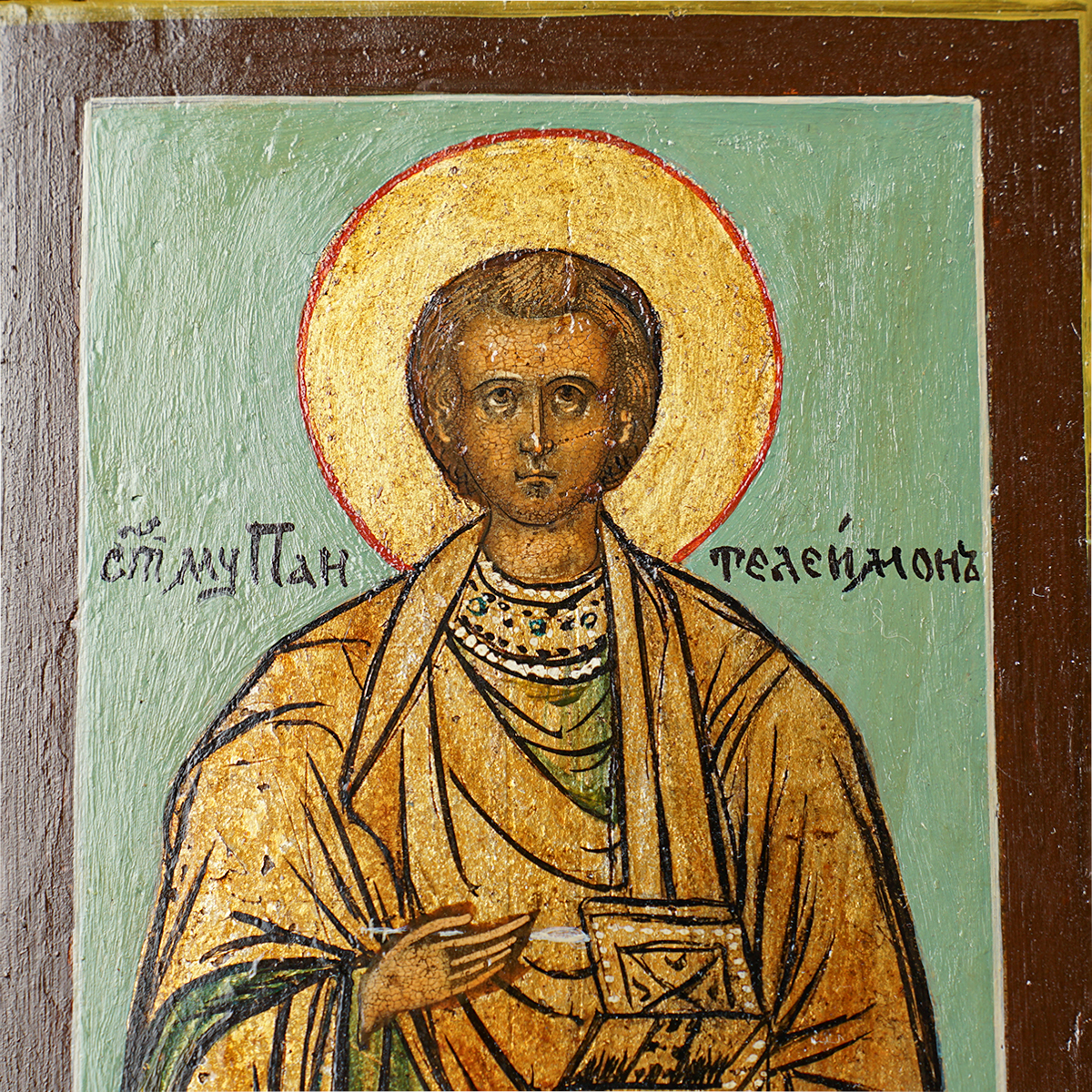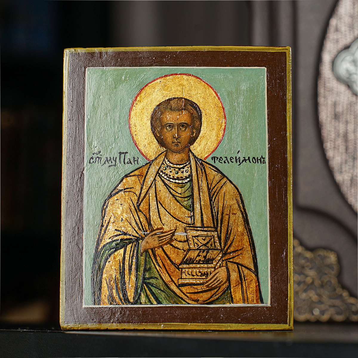 Старинная икона Пантелеймона Целителя последней четверти 19 века, центральные регионы православия (13х11 см)