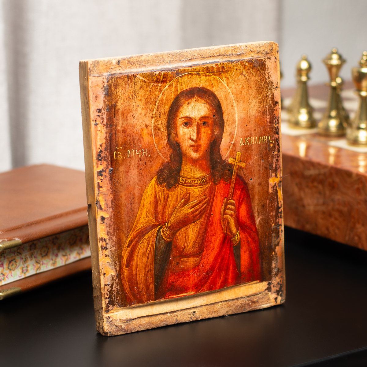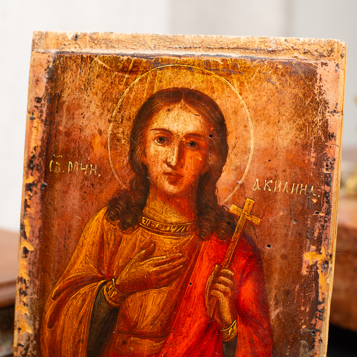 Старинная икона святой Мученицы Акилины Финикийской последней трети 19 века, центральная Украина (без реставрации)
