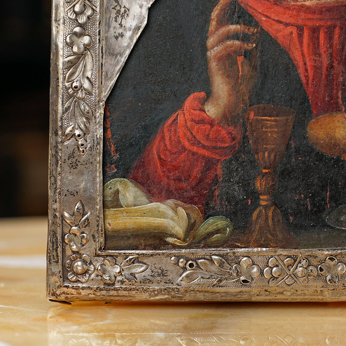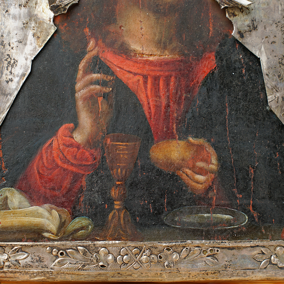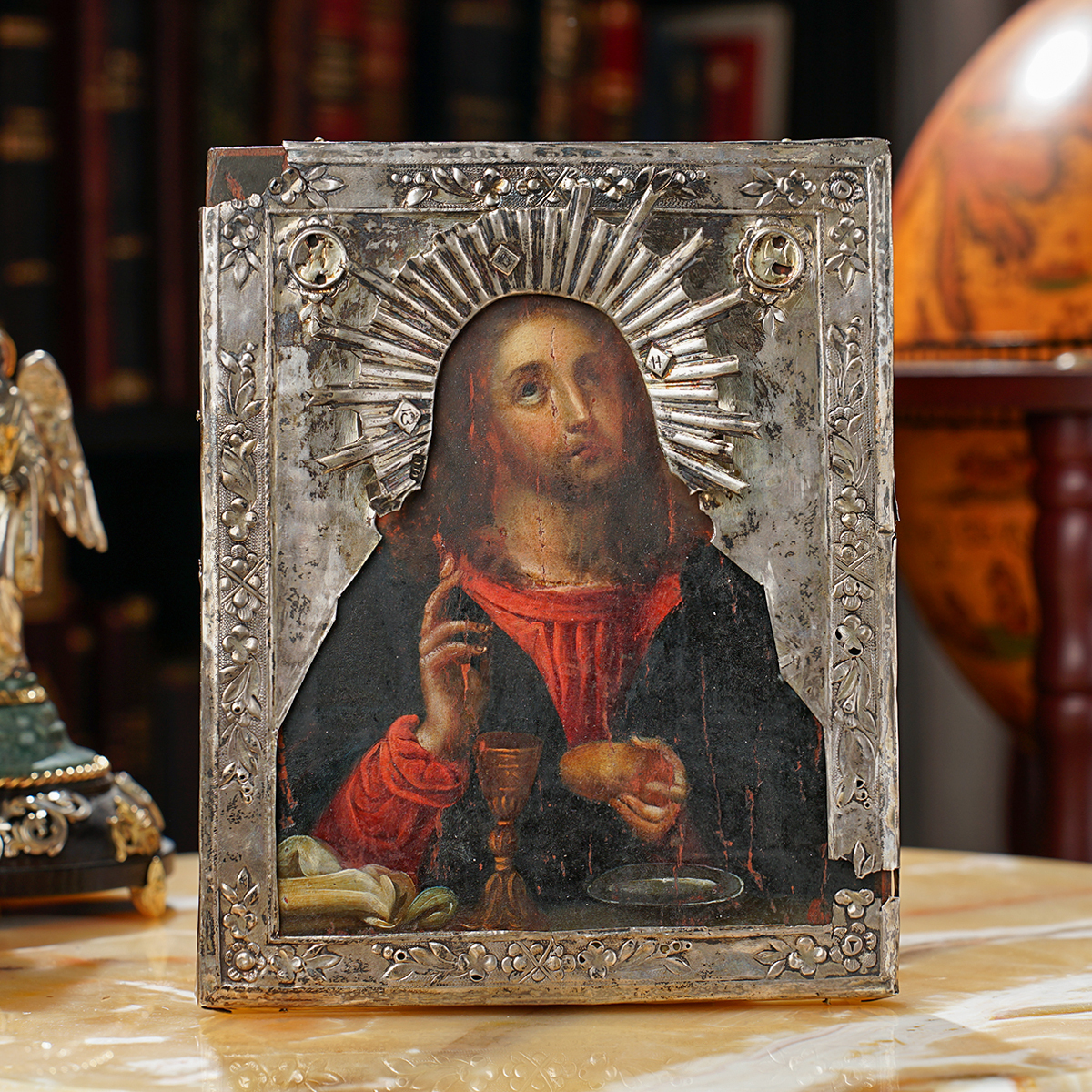 Старинная икона в серебряной ризе Хлебный Спас середины 19 века, Центральные регионы православия (без реставрации)