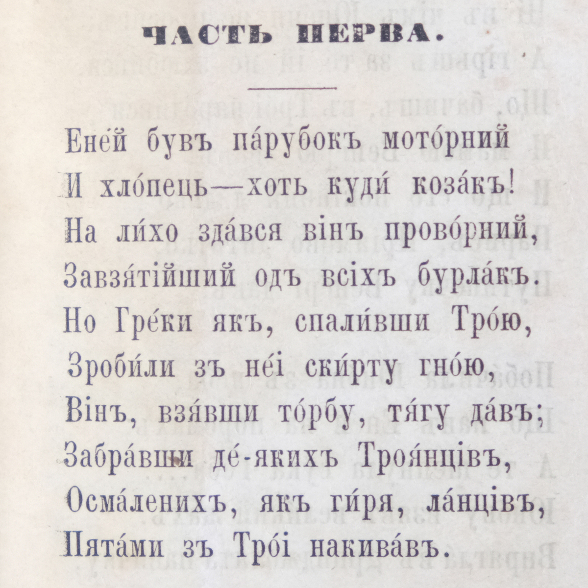 Старинное издание «Писание И.П.Котляревского. Энеида», СПб: вид. П. Кулиша, тип. Департамента уделов, 1862 год (на украинском языке)