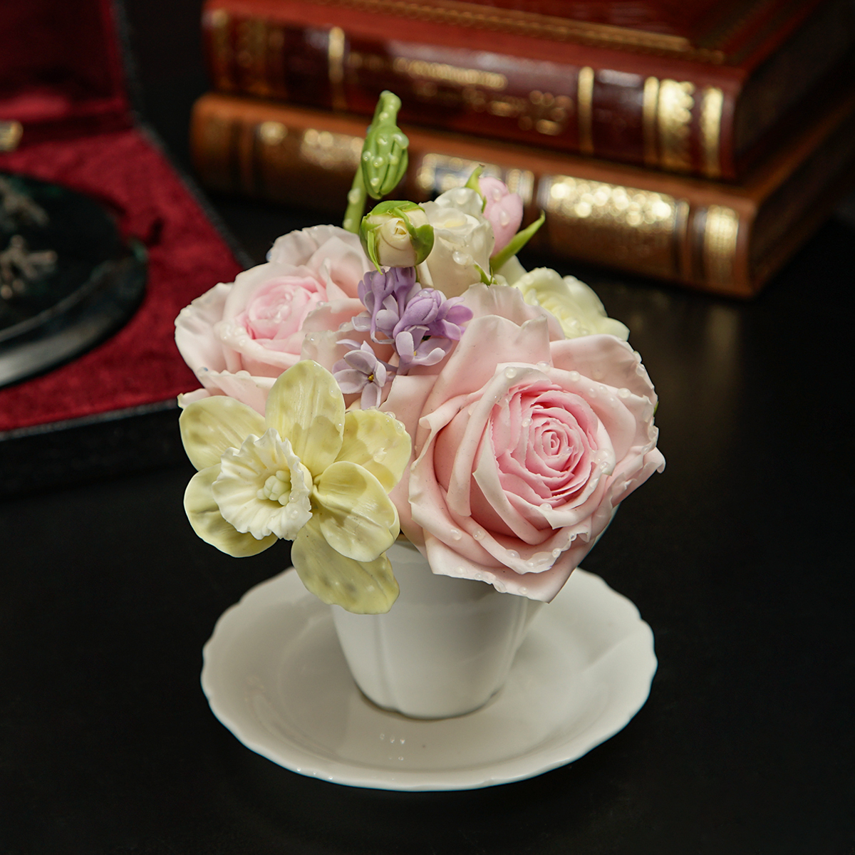 Цветочная композиция из холодного фарфора в чайной чашечке от Flora Moderling