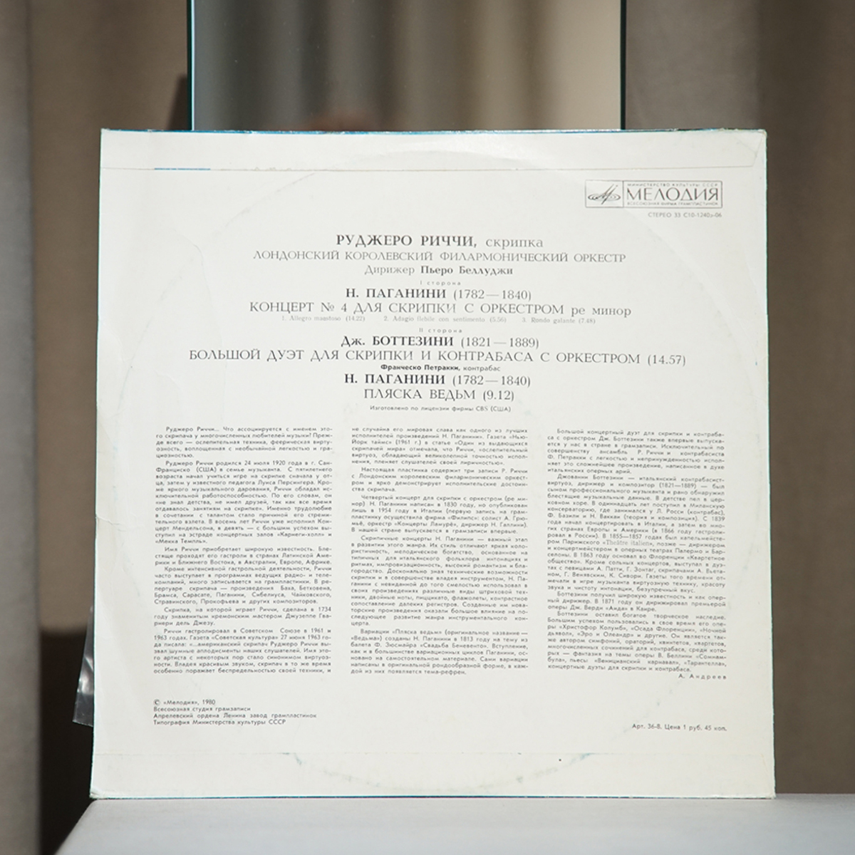 Виниловая пластинка Руджеро Риччи (скрипка). Лондонский королевский филармонический оркестр.