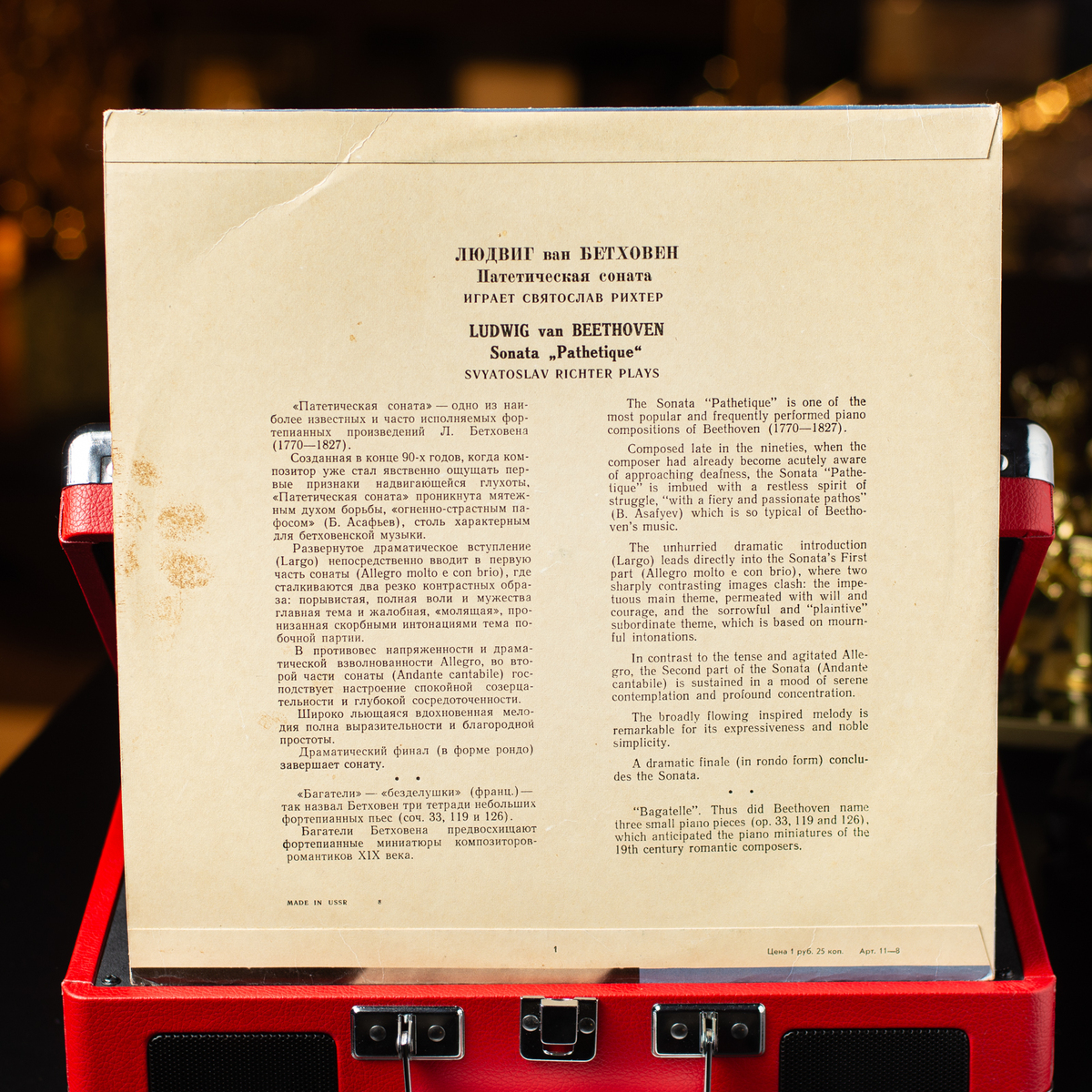 Виниловая пластинка с 8 сонатой Л. Бетховена в исполнении С. Рихтера