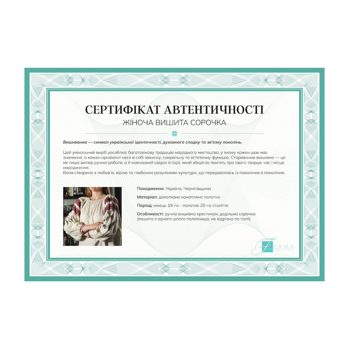 Вышитая женская сорочка из домотканого конопляного полотна (ручная работа), Черниговщина, конец 19-го - начало 20-го века