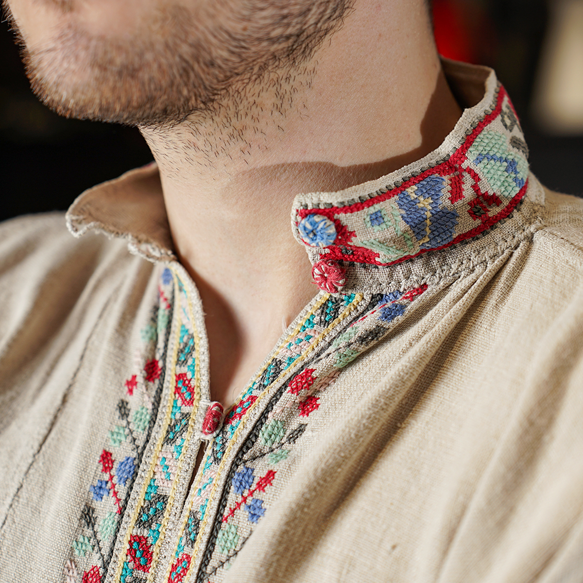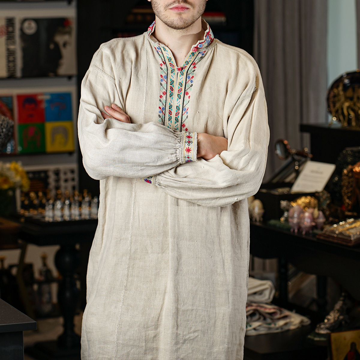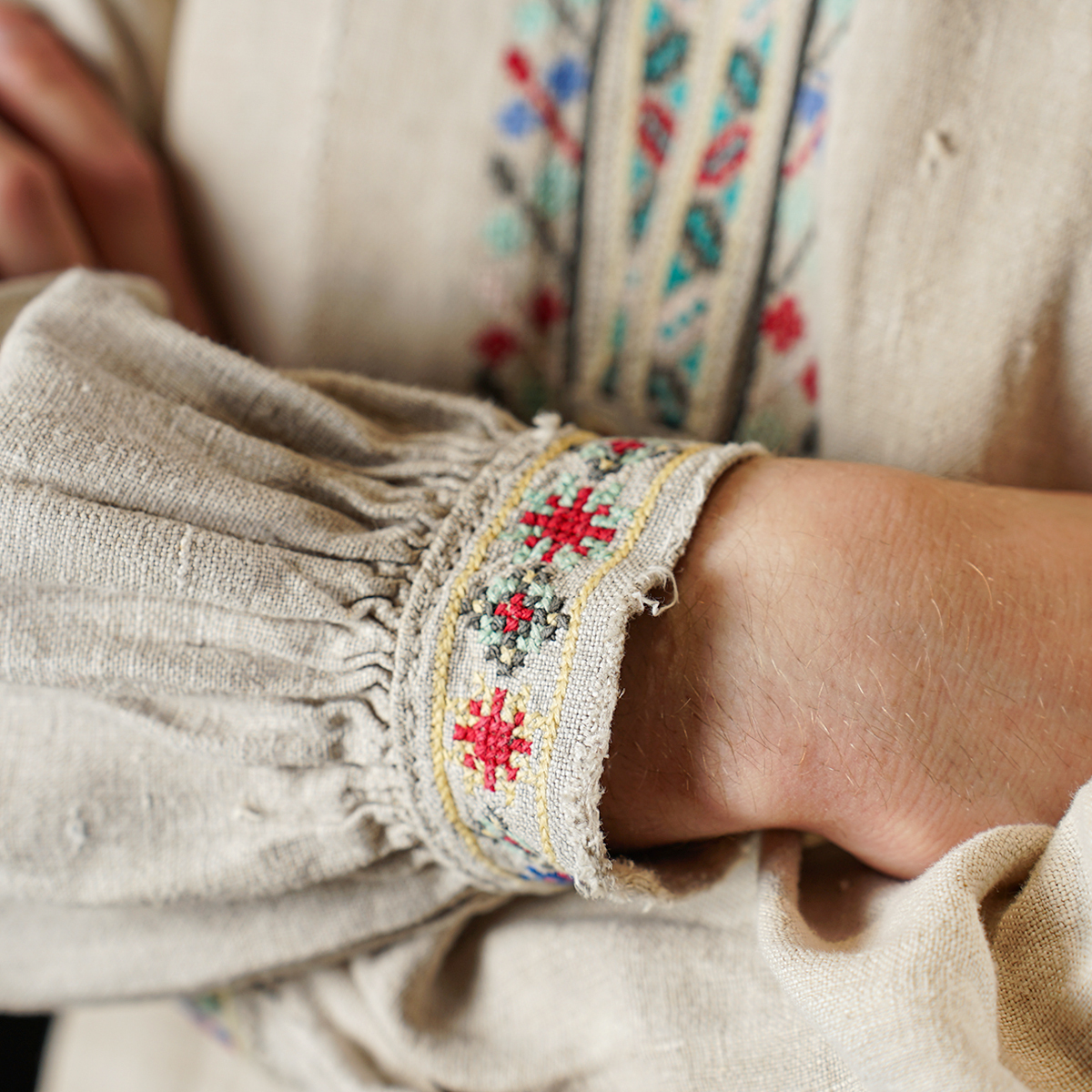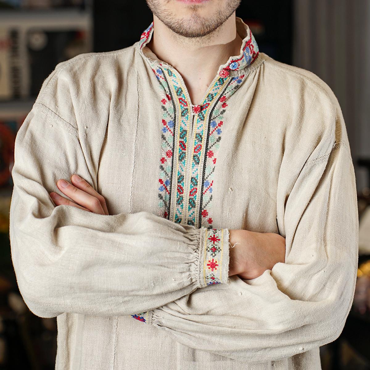 Вышитая мужская сорочка на домотканом льняном полотне (ручная работа), Полесье, 19 век
