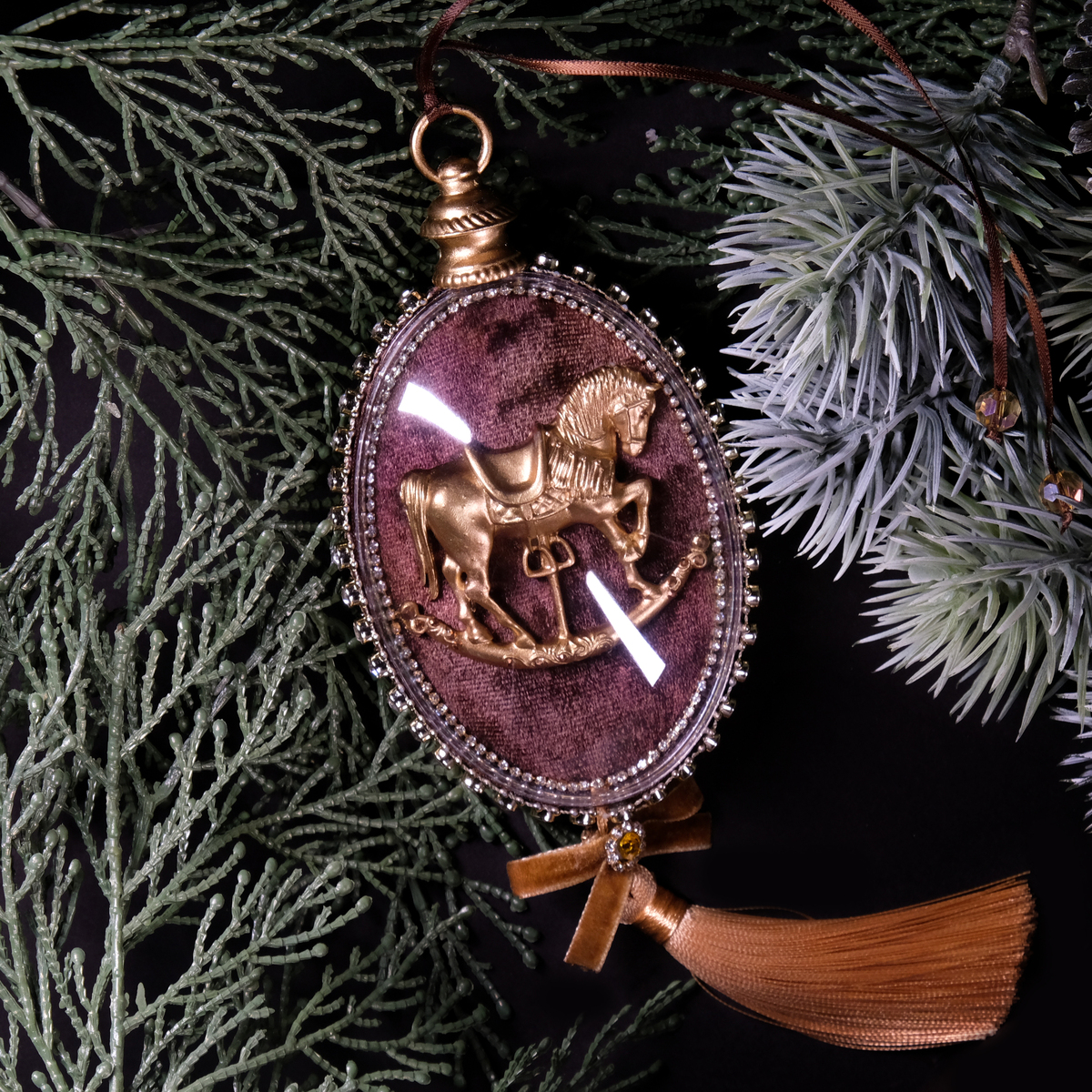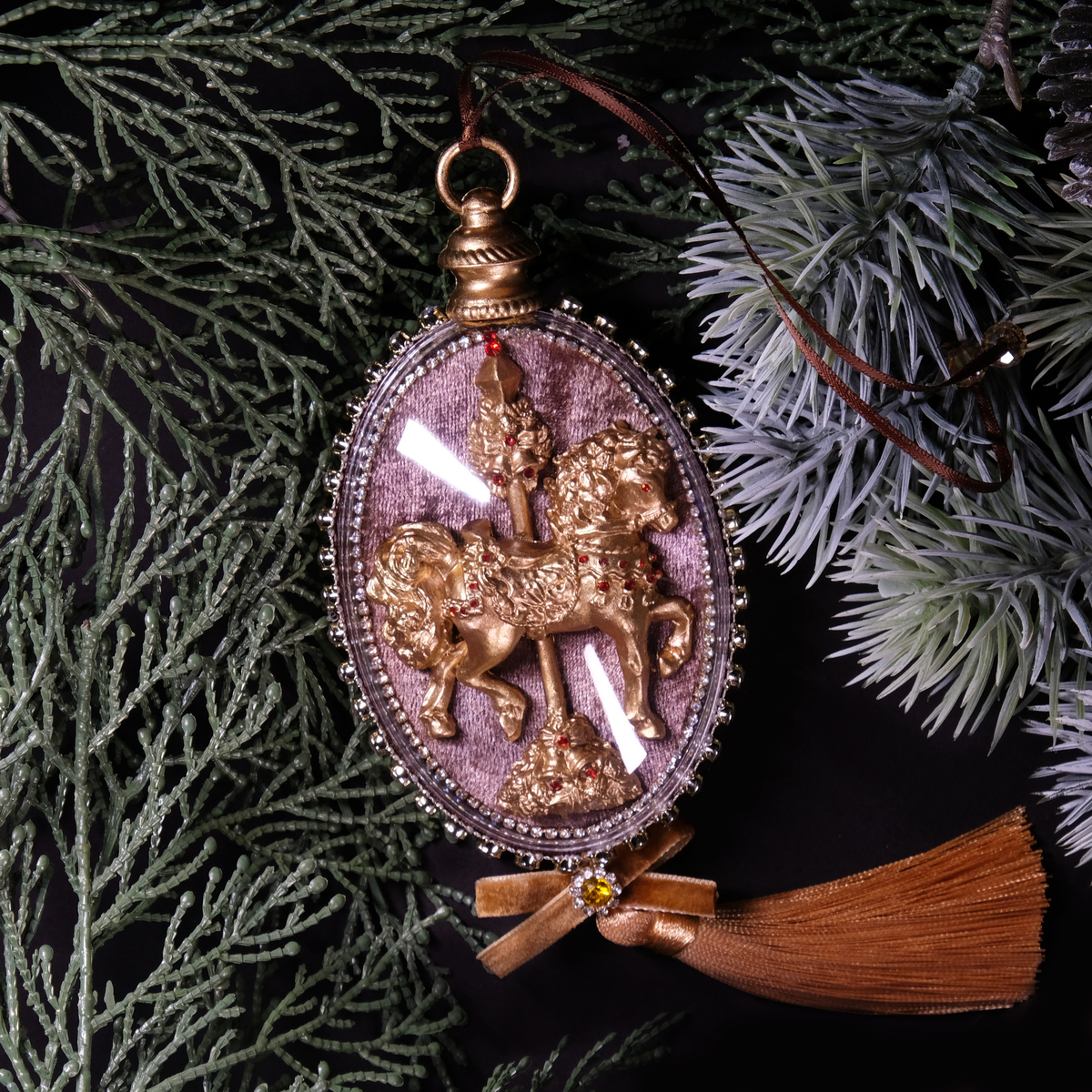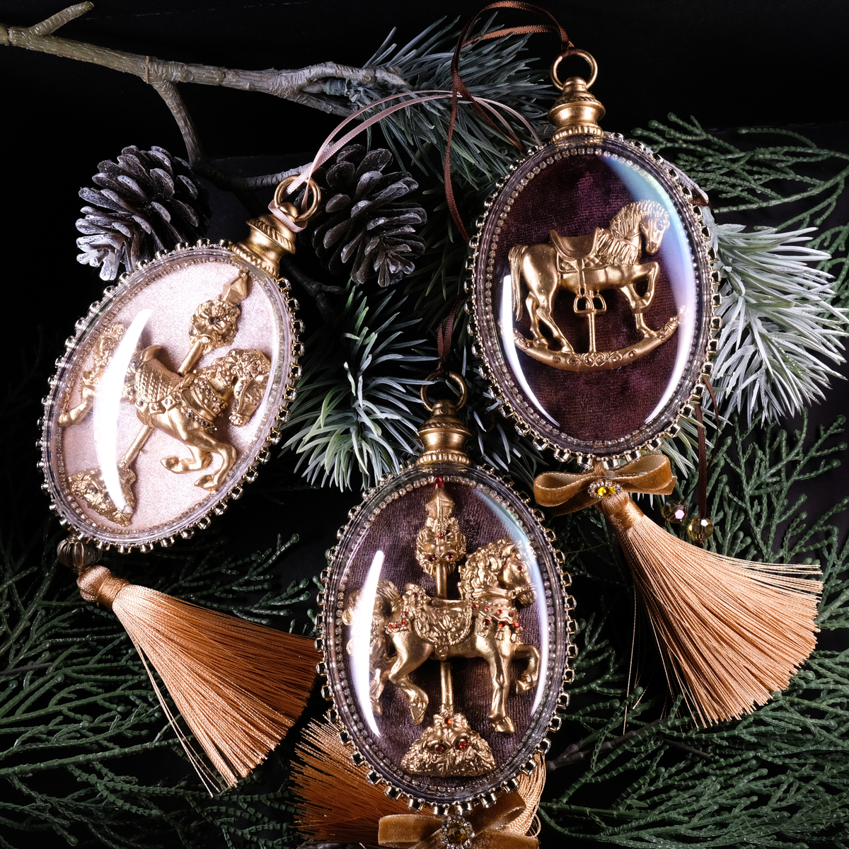 Елочный набор медальонов "Golden horses" из бархата