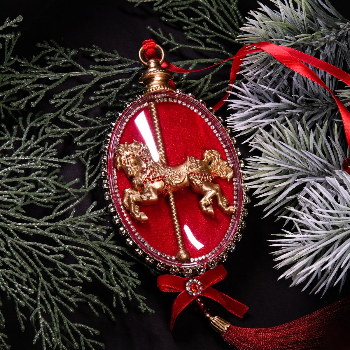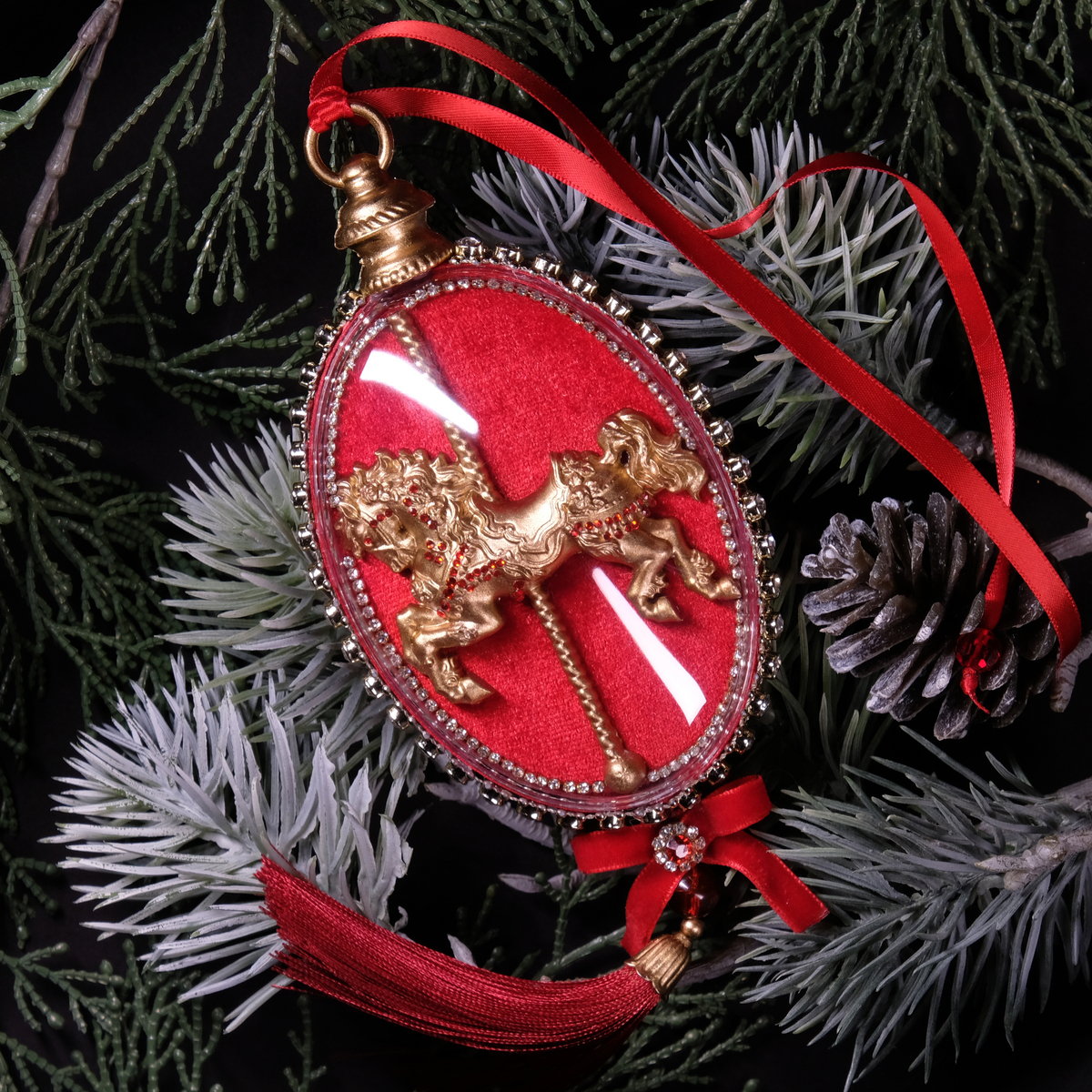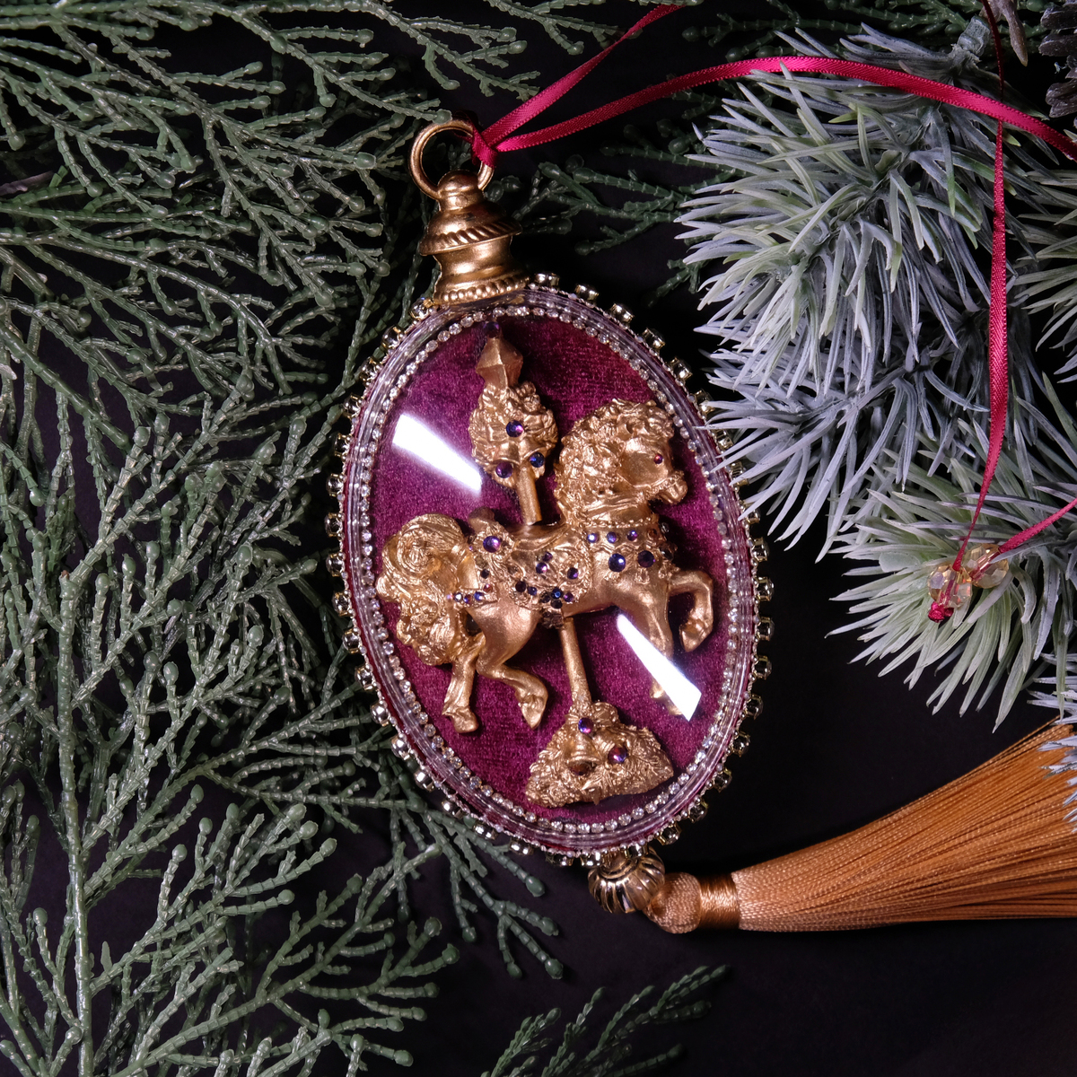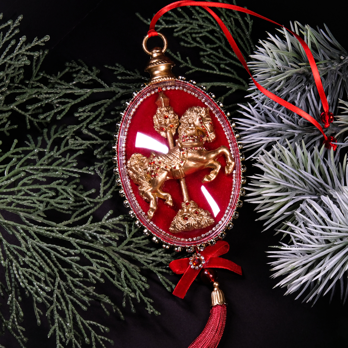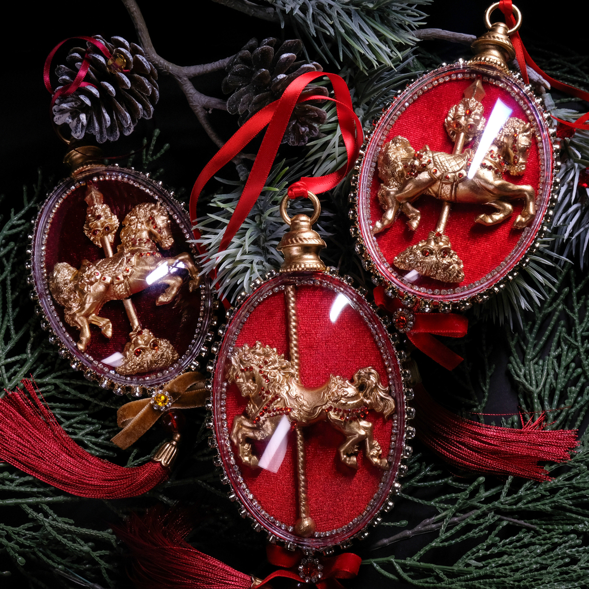 Елочный набор медальонов "Golden horses" из бархата