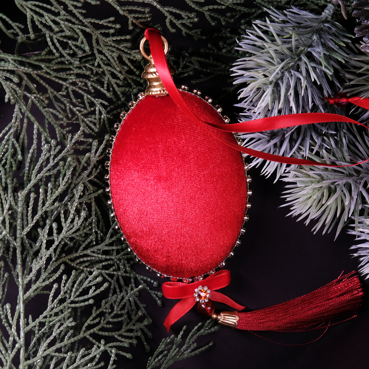 Елочный набор медальонов "In red" из бархата