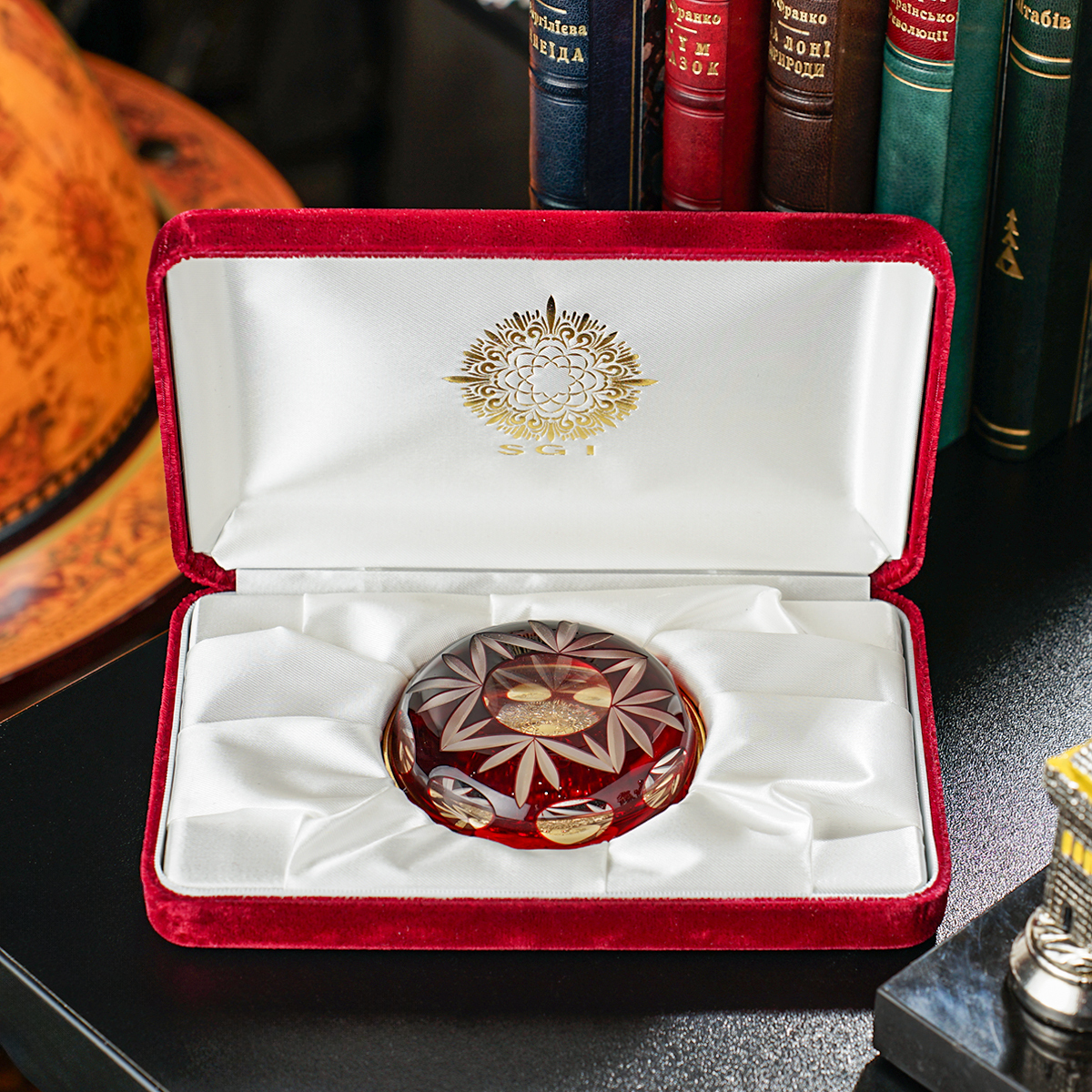 Японское хрустальное пресс-папье, Art Novelty от известного дизайнера Edo Kiriko (изготавливалось исключительно для членов SGI – японской буддийской организации по ядерному разоружению)