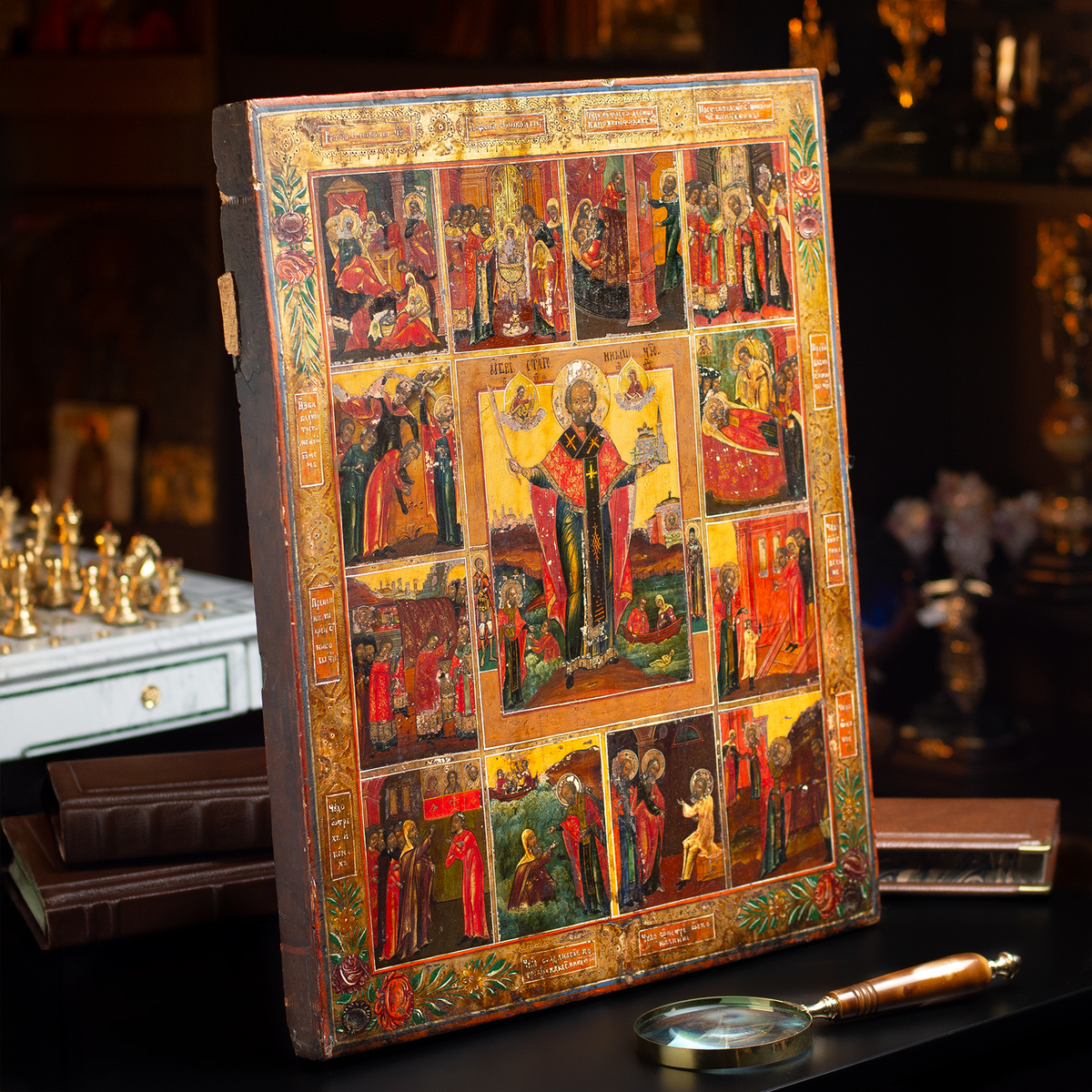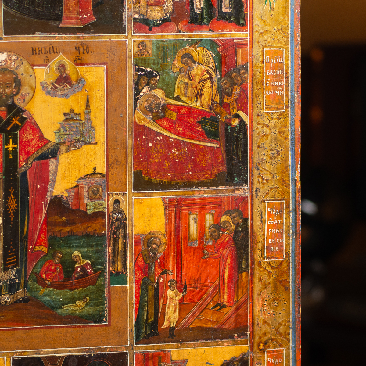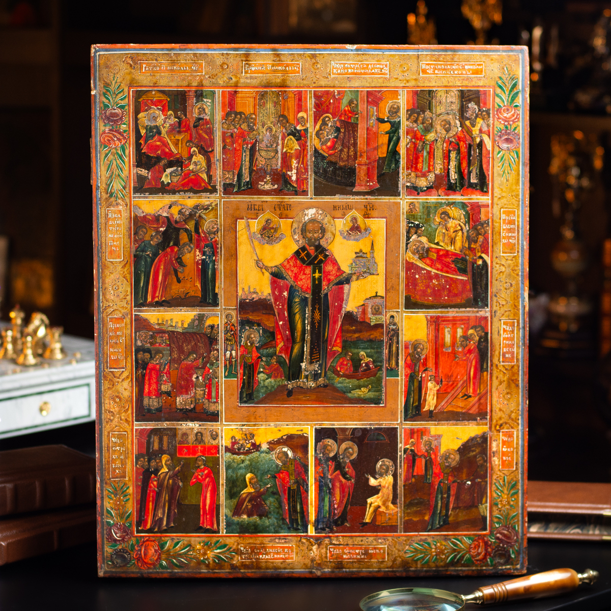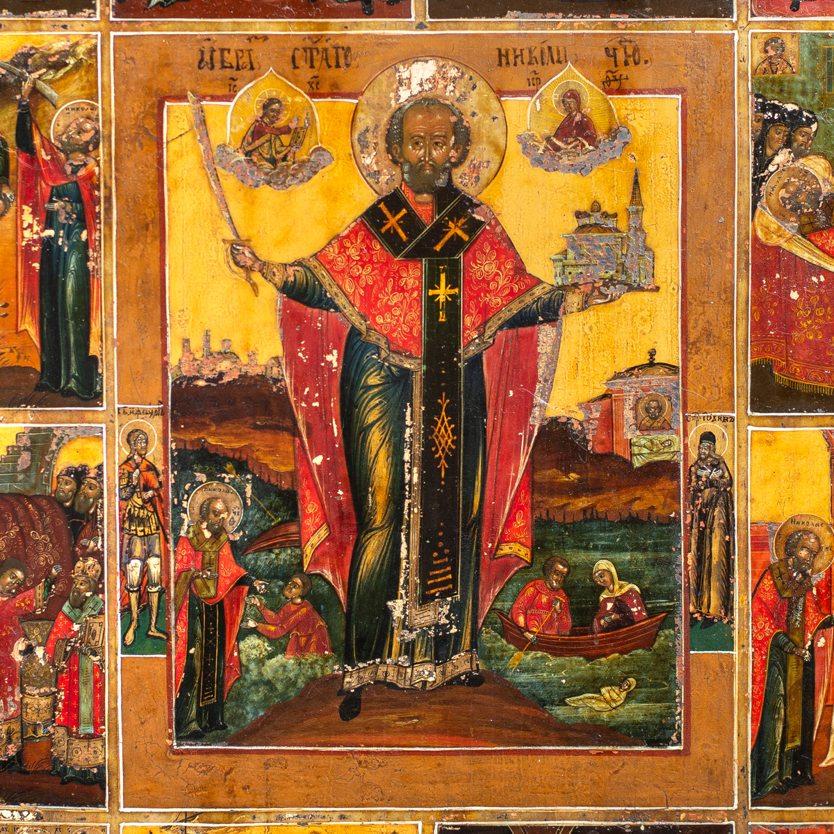 Житийная раритетная икона Святого Николая Чудотворца со сценами его жизни (без реставрации), южные регионы Украины