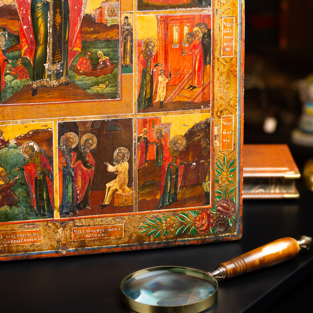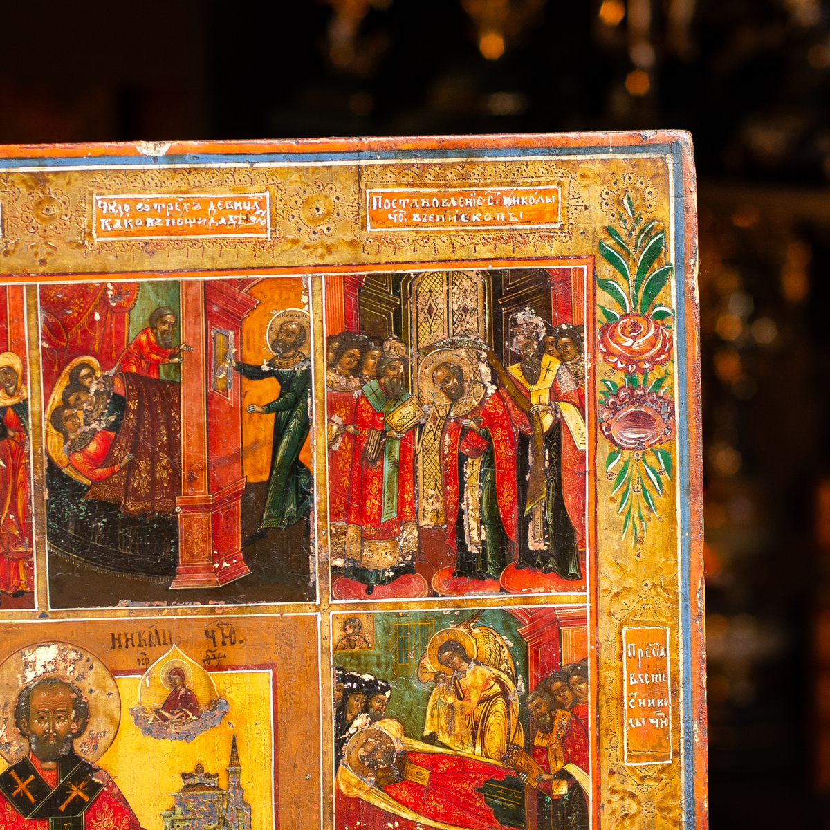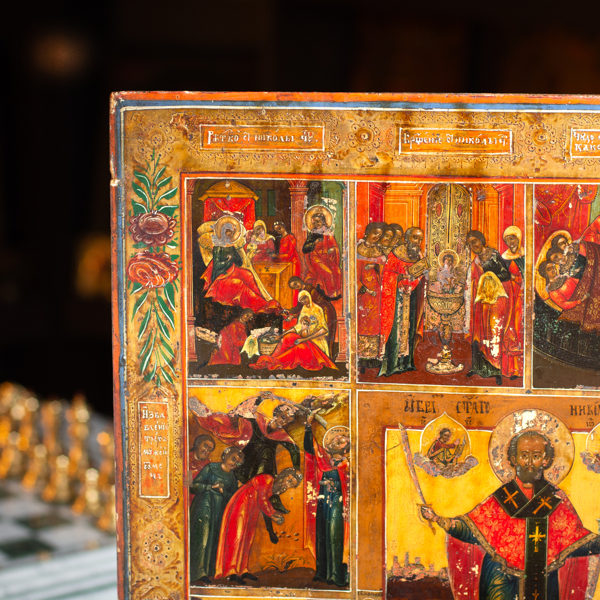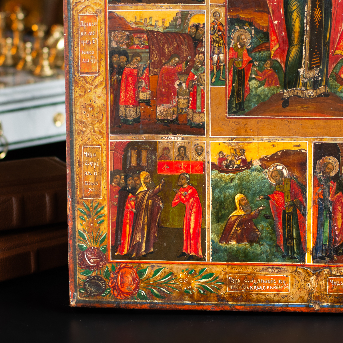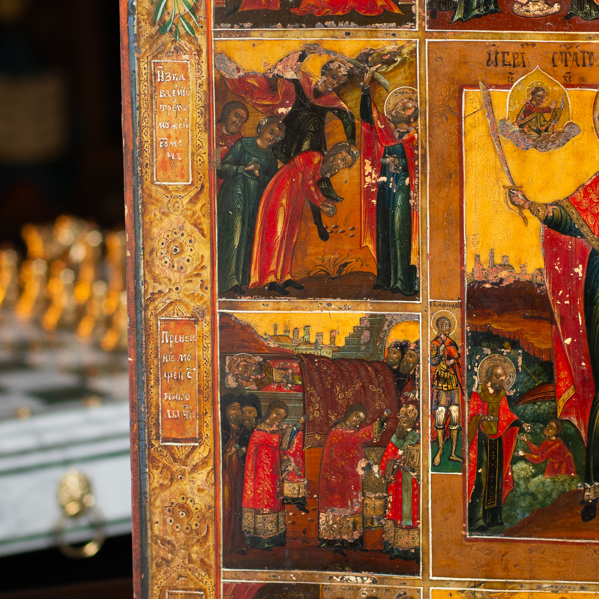 Житийная раритетная икона Святого Николая Чудотворца со сценами его жизни (без реставрации), южные регионы Украины