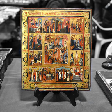 Наприклад, раритетна ікона «Свята» датована кінцем XIX – початком XX століття. На іконі зображені 14 найважливіших християнських свят, серед яких Воскресіння, Святого Василя, Благовіщення, Стрітення та інші.
