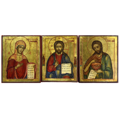 Ікона «Деісусний чин» датована третьою чвертю XIX століття. Деісусний чин – це група ікон, в яких центральною фігурою виступає Ісус Христос, а по боках від нього розташовуються дві ключові особи у християнській релігії: Богоматір та Іоанн Хреститель.