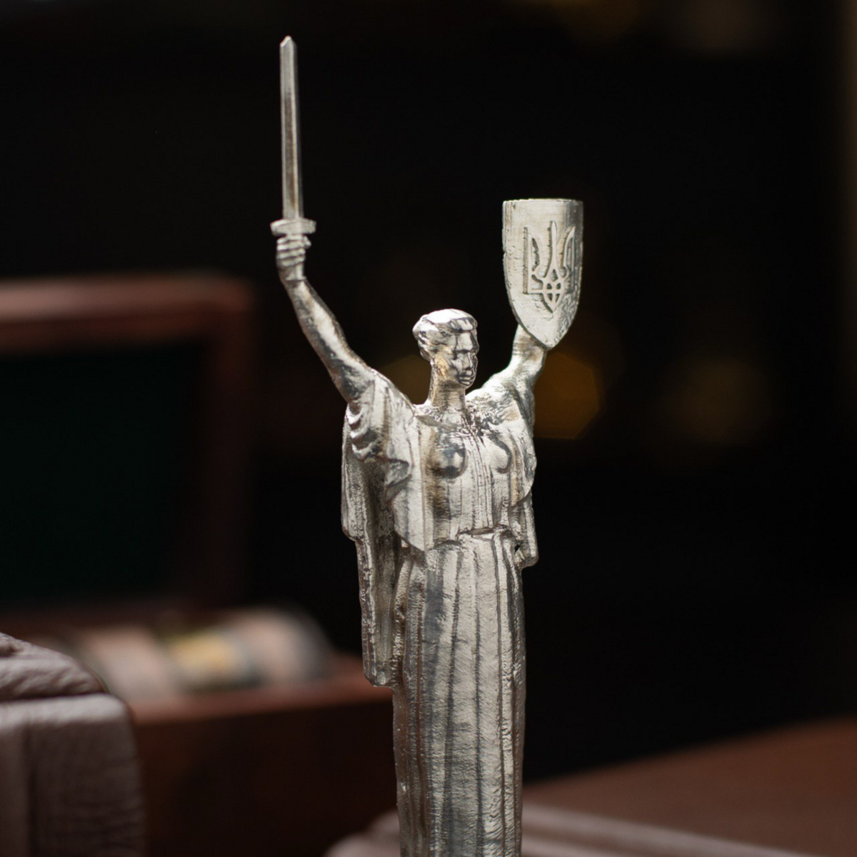 Бронзова посріблена статуетка "Батьківщина мати з тризубом"