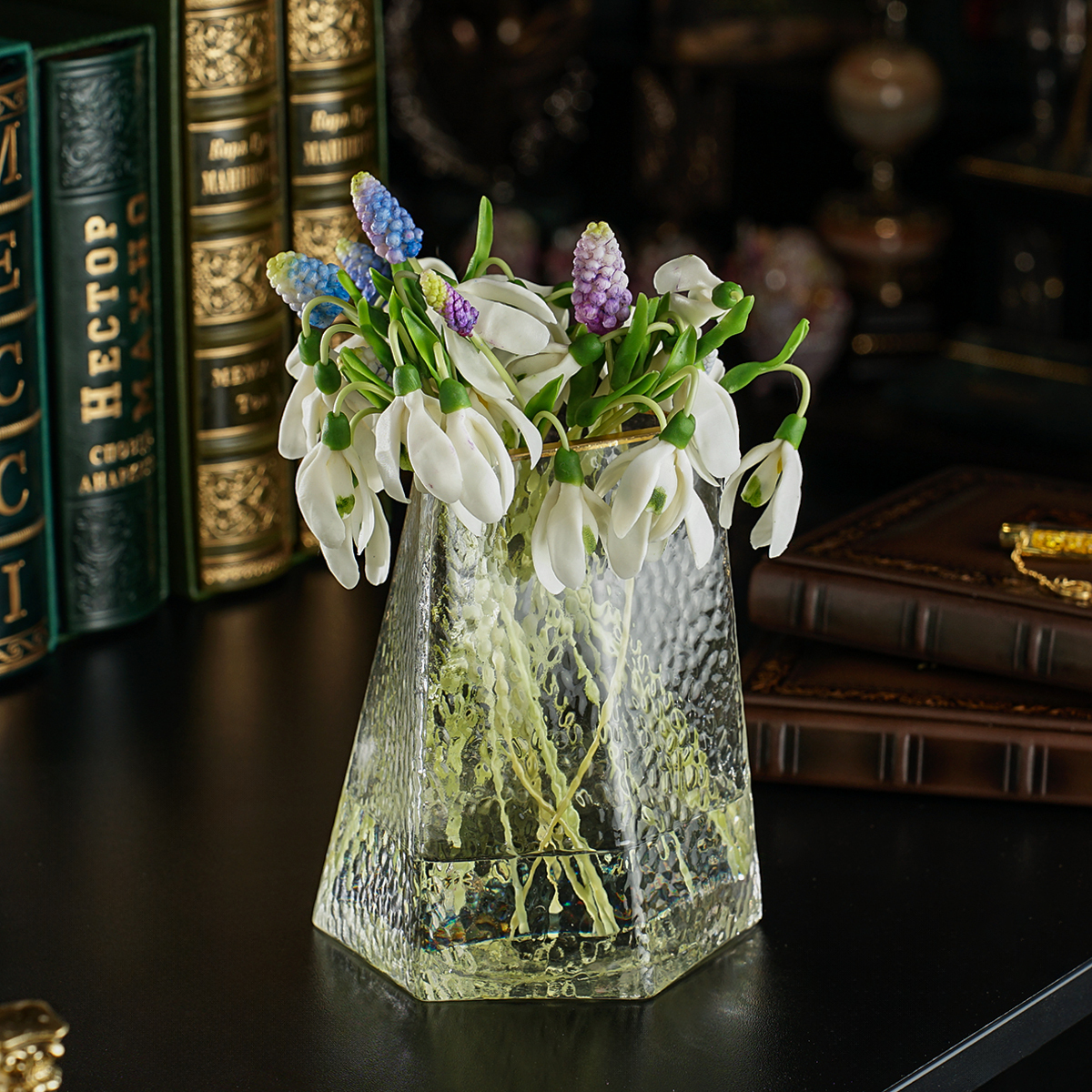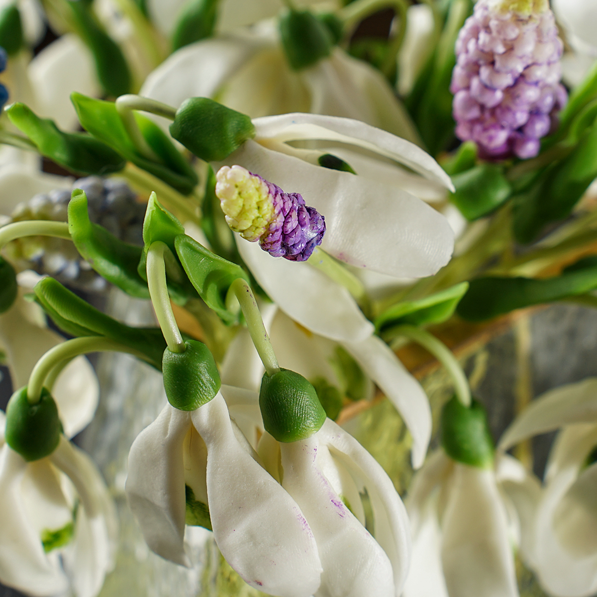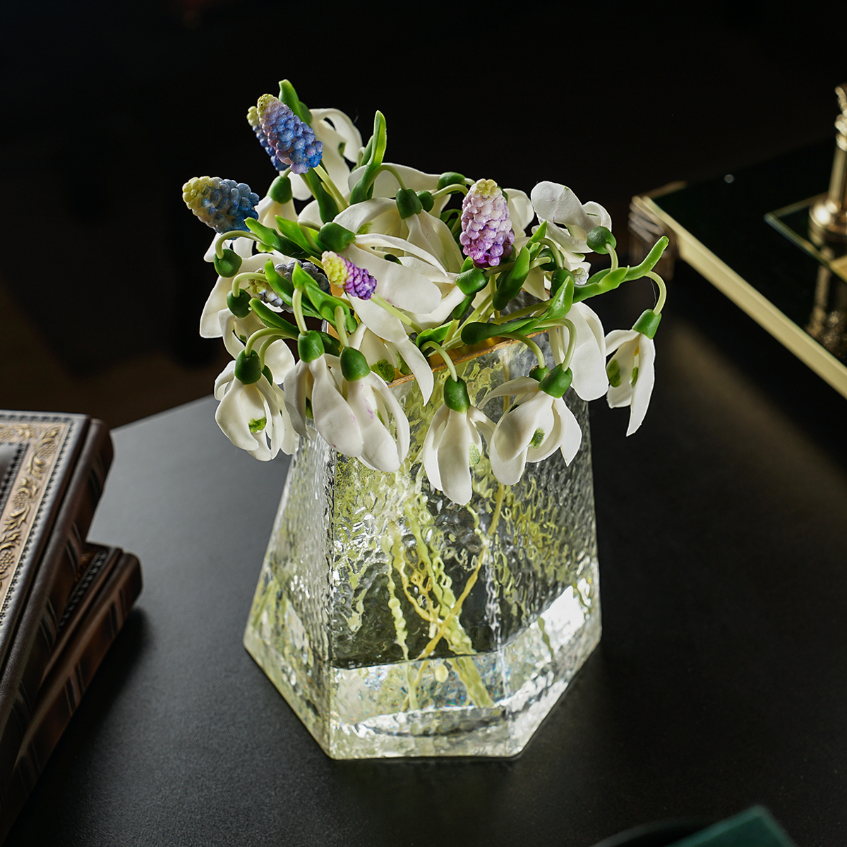 Букет первоцвітів з холодної порцеляни у вазі з богемського скла від Flora Moderling
