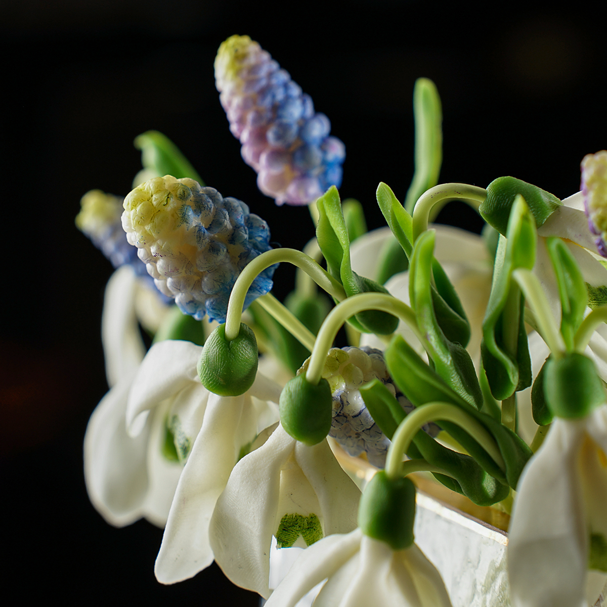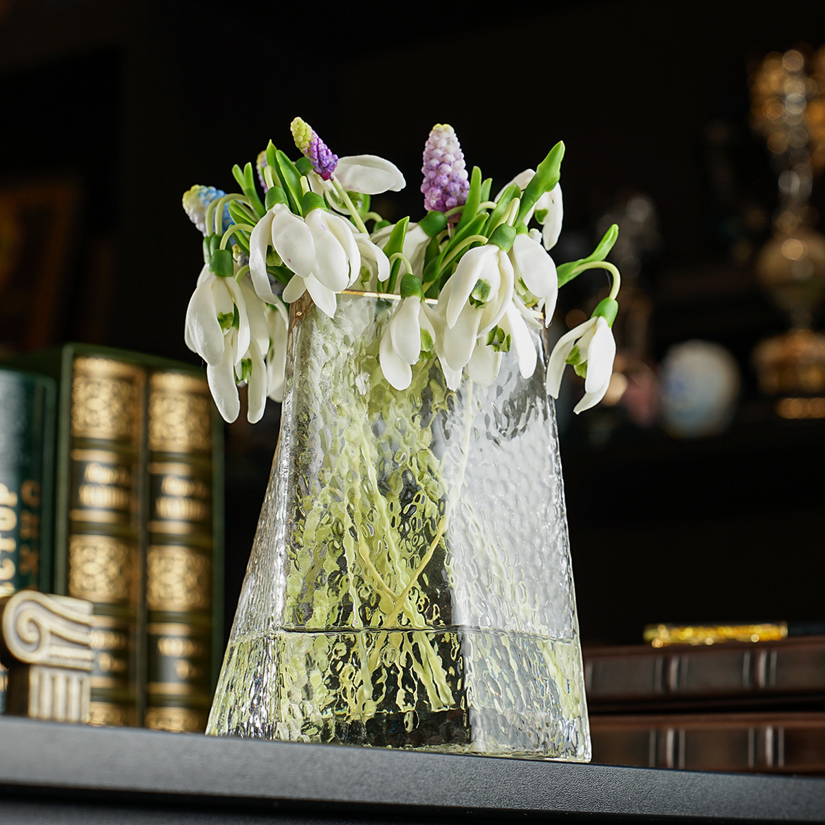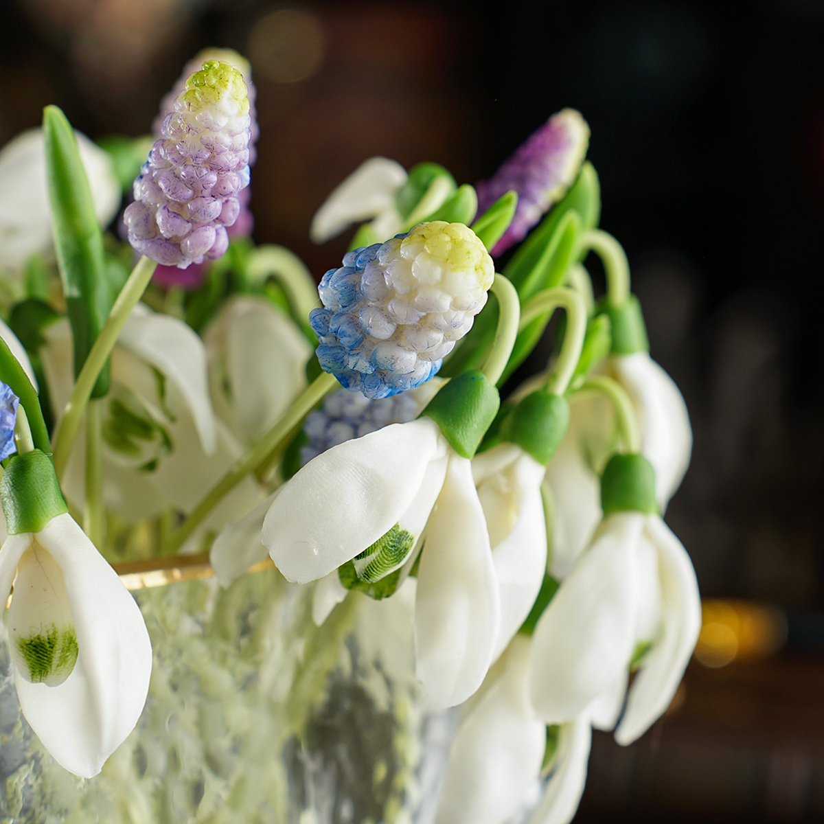 Букет первоцвітів з холодної порцеляни у вазі з богемського скла від Flora Moderling