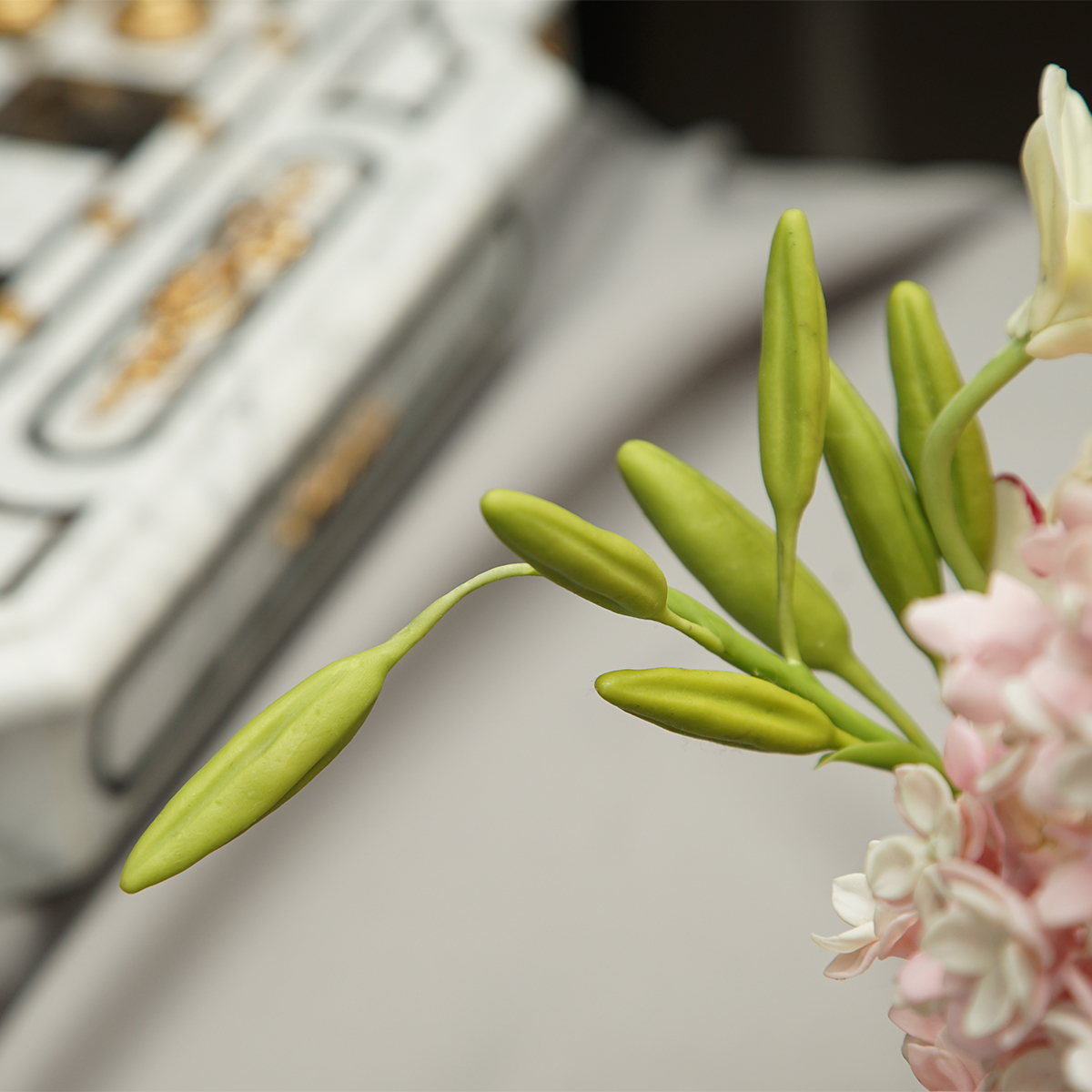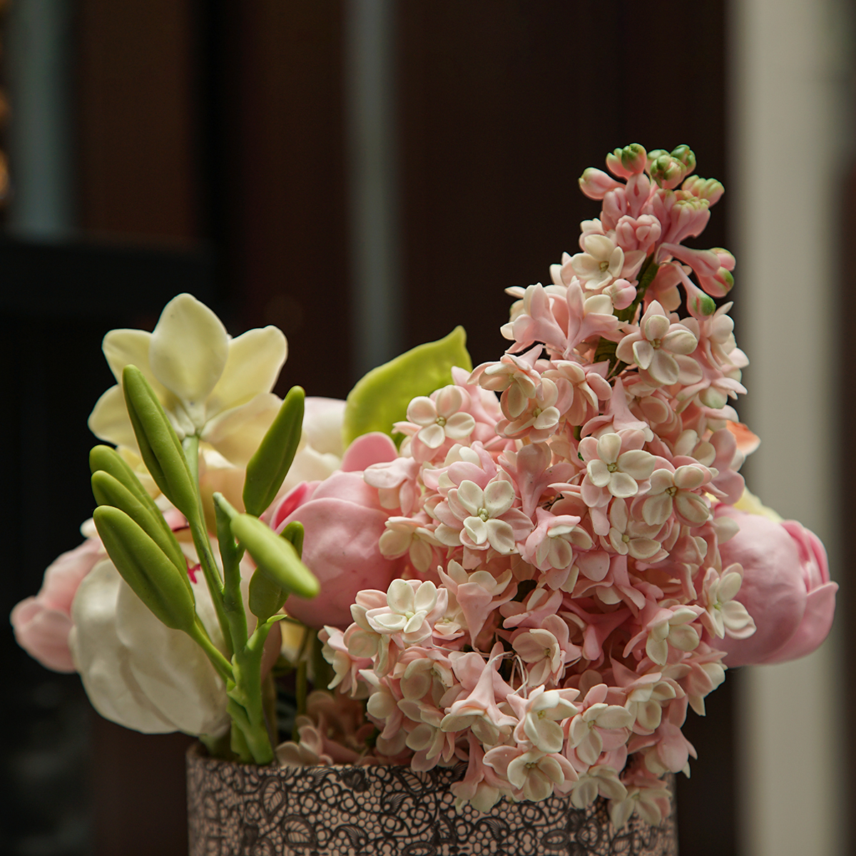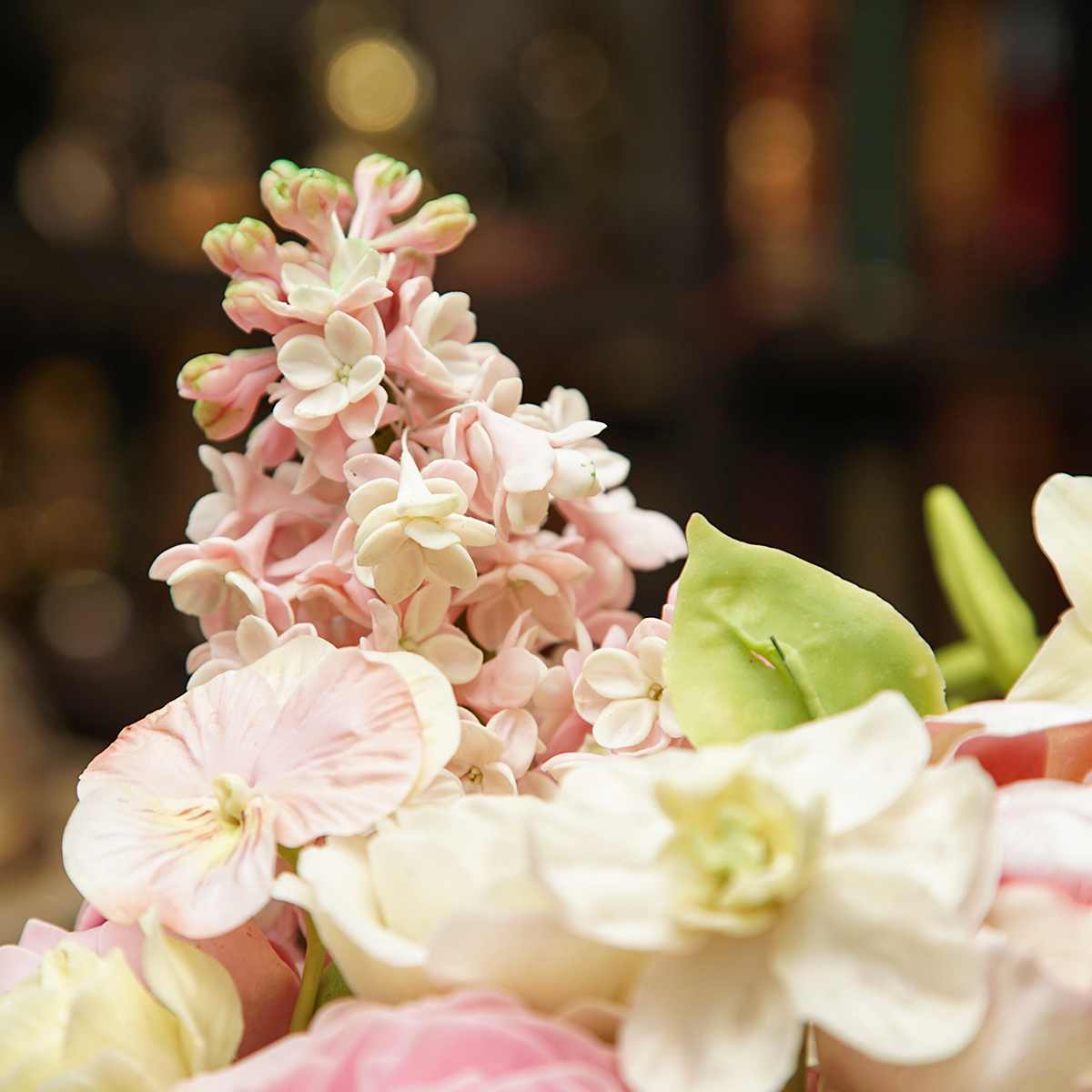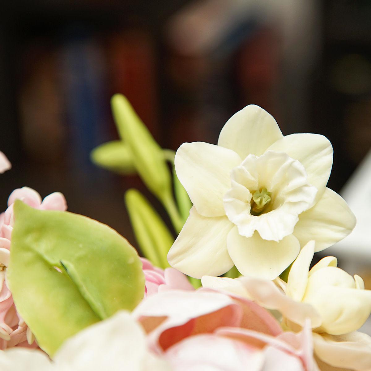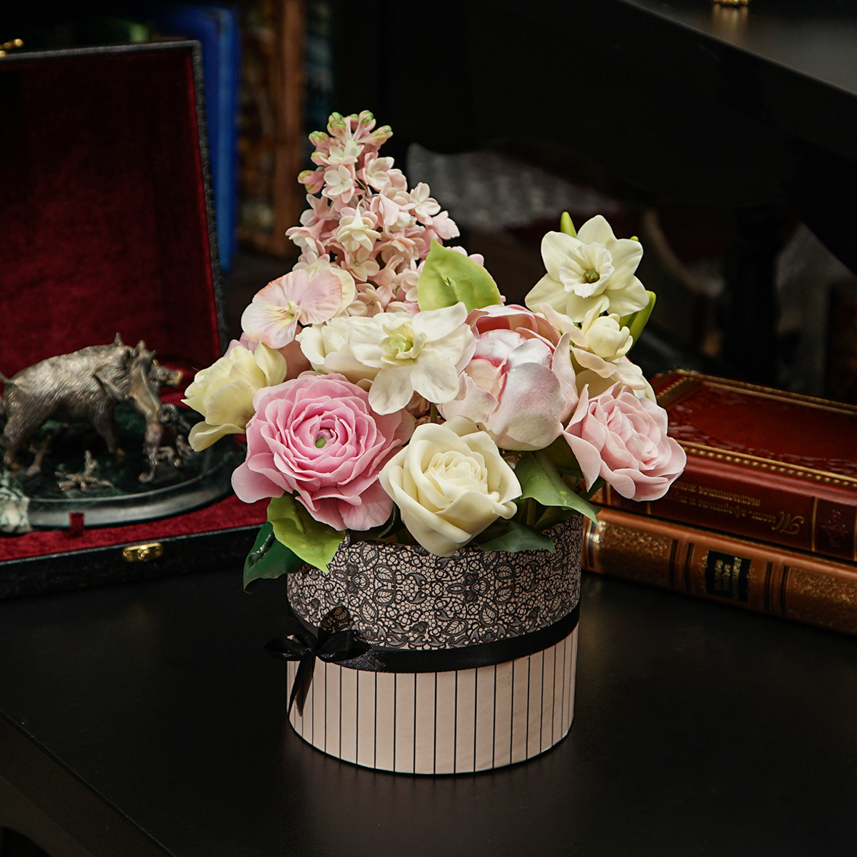 Букет квітів з холодної порцеляни "Ранок у Парижі", в капелюшній коробці від Flora Moderling