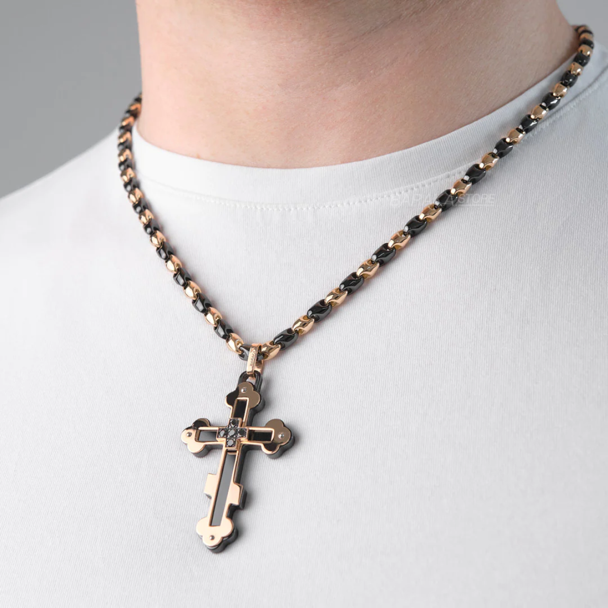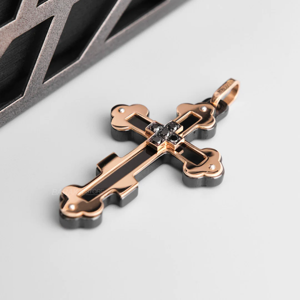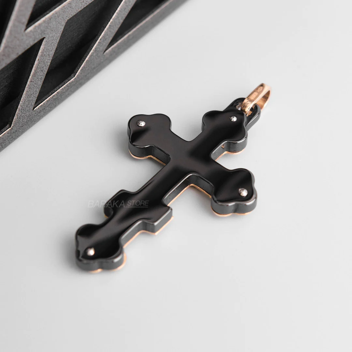 Чорний керамічний хрестик Prive з рожевим золотом (750 проби) та чорними діамантами (0,20 каратів) від Baraka