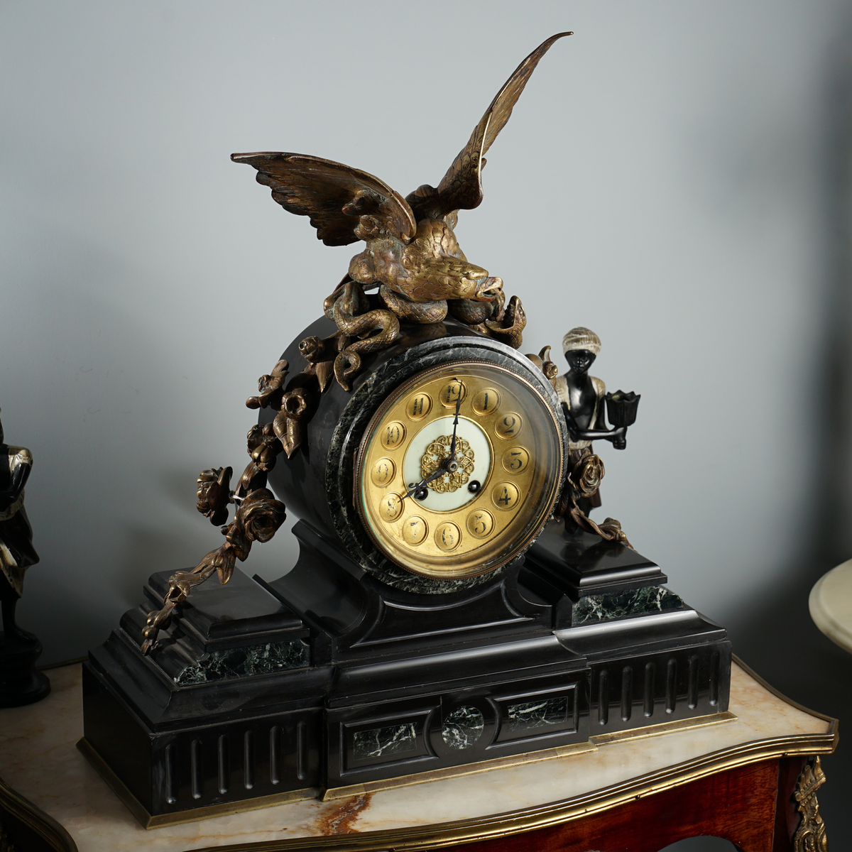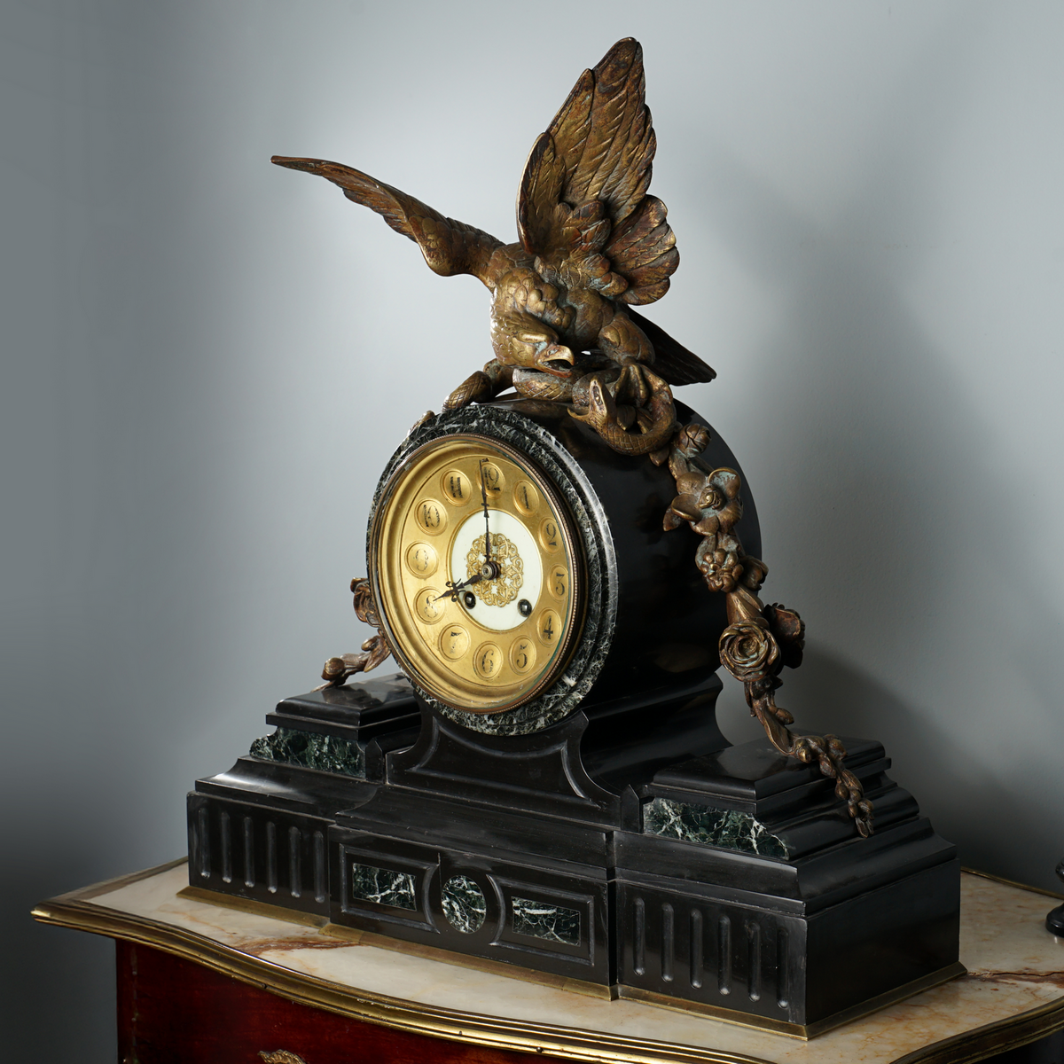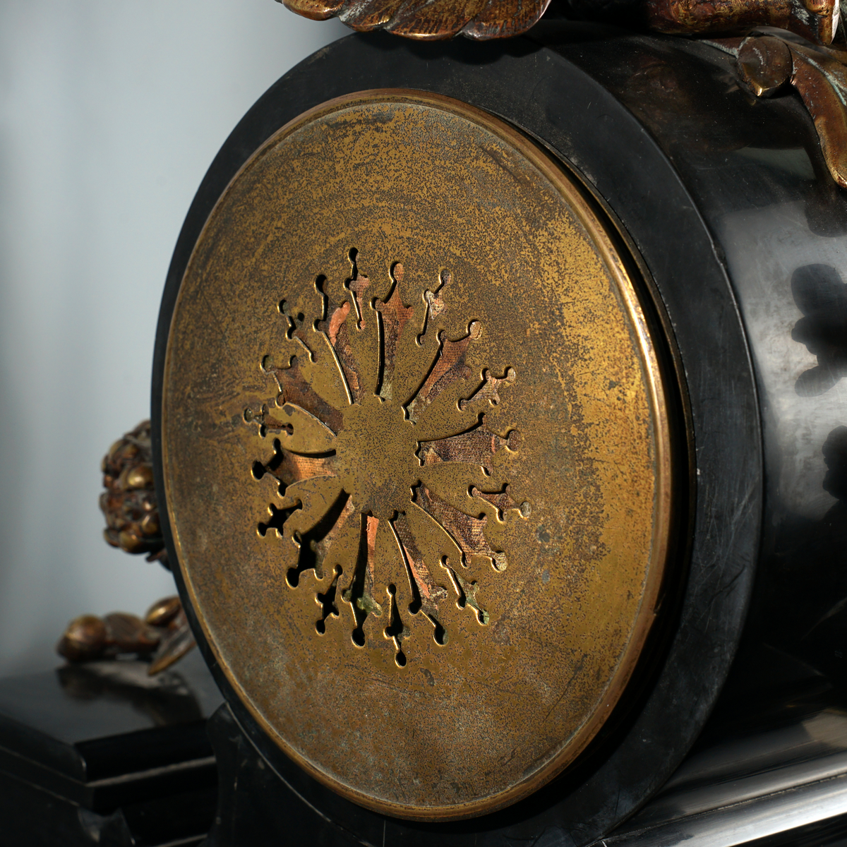 Камінний годинник з бронзи та мармуру другої половини 19 століття (вага 21 кг)