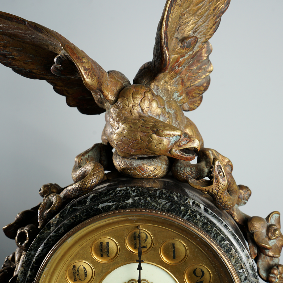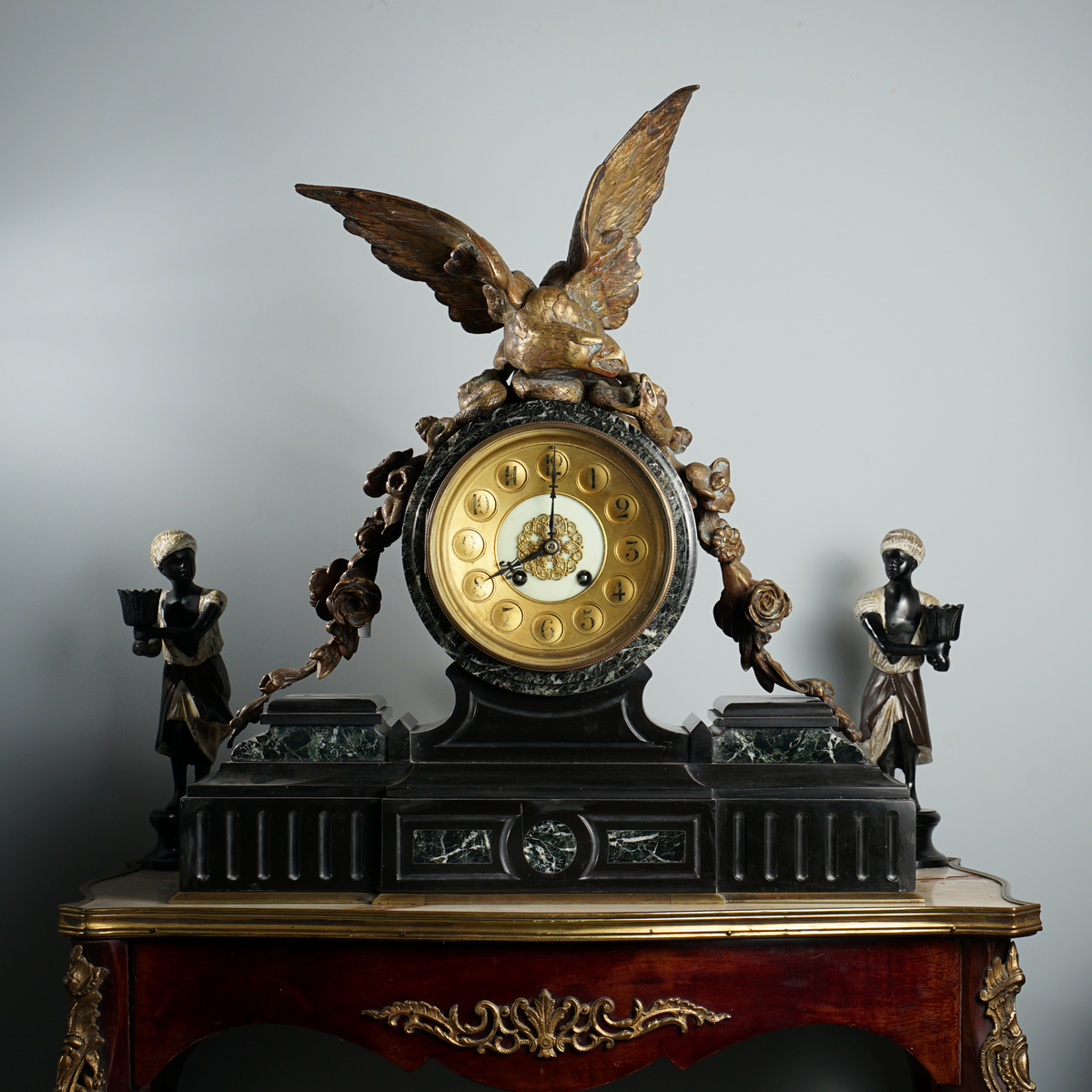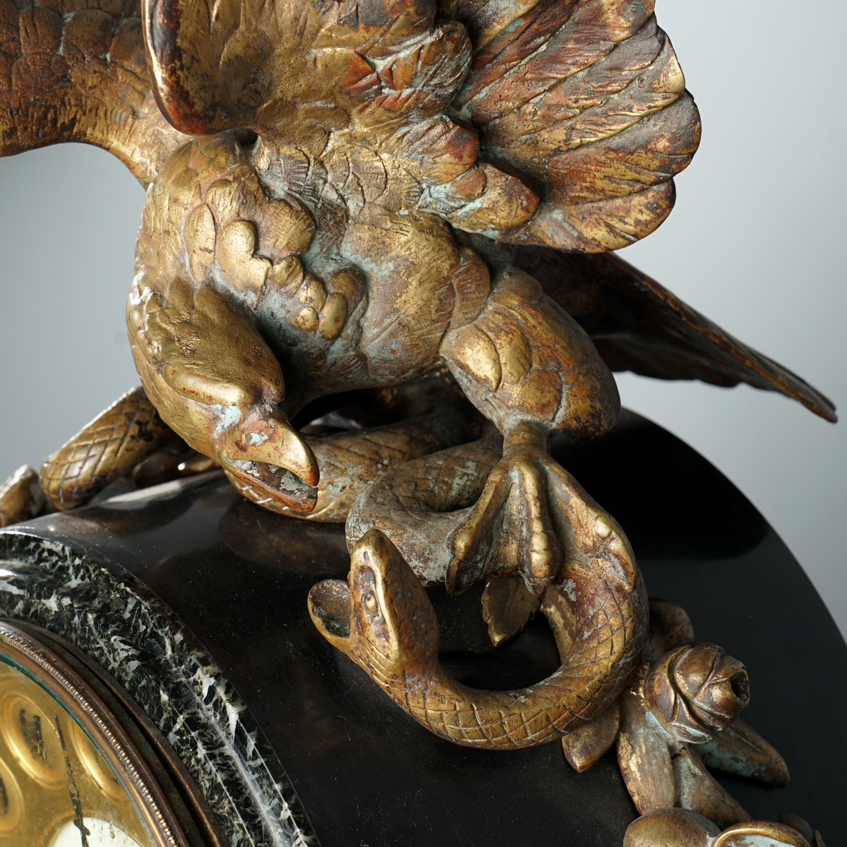 Камінний годинник з бронзи та мармуру другої половини 19 століття (вага 21 кг)