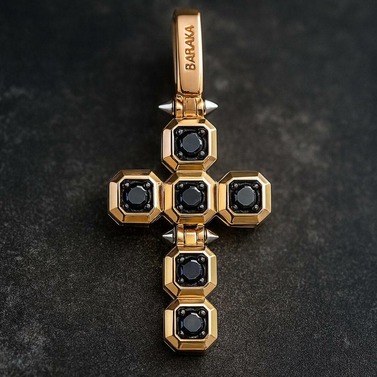 Золотий хрестик з чорними діамантами "Obscura" від Baraka