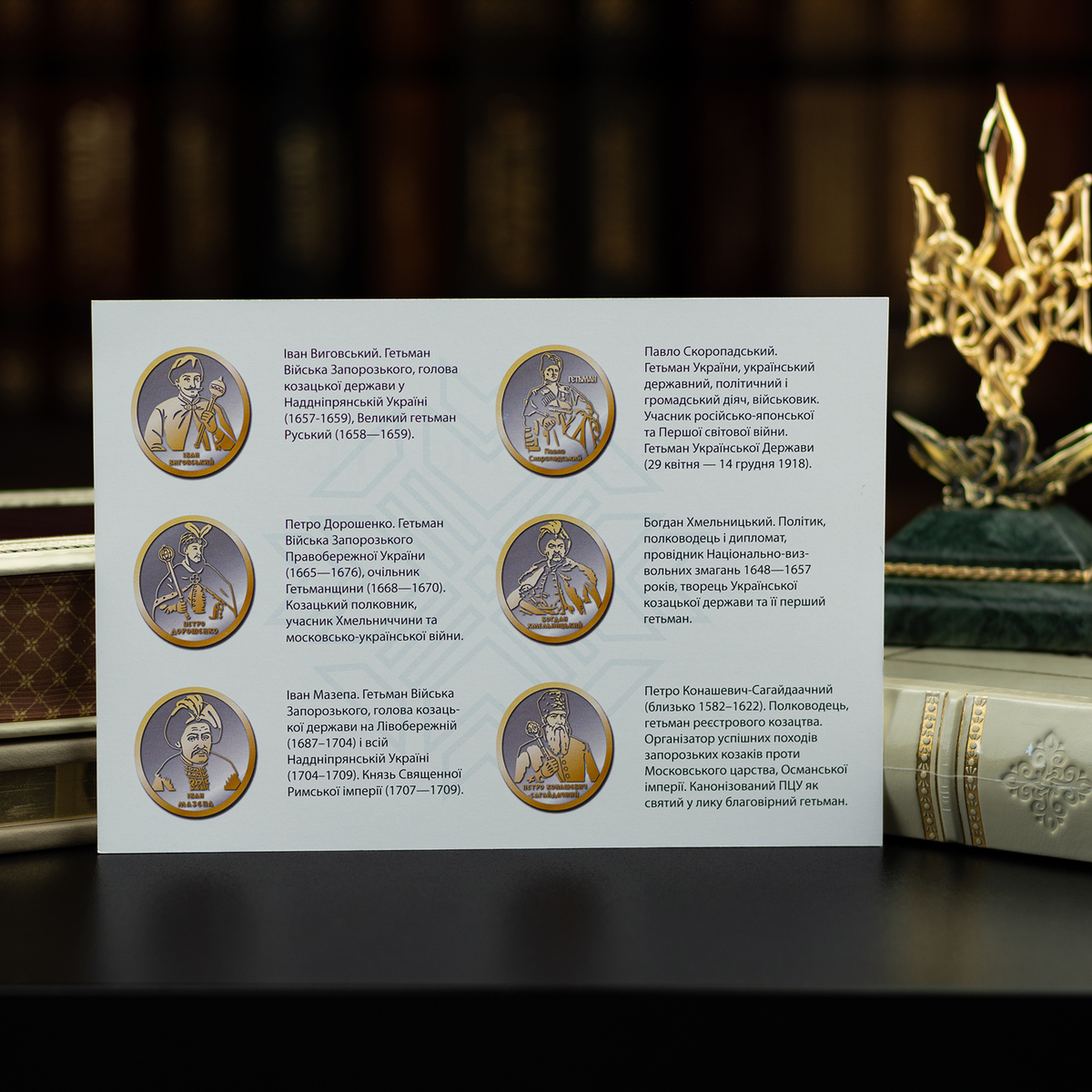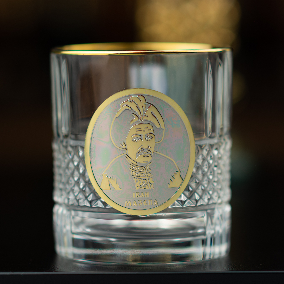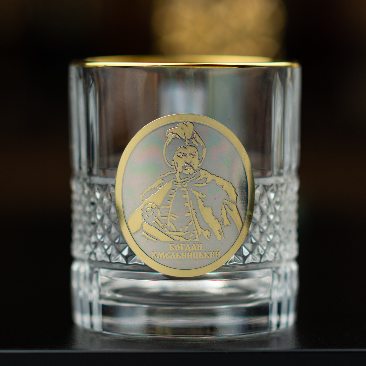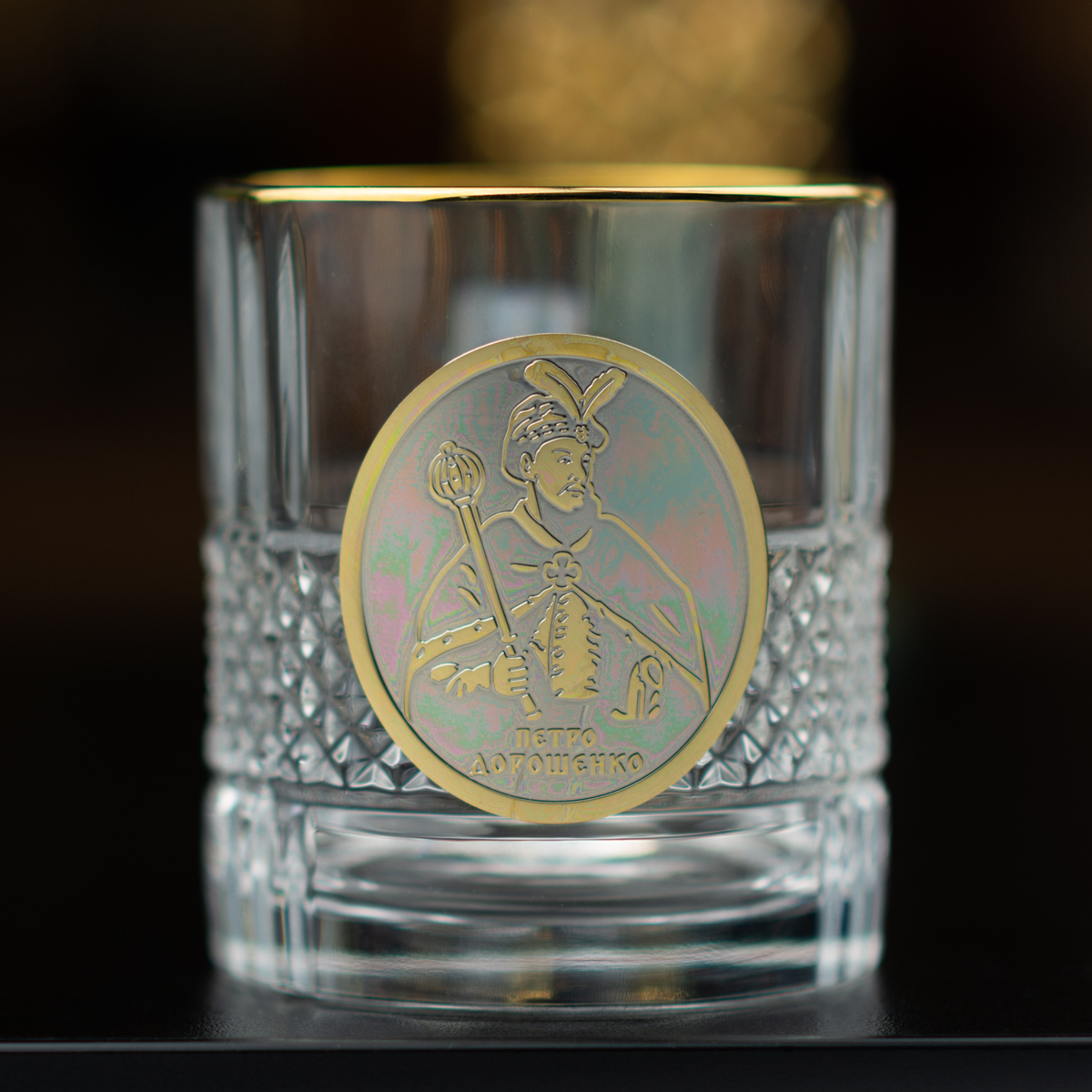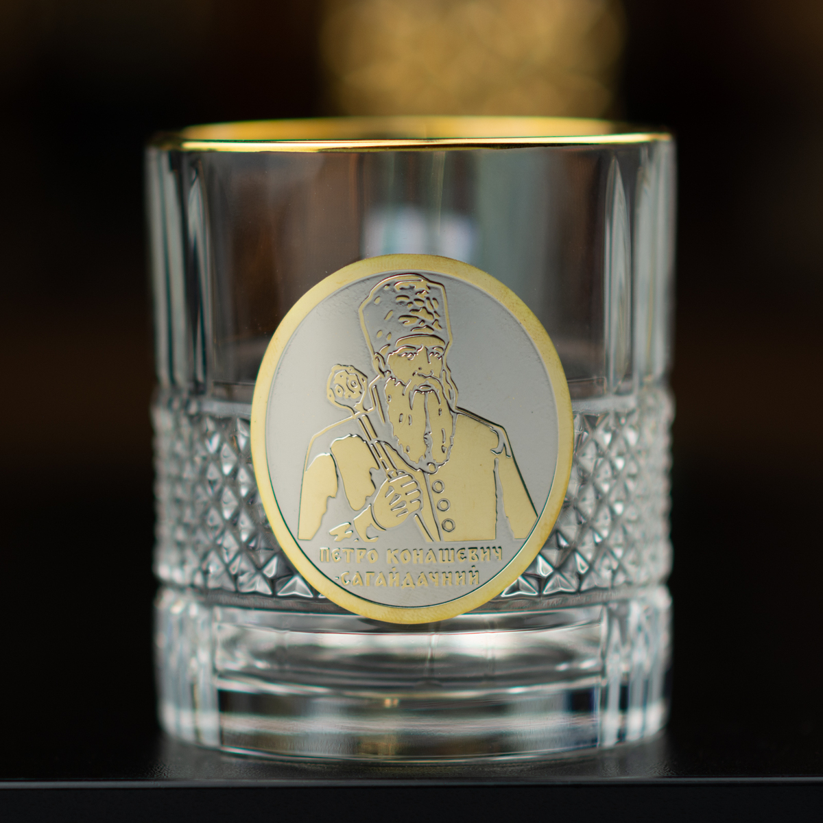 Кришталевий графин та 6 склянок для віскі та води із серії "Гетьмани України" (Виговський, Дорошенко, Мазепа, Скоропадський, Хмельницький, Конашевич-Сагайдачний) від BIANCANEVE