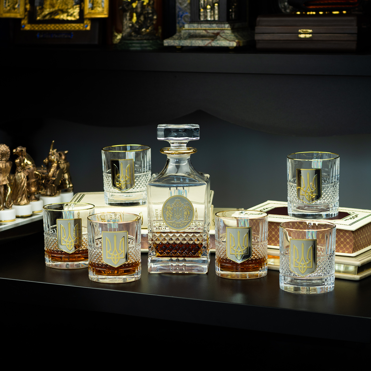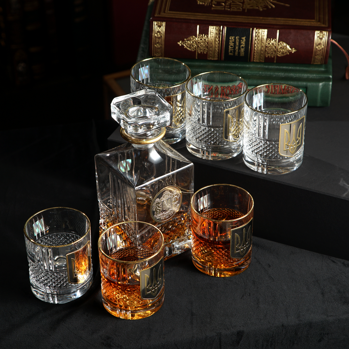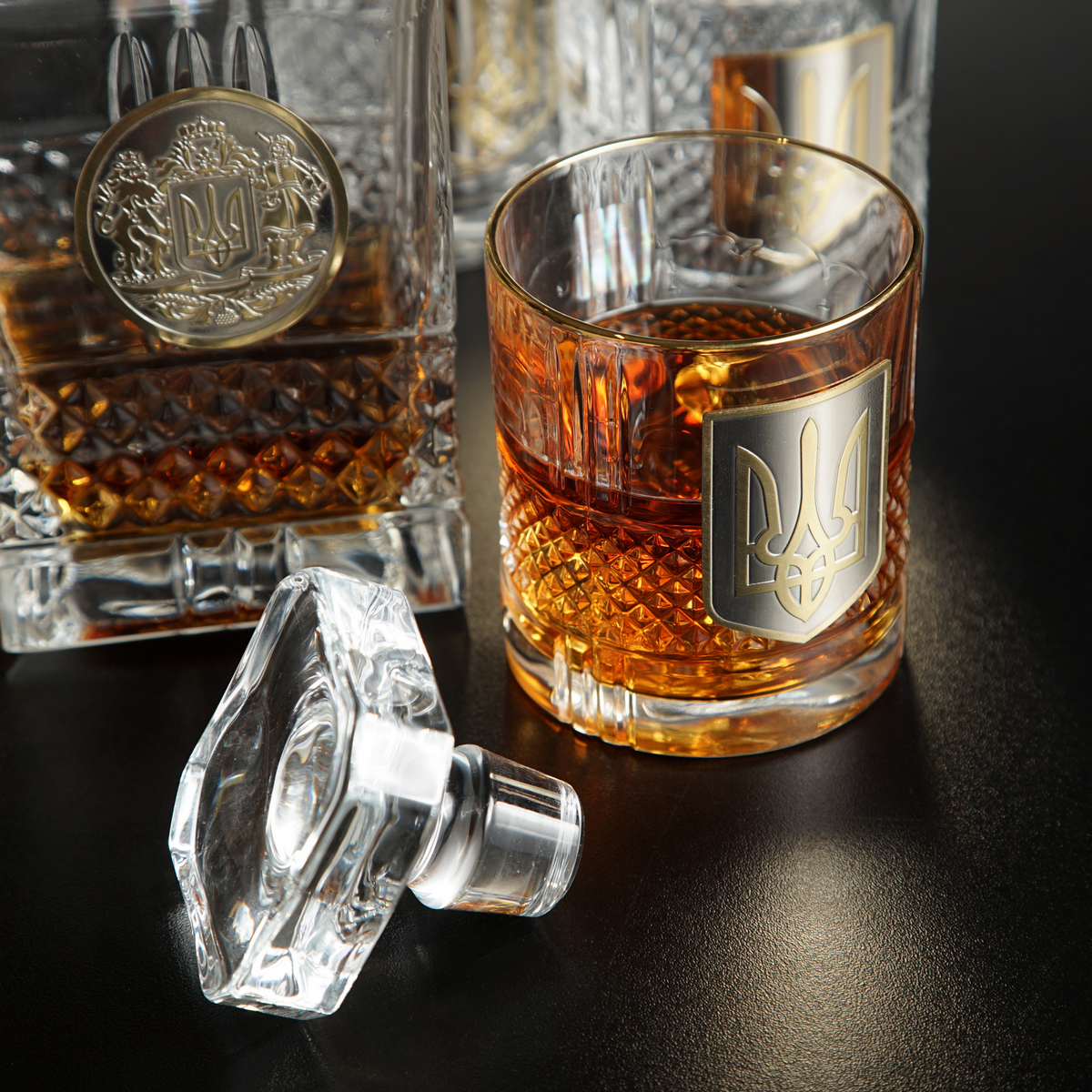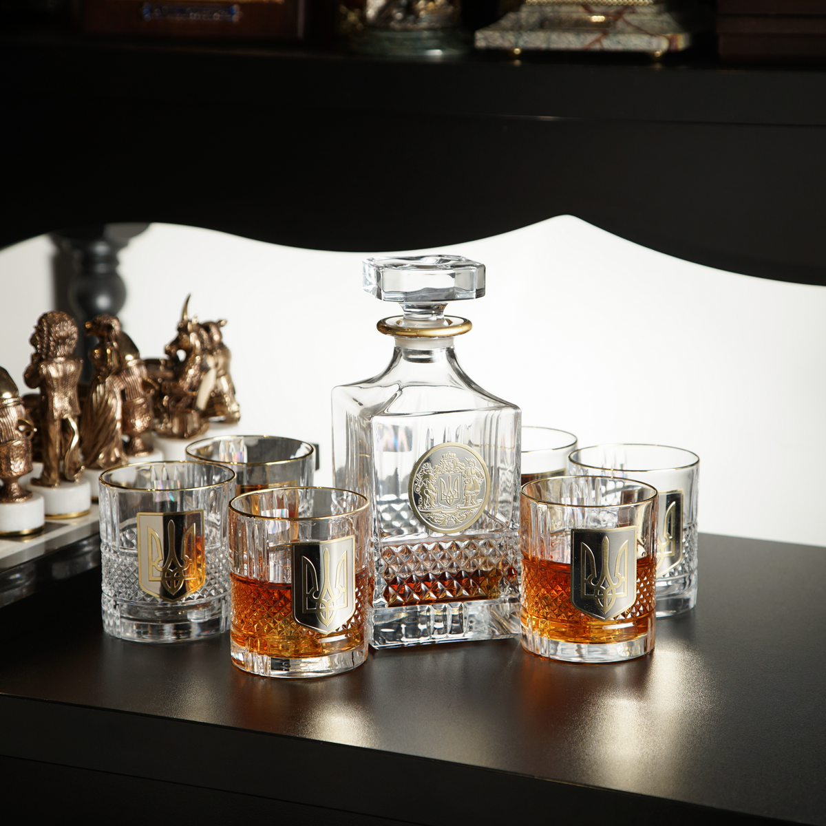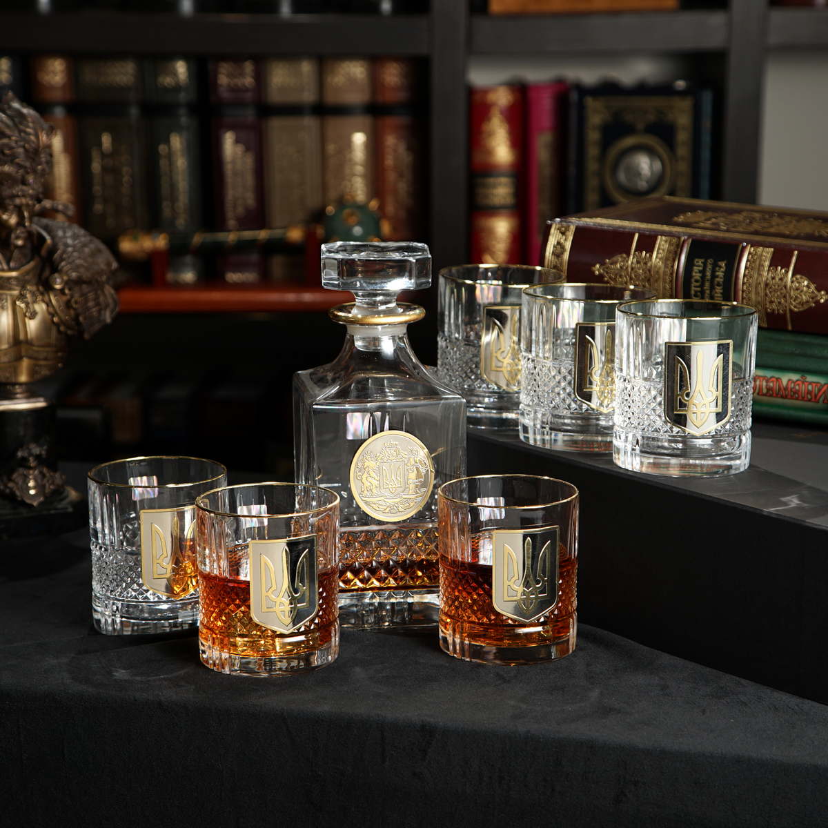 Кришталевий графин та 6 склянок для віскі та води із серії "Тризуб" від BIANCANEVE