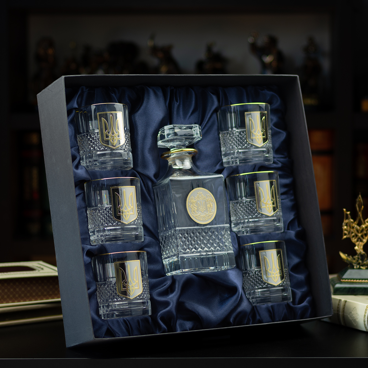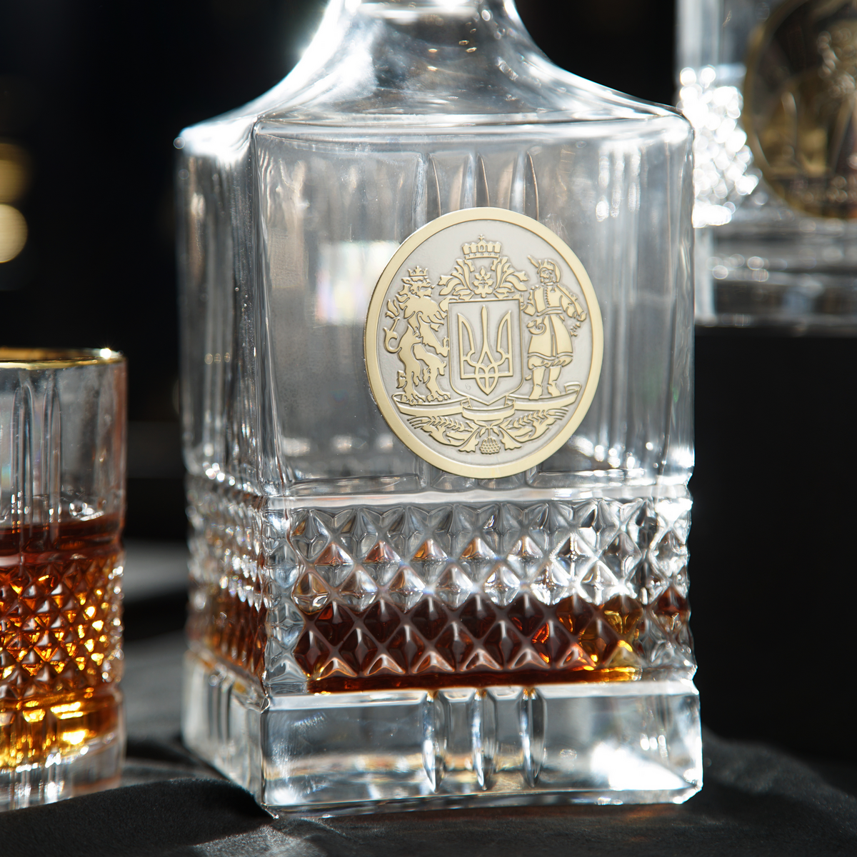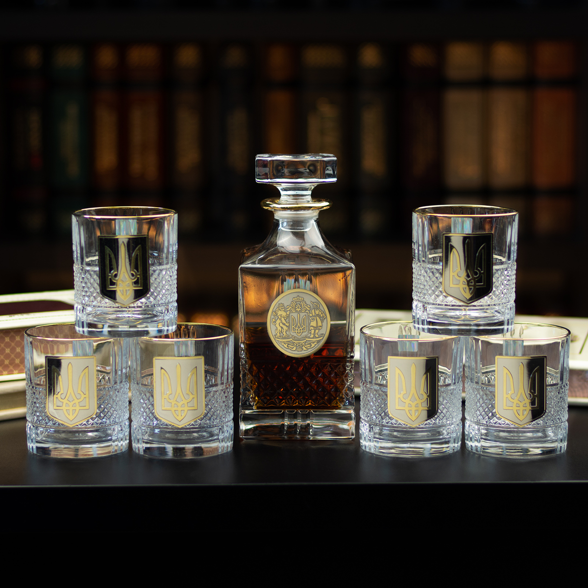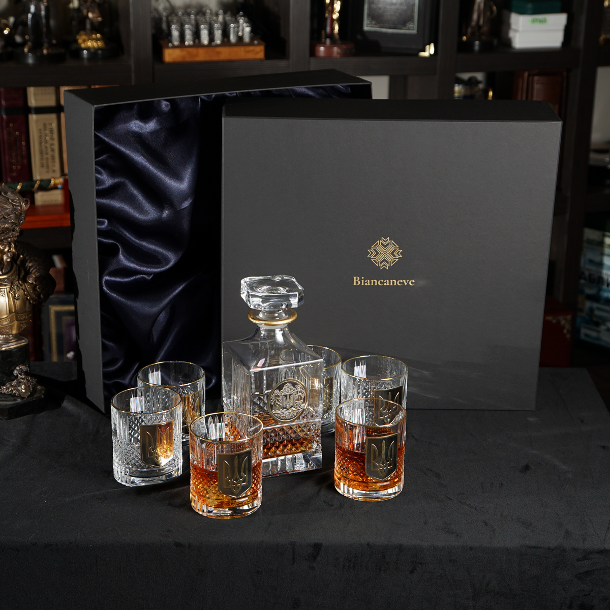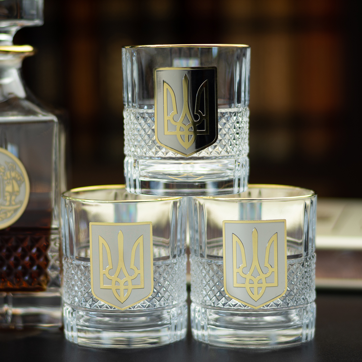 Кришталевий графин та 6 склянок для віскі та води із серії "Тризуб" від BIANCANEVE