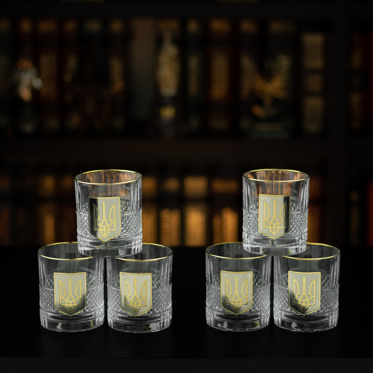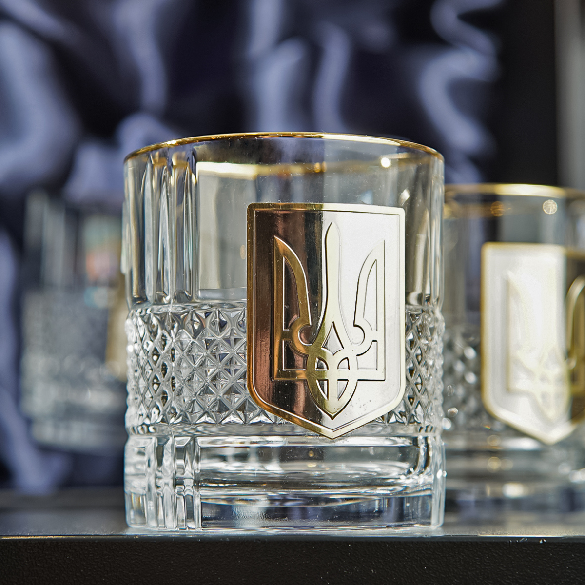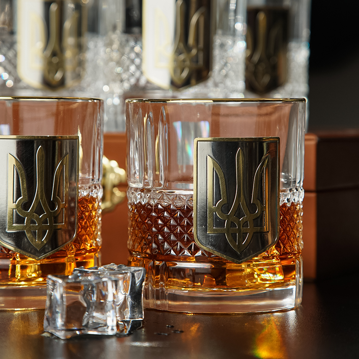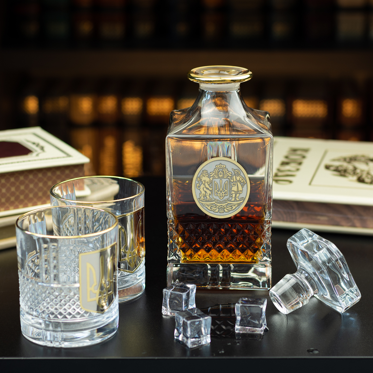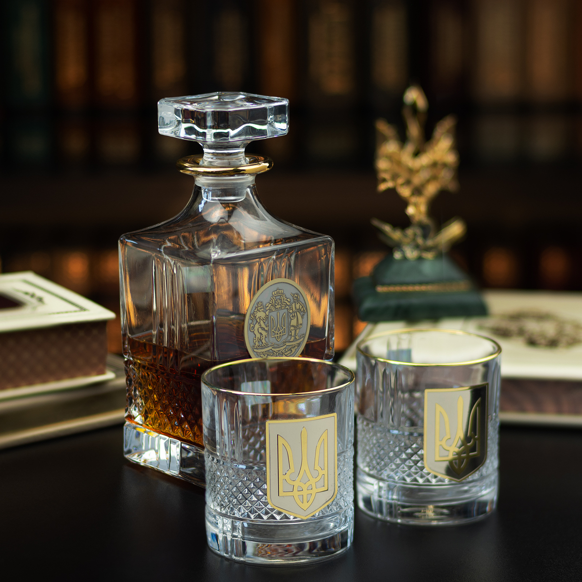Кришталевий графин та 6 склянок для віскі та води із серії "Тризуб" від BIANCANEVE
