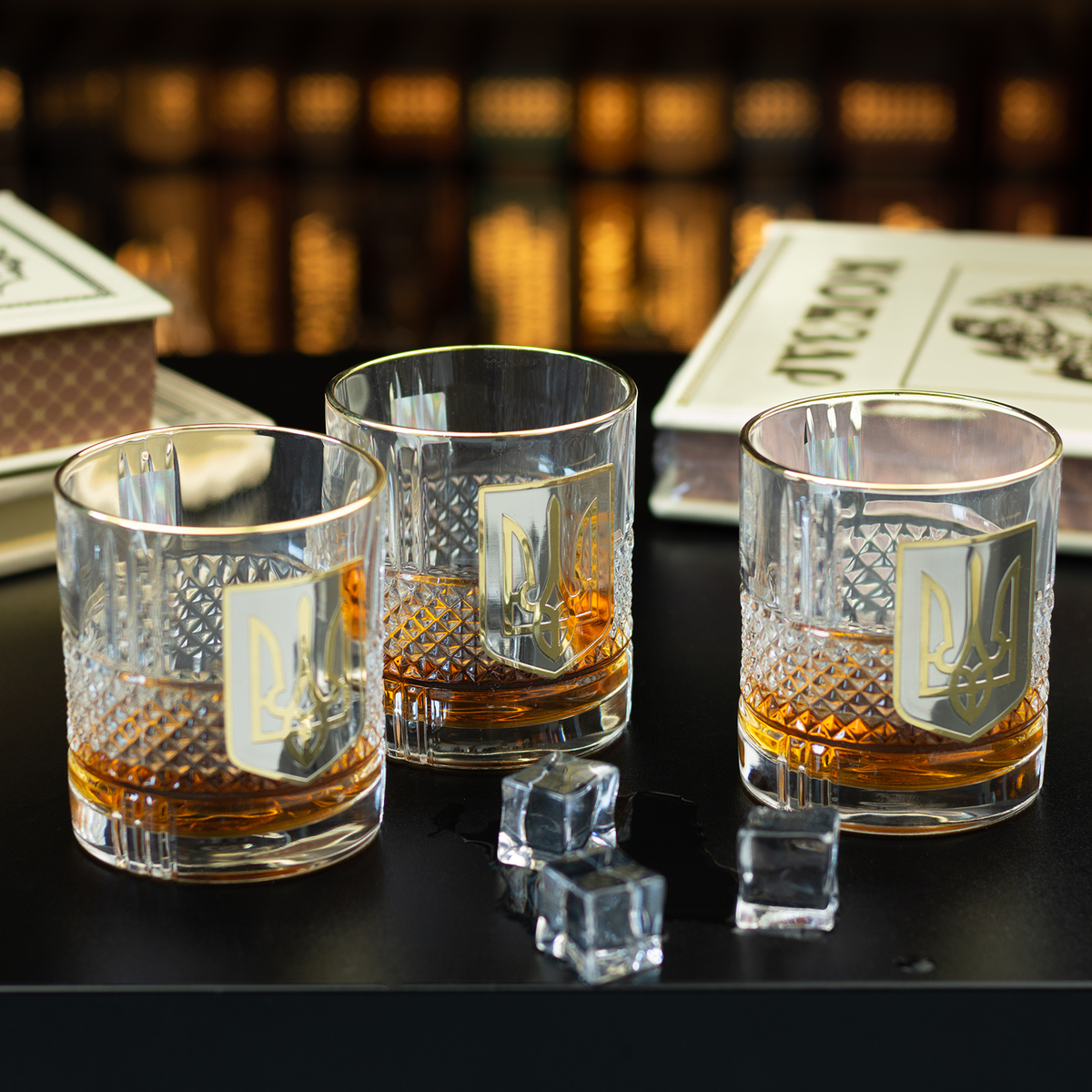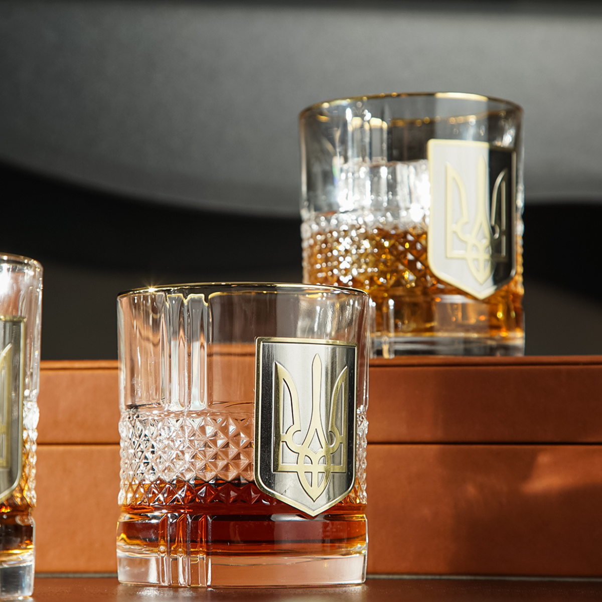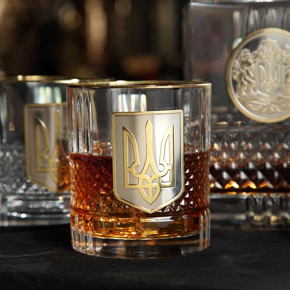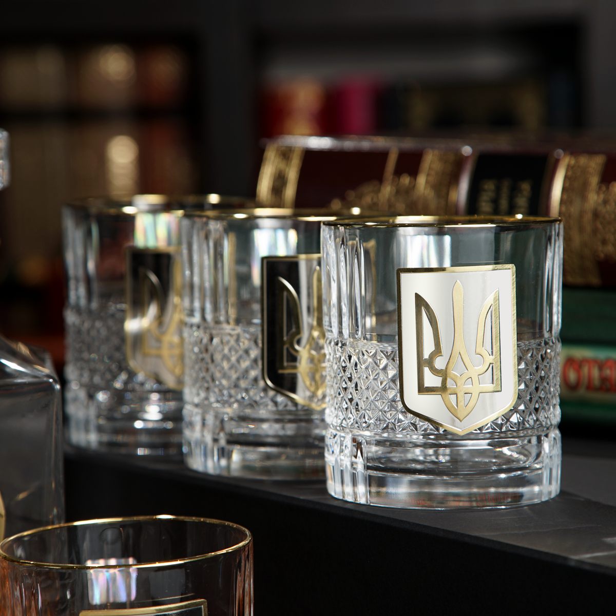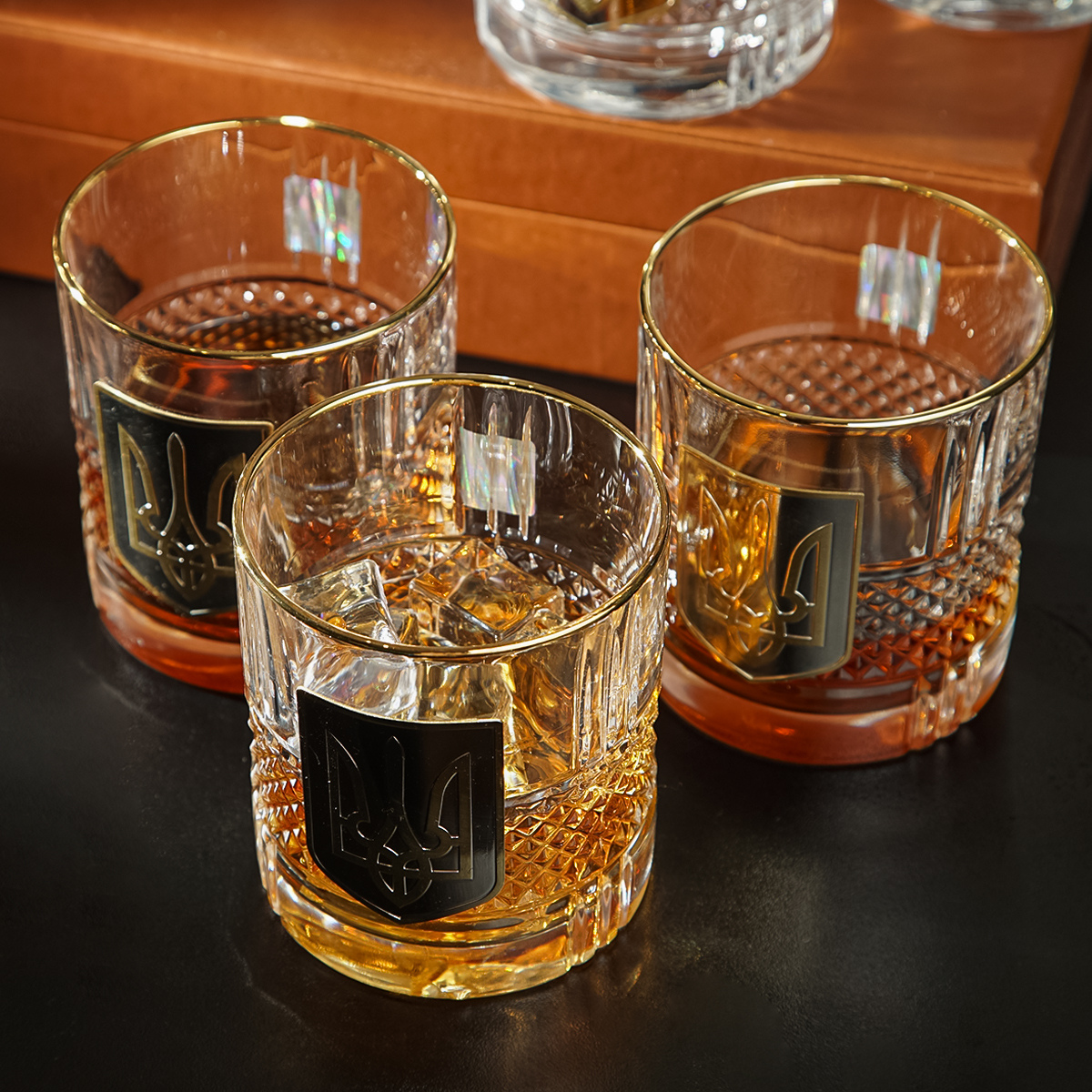 Кришталевий графин та 6 склянок для віскі та води із серії "Тризуб" від BIANCANEVE