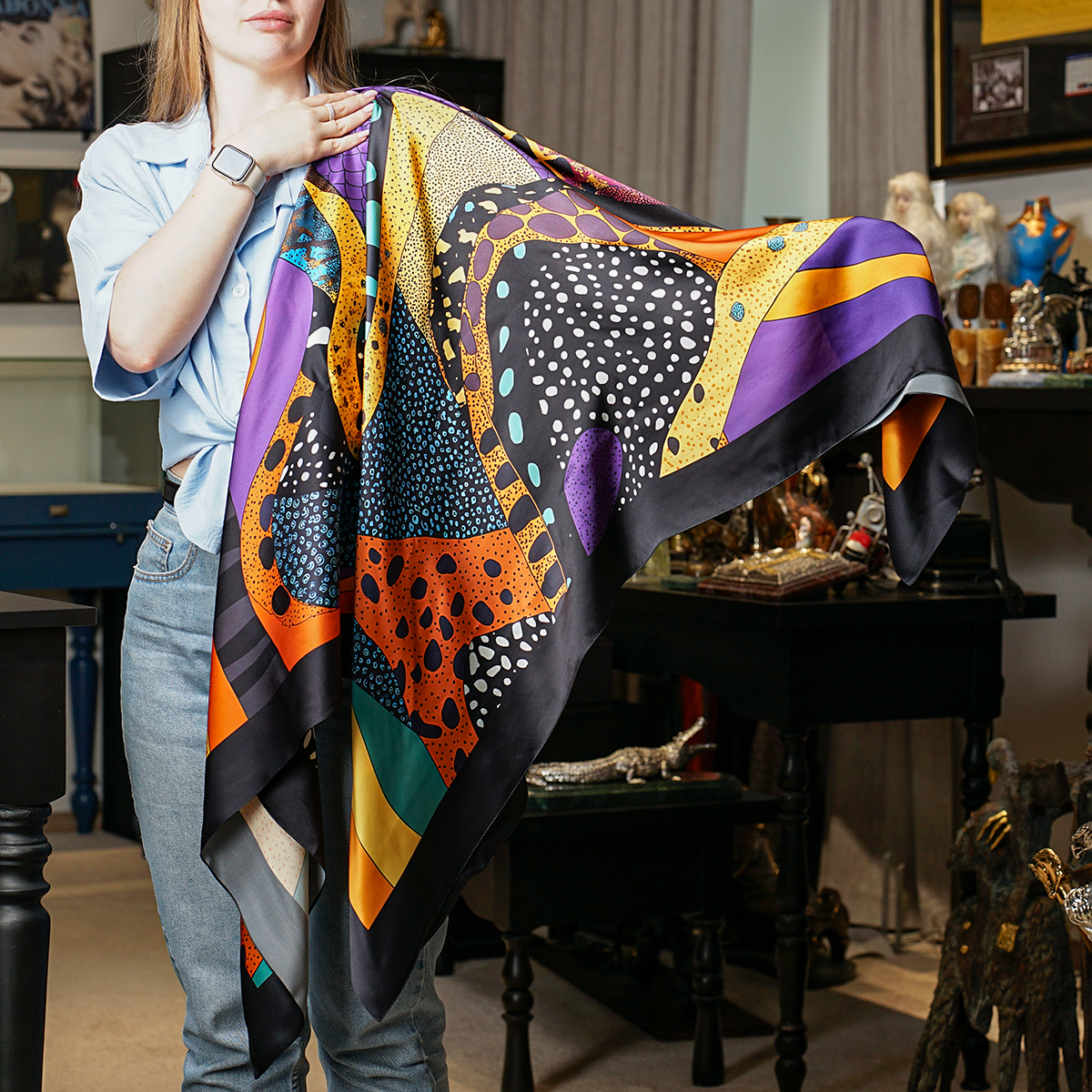 Хустка з шовку «Зміїний вихор» від FAMA (лімітована колекція, (130х130 см)
