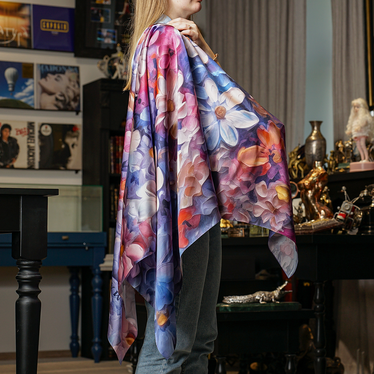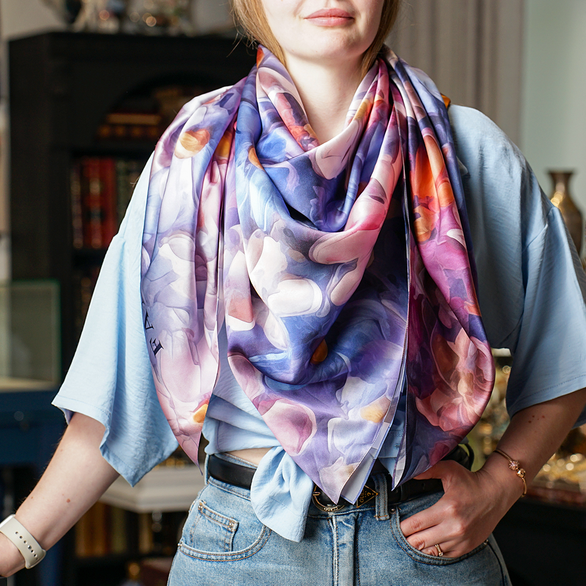 Хустина з натурального шовку «Pinky blue» від FAMA (лімітована колекція, 130х130 см)