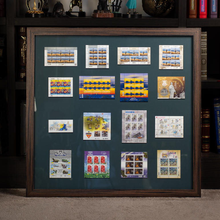 Колаж: "Марки воєнного періоду" 16 блоків 2022 р.