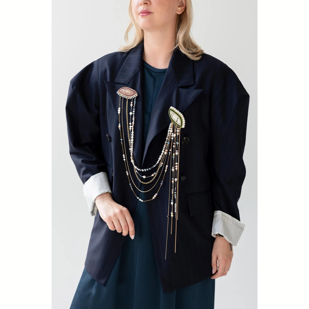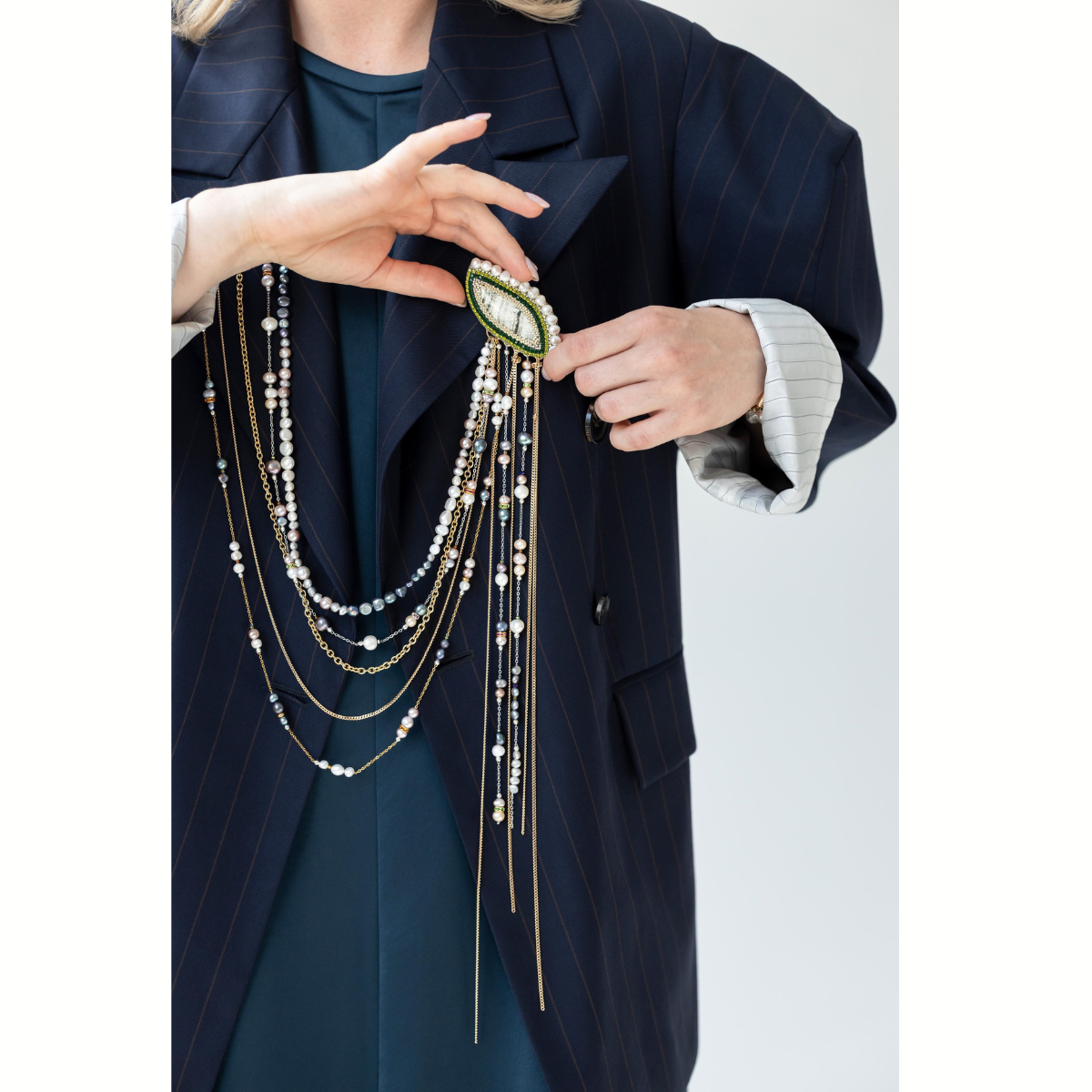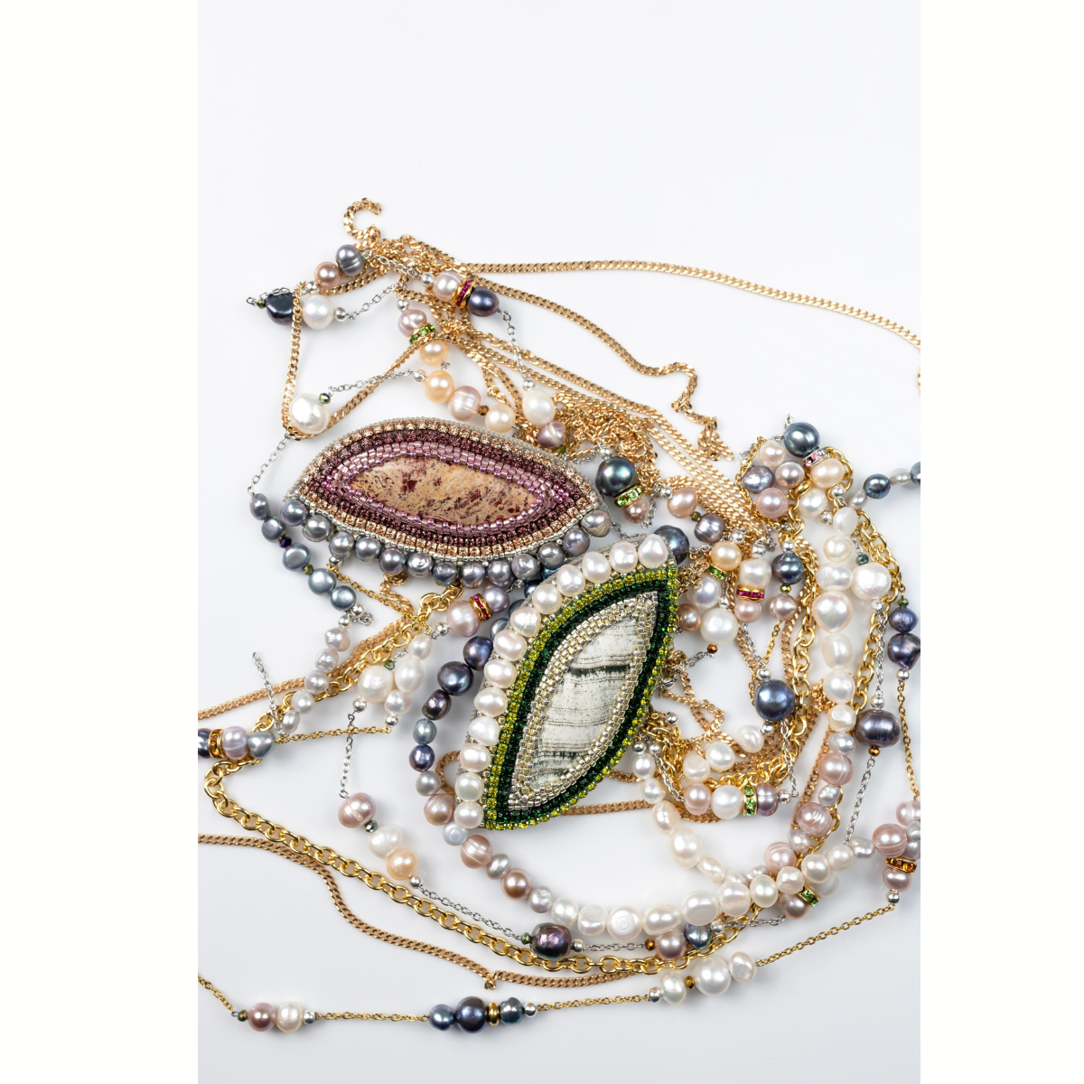 Кольє-брошка "MYSTIQUE" з яшмою та перлинами від Samokish