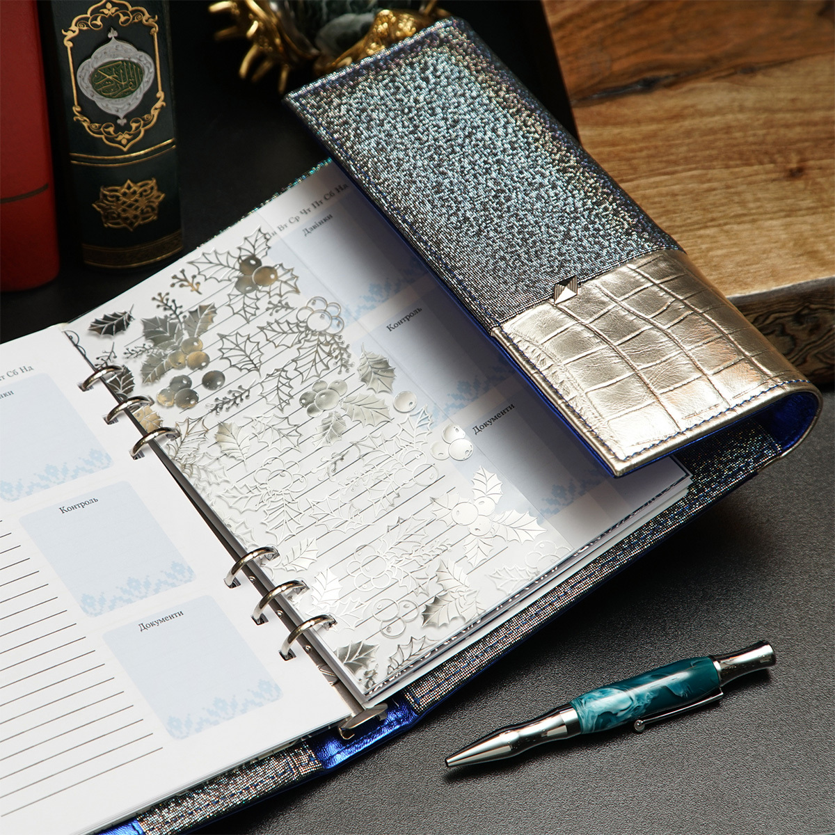 Шкіряний блокнот-органайзер кольору електрик від Helper Book
