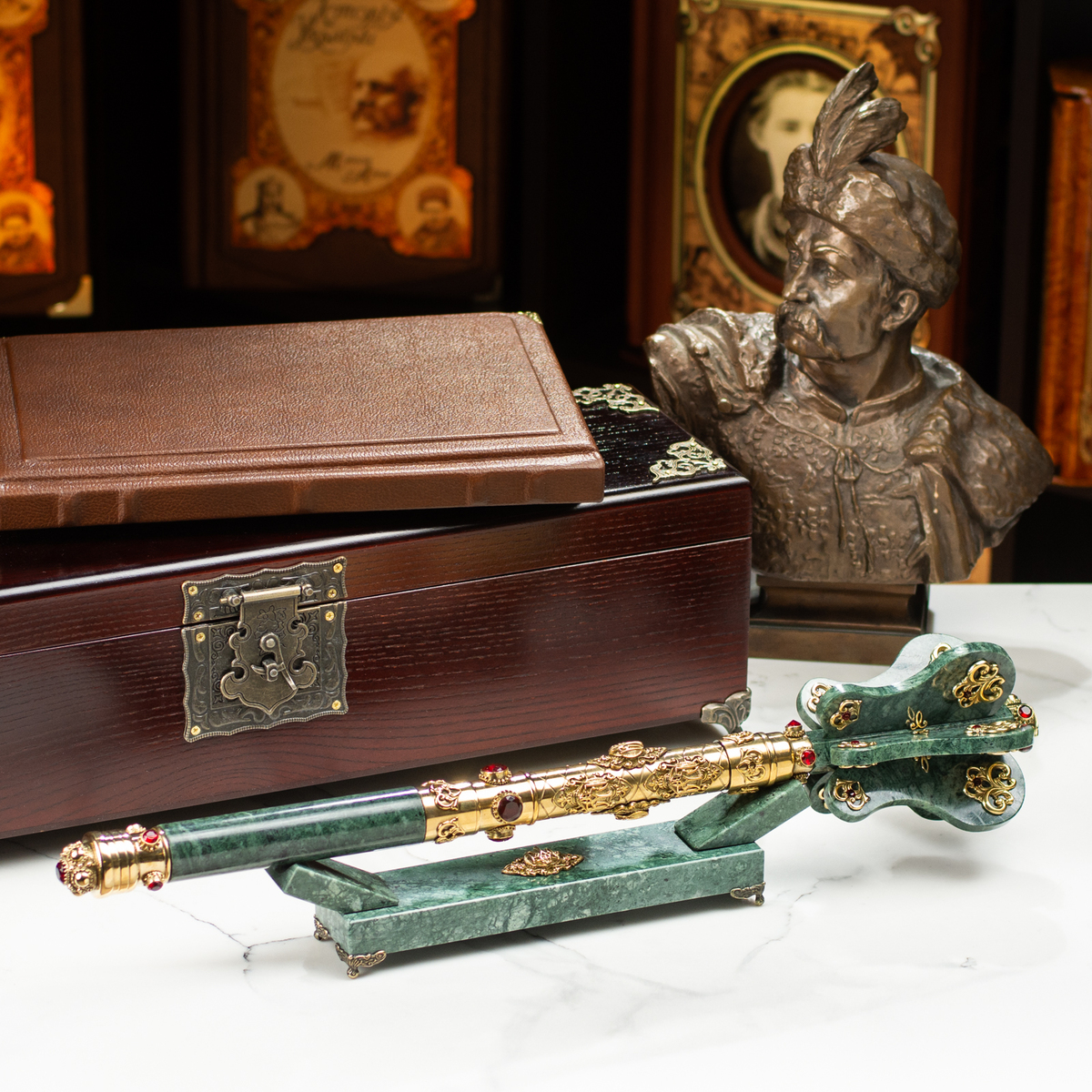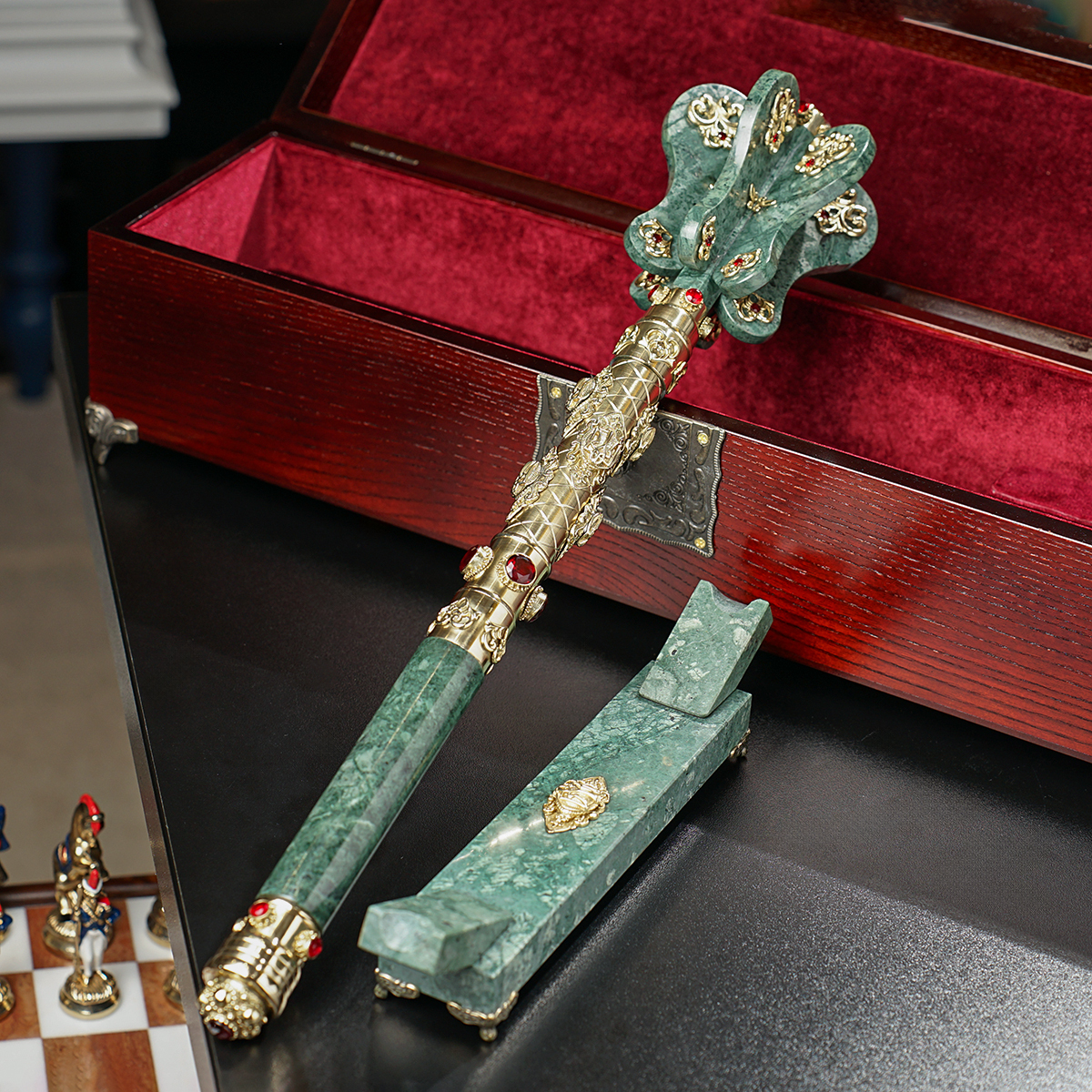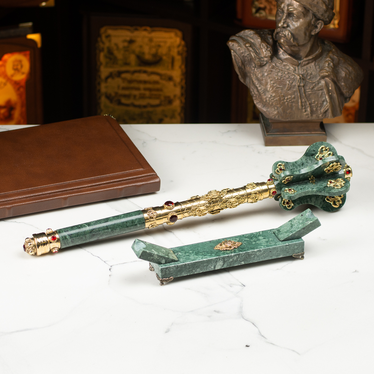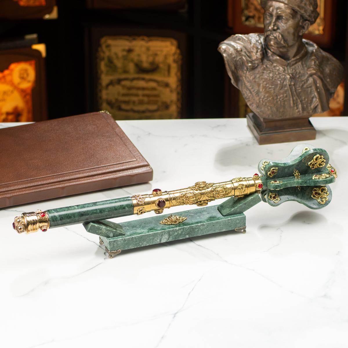 Мармуровий пернач "Червона калина" з латунню, кварцем і музичним супроводом
