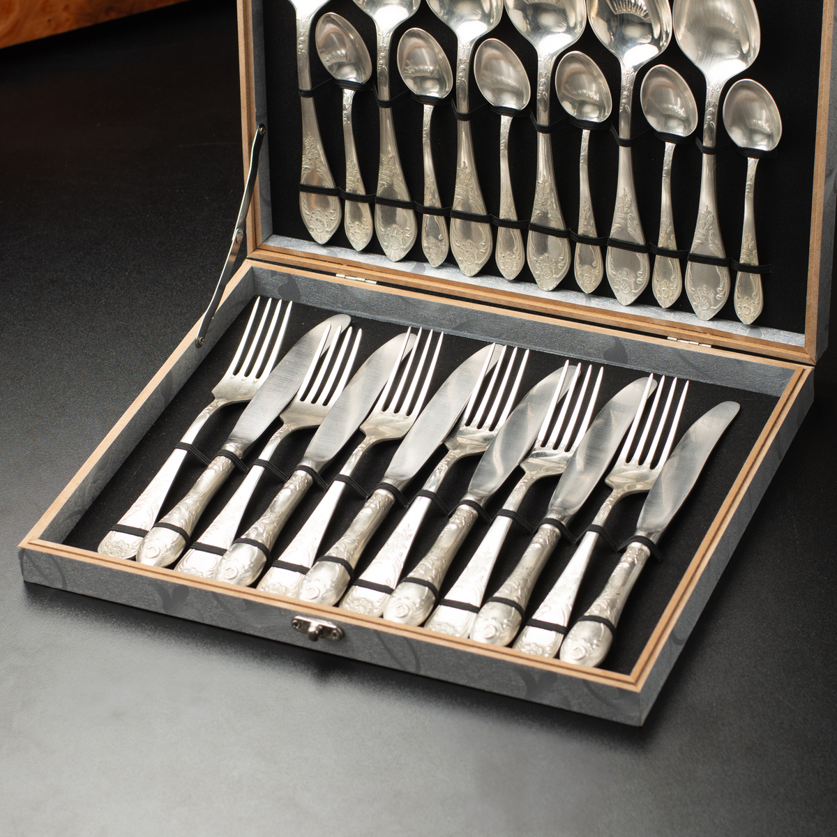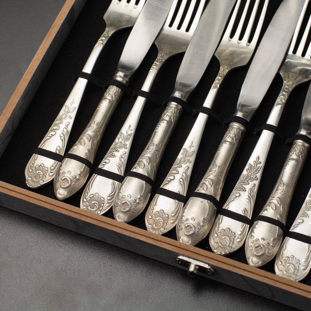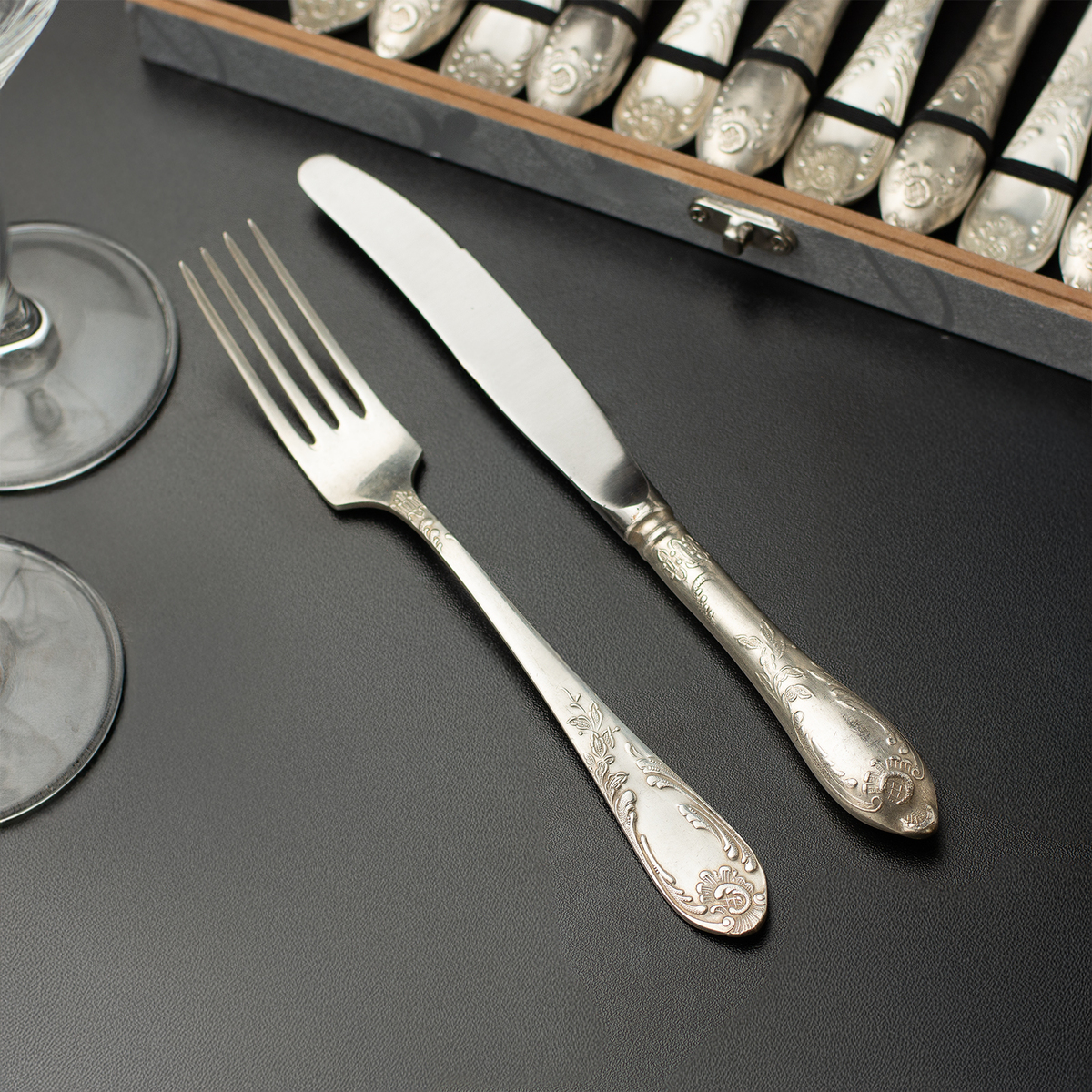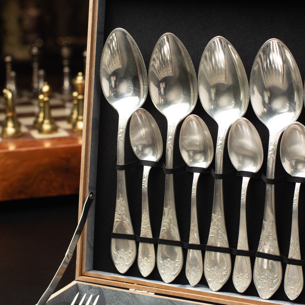 Мельхіоровий столовий набір 70-ті роки 20 століття "Reflection" (12 ложок, 6 виделок, 6 ножів)