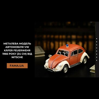 Металева модель автомобіля VW Käfer Feuerwehr 1966 року (34 см) від Nitsche (виготовлено у ретро стилі)