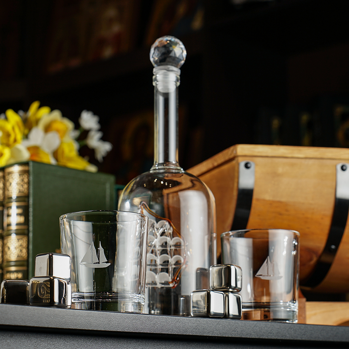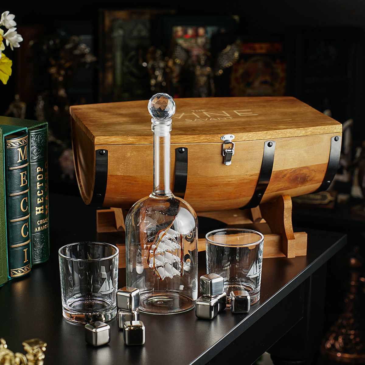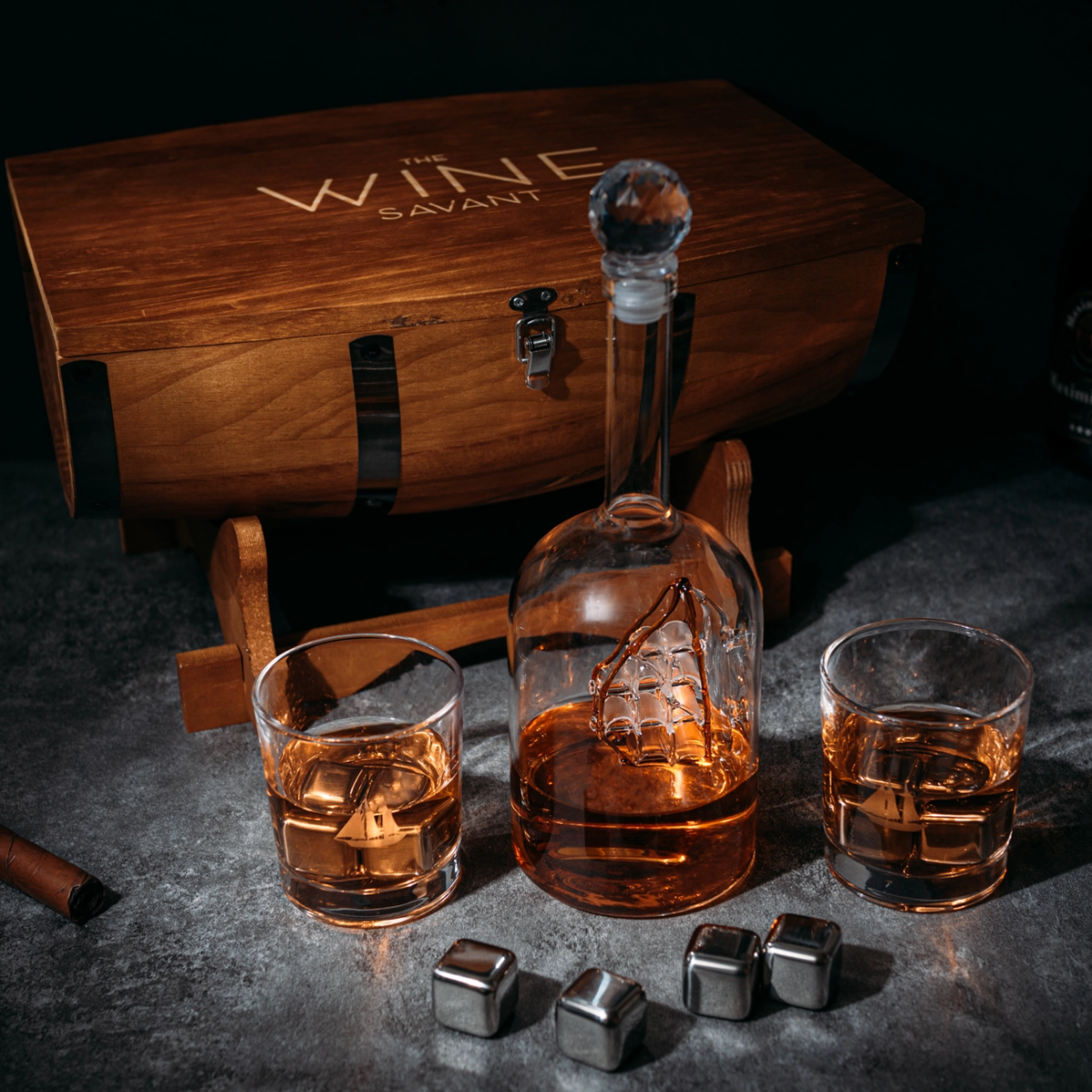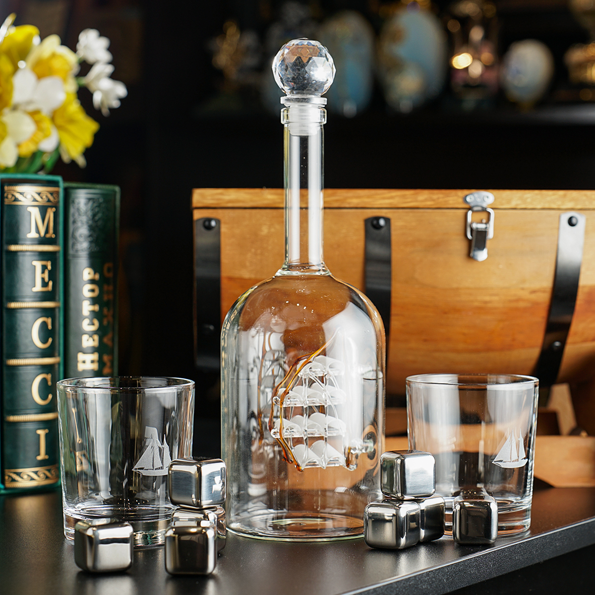 Набір для віскі "Ocean spirit" в футлярі (графин, 2 склянки, 8 охолоджувачів)