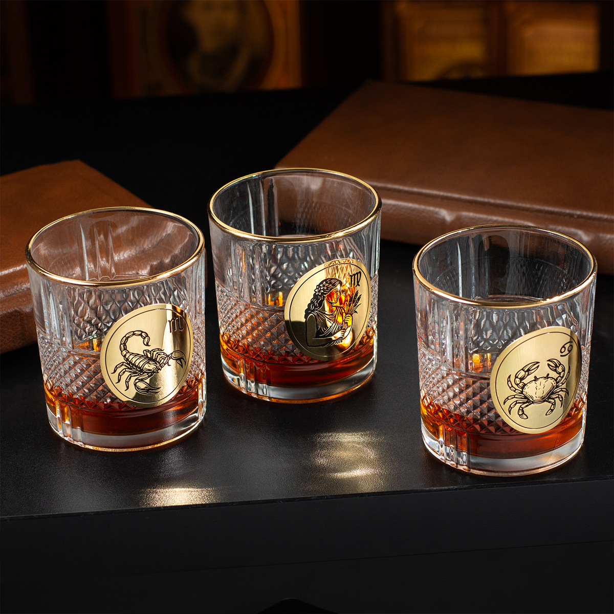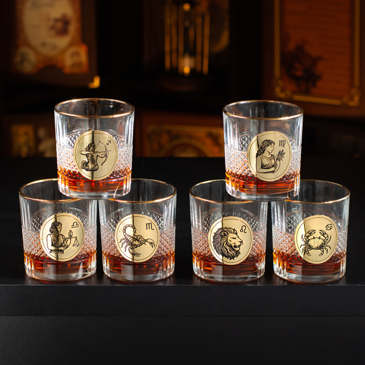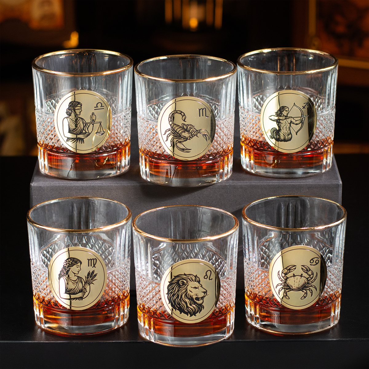 Набір для віскі з 6 кришталевих склянок із позолотою та емалями «Знаки Зодіаку. Друге півріччя» від BIANCANEVE