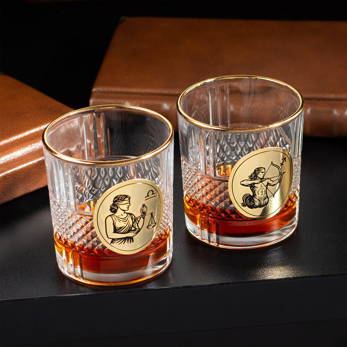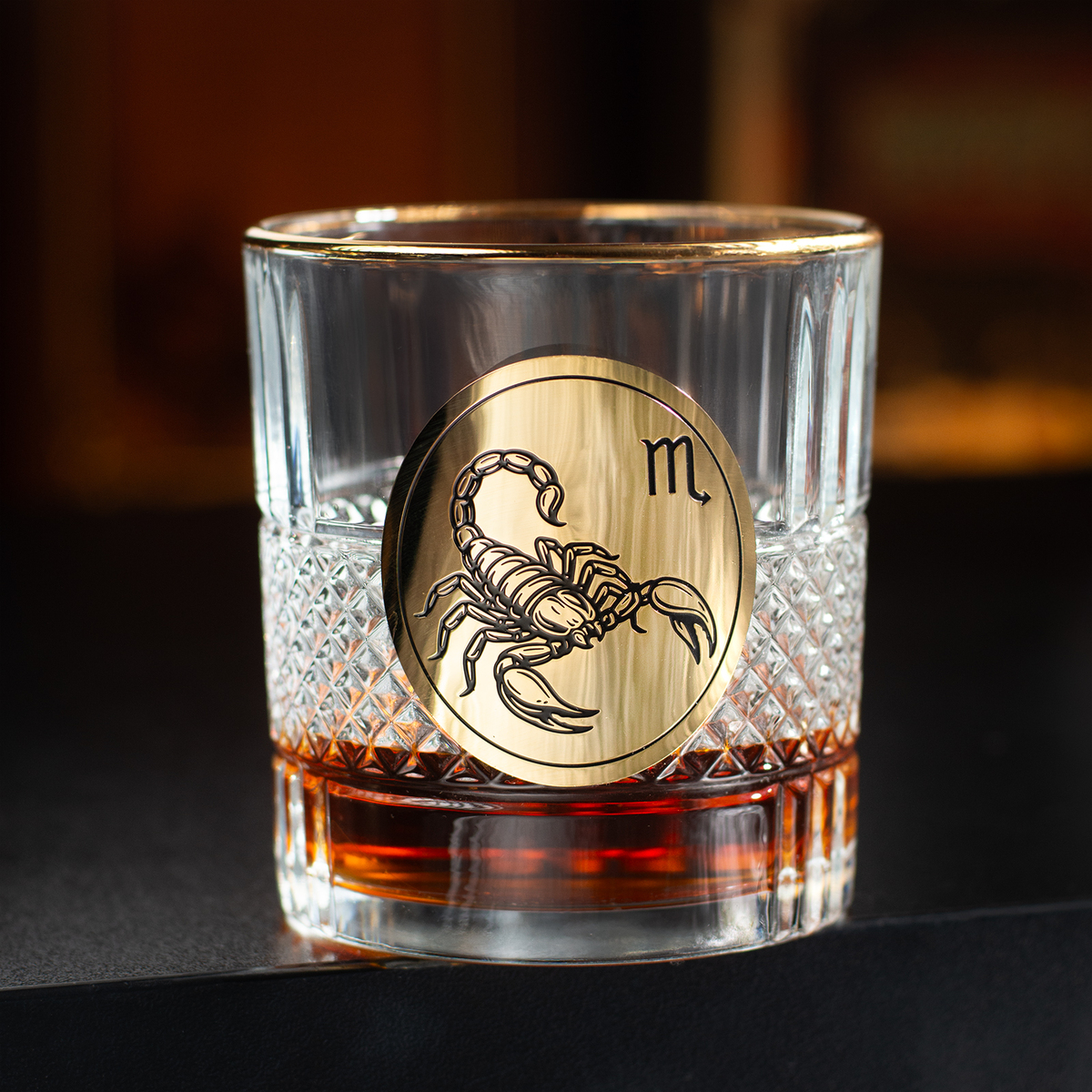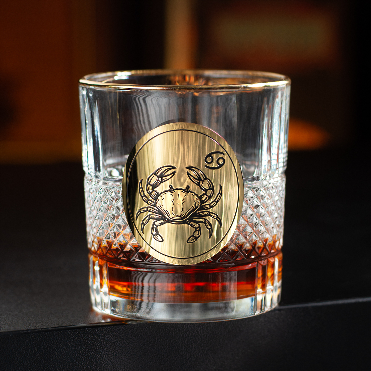 Набір для віскі з 6 кришталевих склянок із позолотою та емалями «Знаки Зодіаку. Друге півріччя» від BIANCANEVE