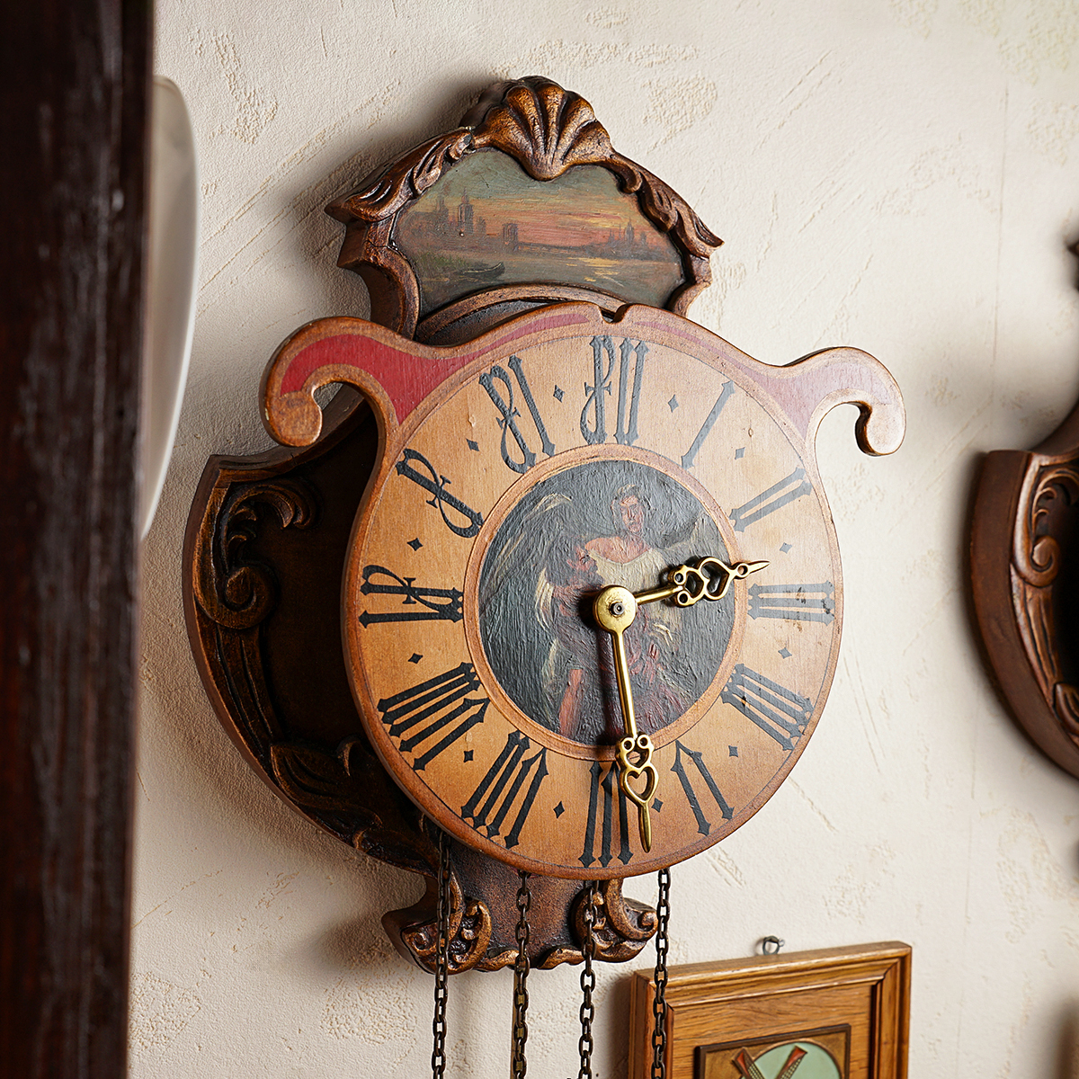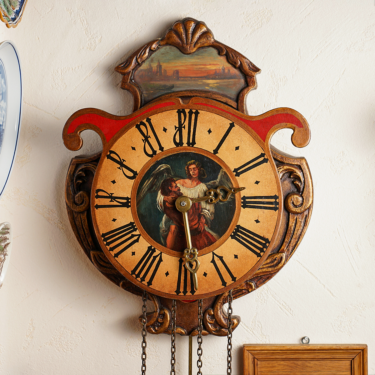 Настінний маятниковий годинник в стилі "Bauernmalerei", Німеччина-Австрія, 1930-1960