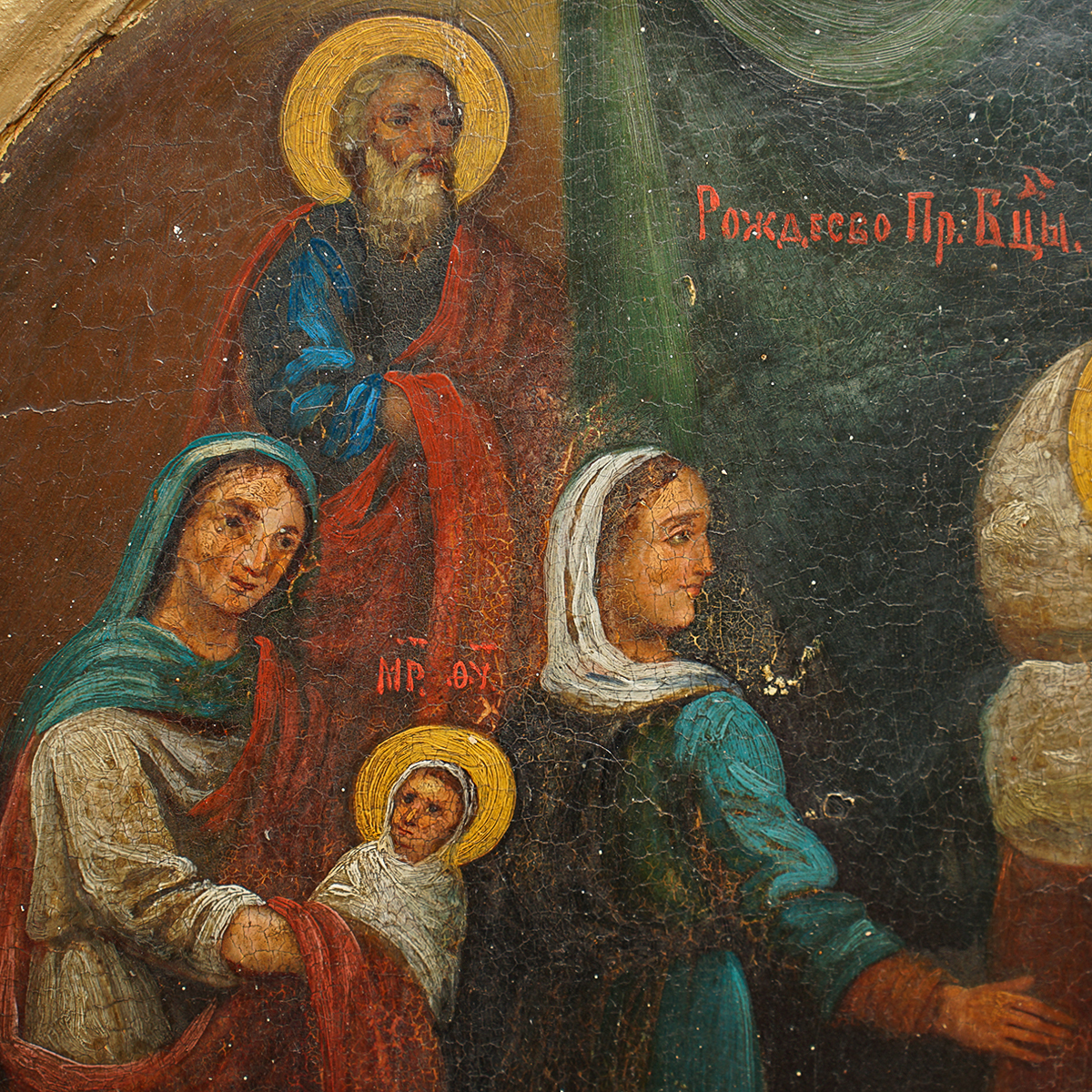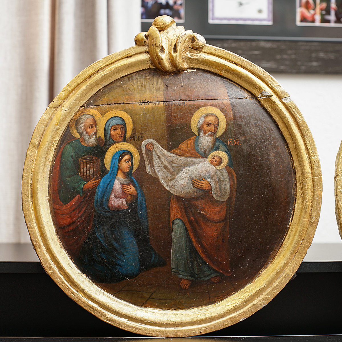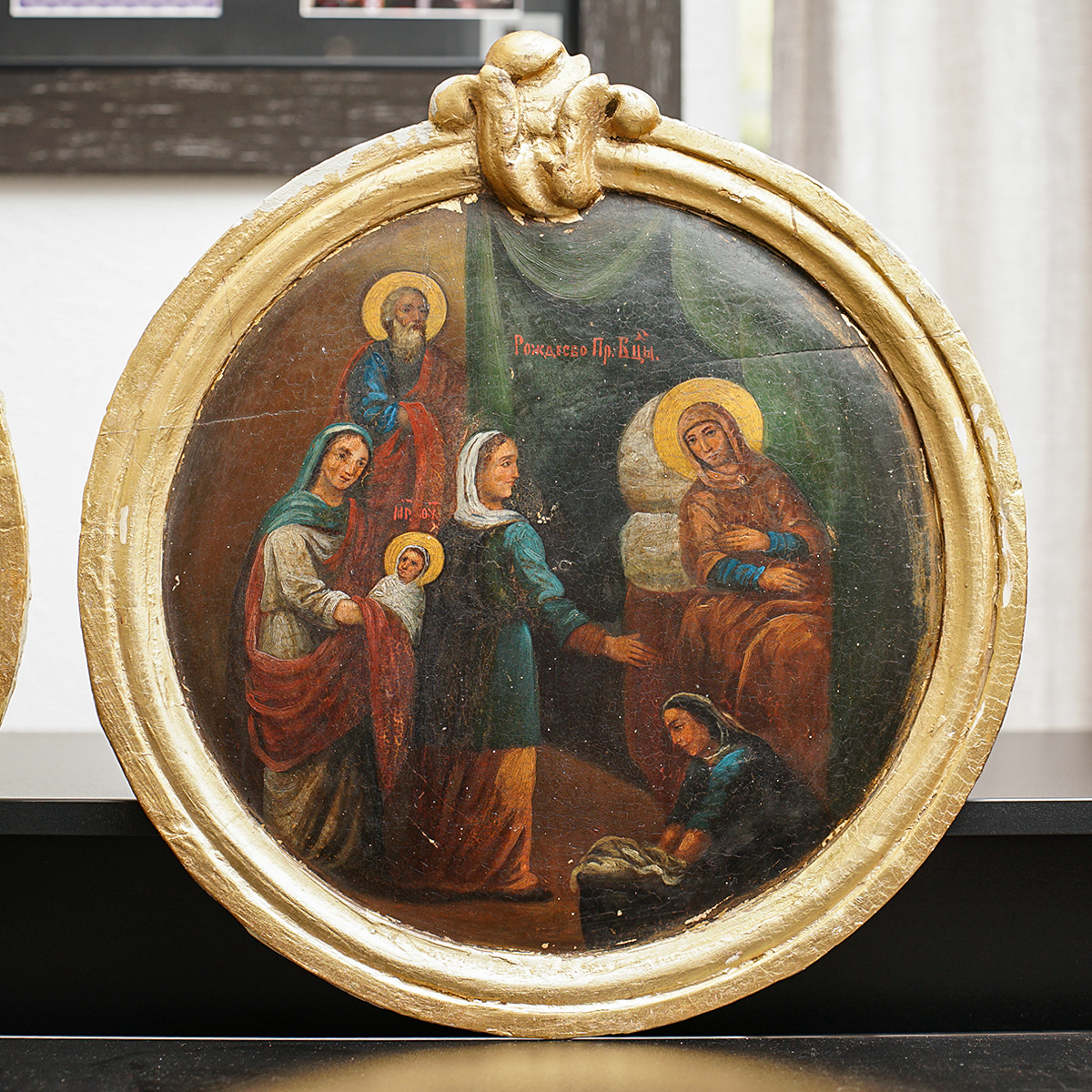 Пара церковних ікон середини 19 століття Різдво Пресвятої Богородиці та Стрітення Господнє, Придунав'я (без реставрації)