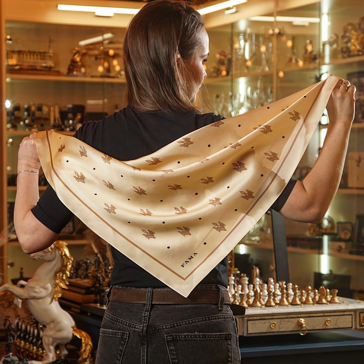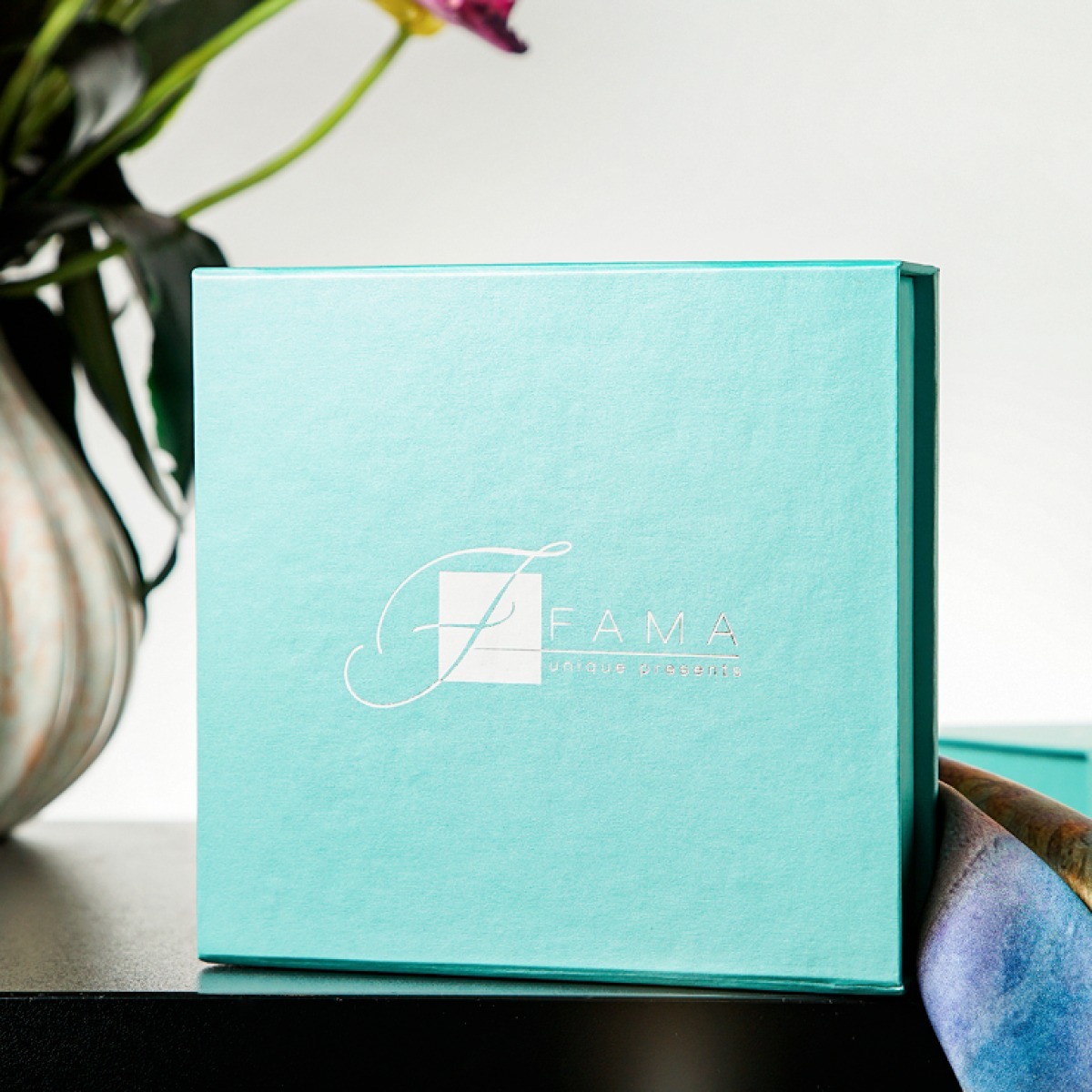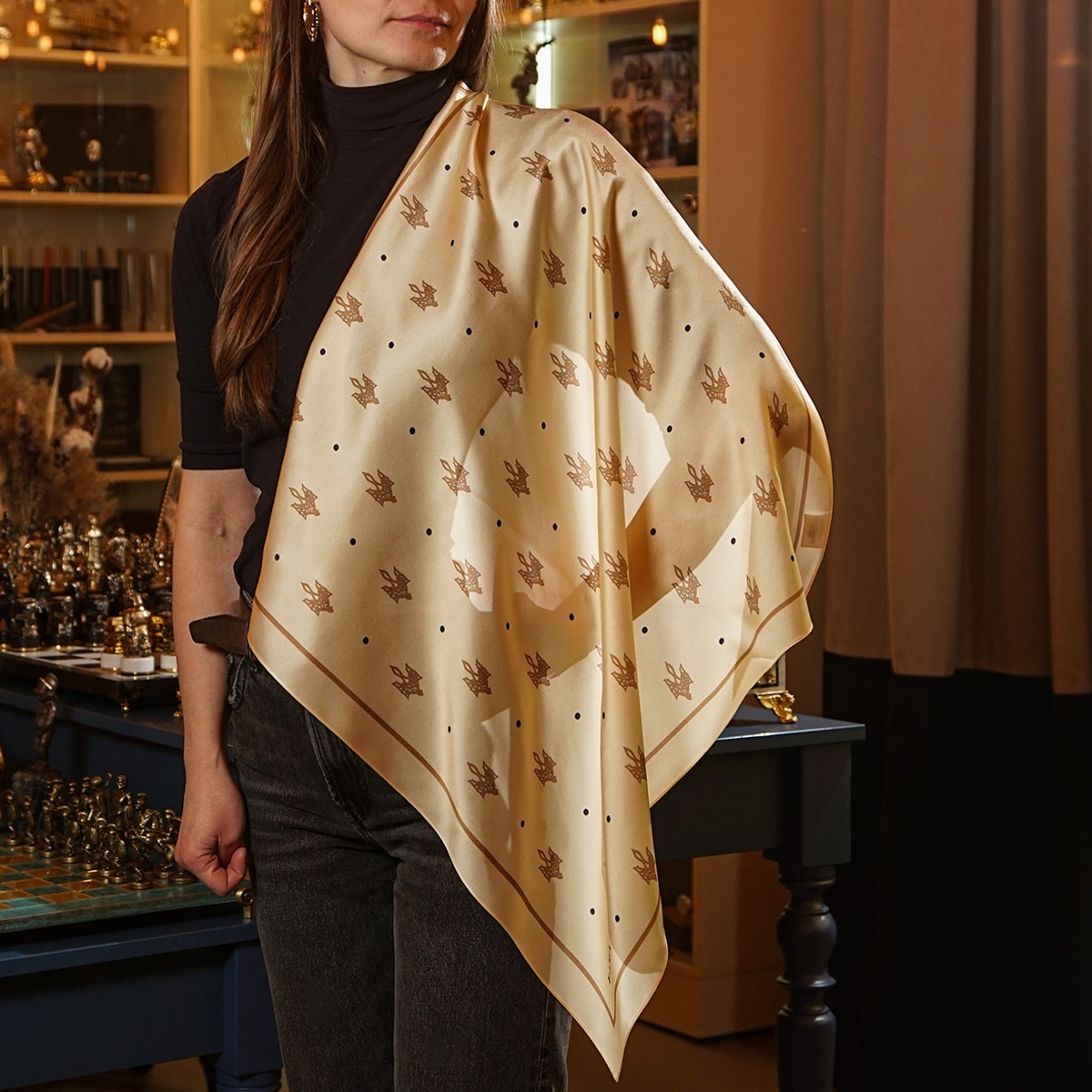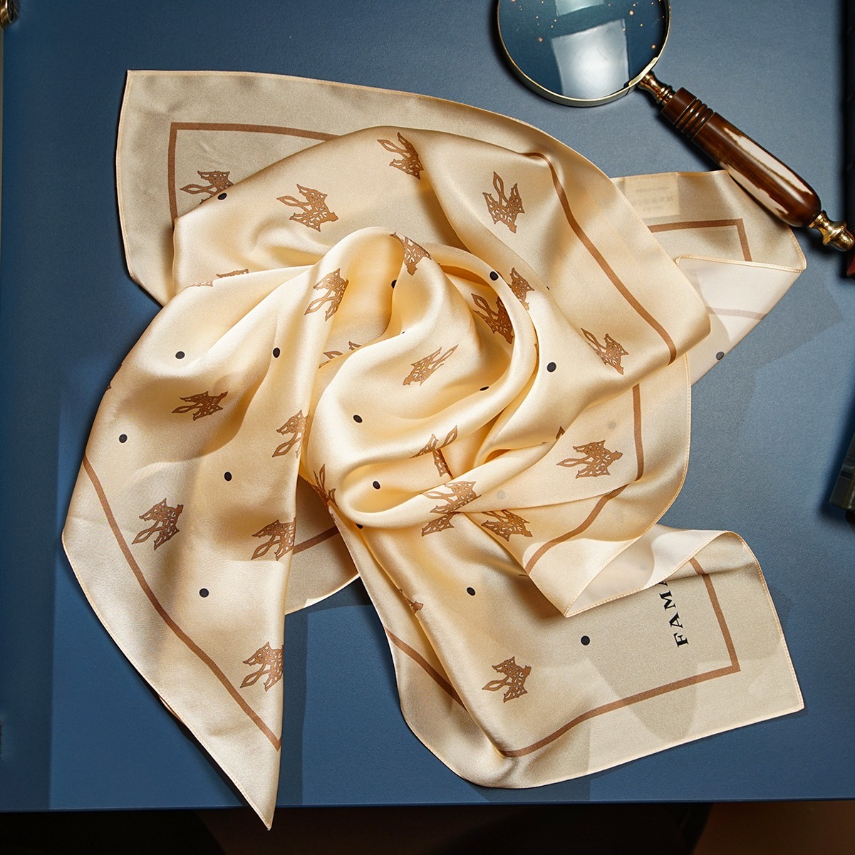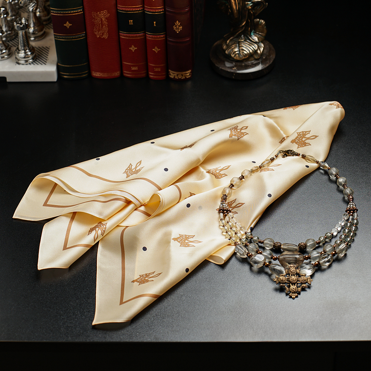 Подарунковий комплект - шовкова хустка "Trident" від FAMA (лімітована колекція, 65х65 см) та коралове намисто "Гармонія"