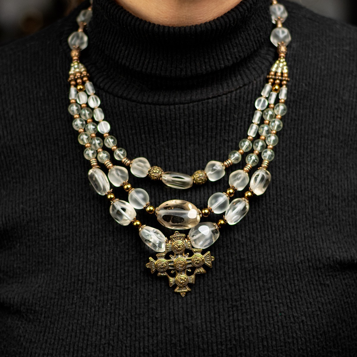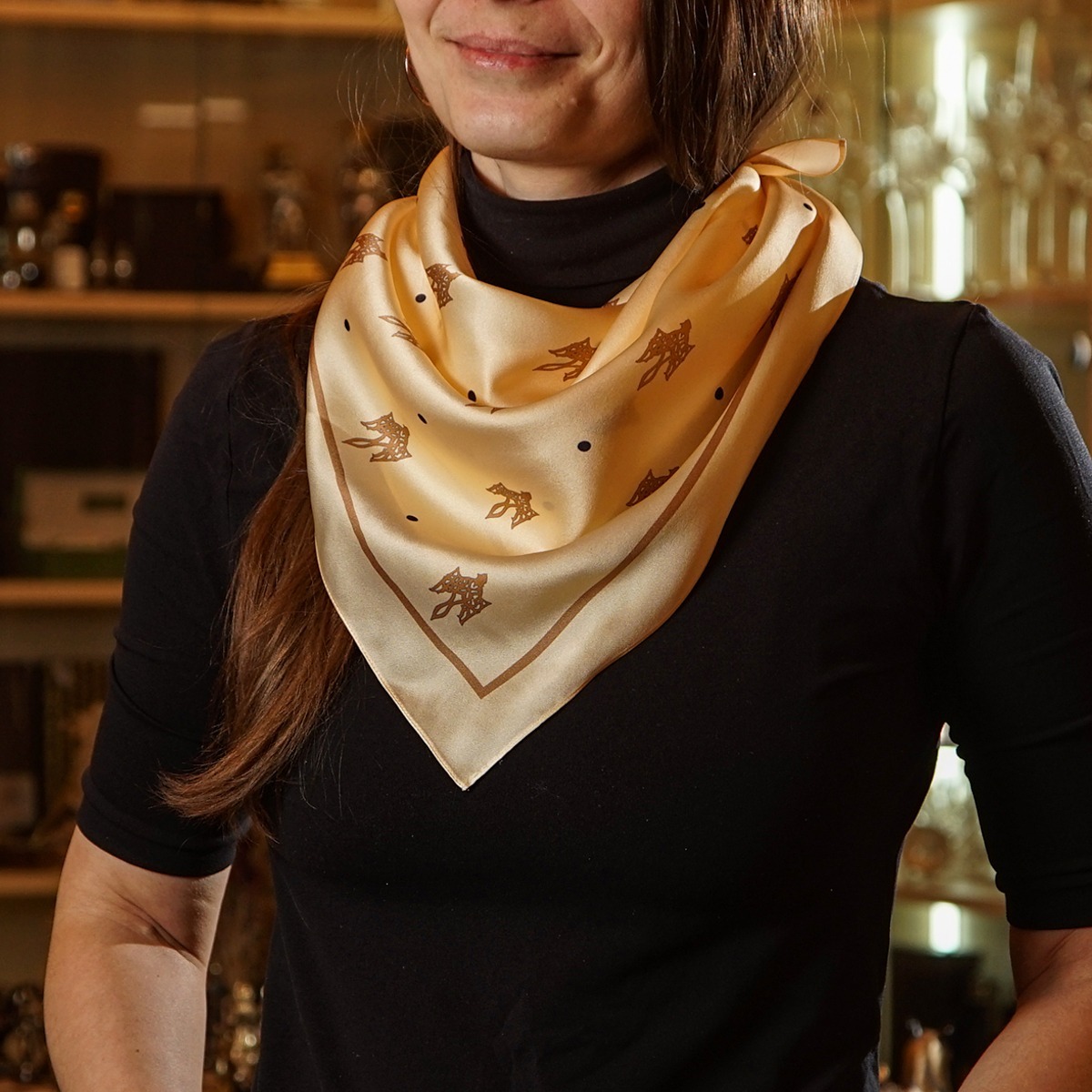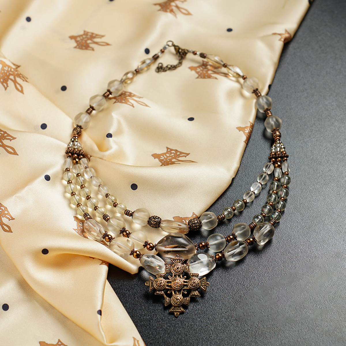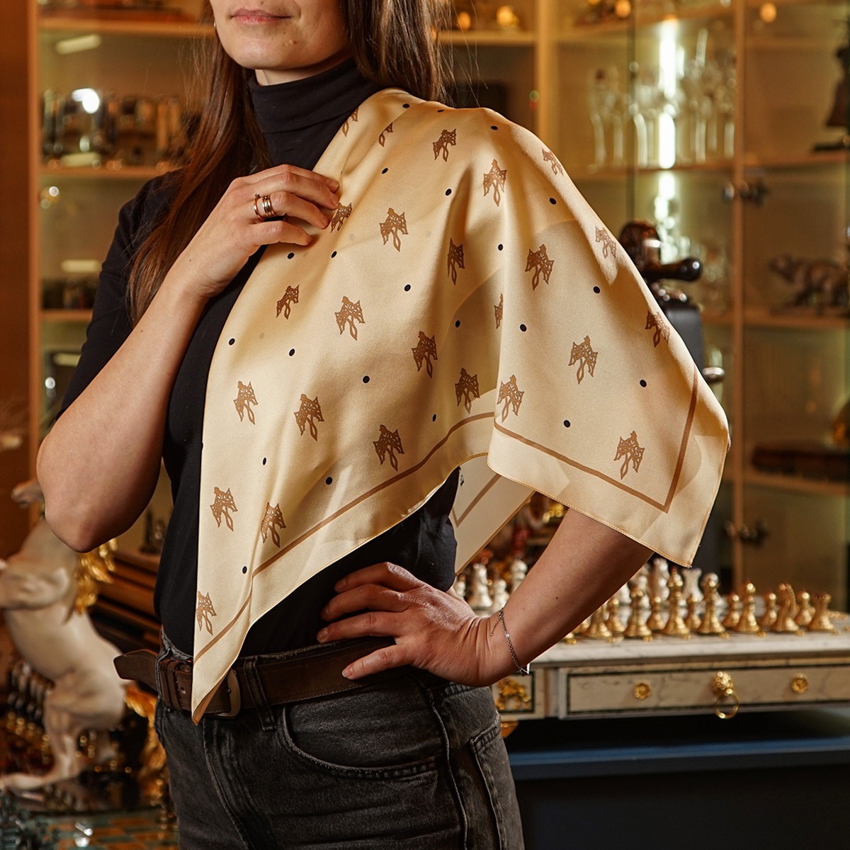 Подарунковий комплект - шовкова хустка "Trident" від FAMA (лімітована колекція, 65х65 см) та коралове намисто "Гармонія"
