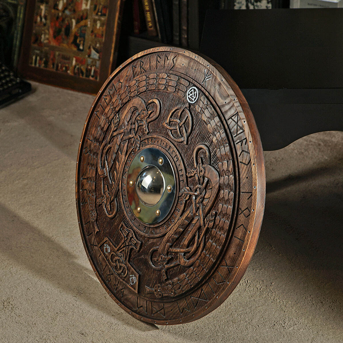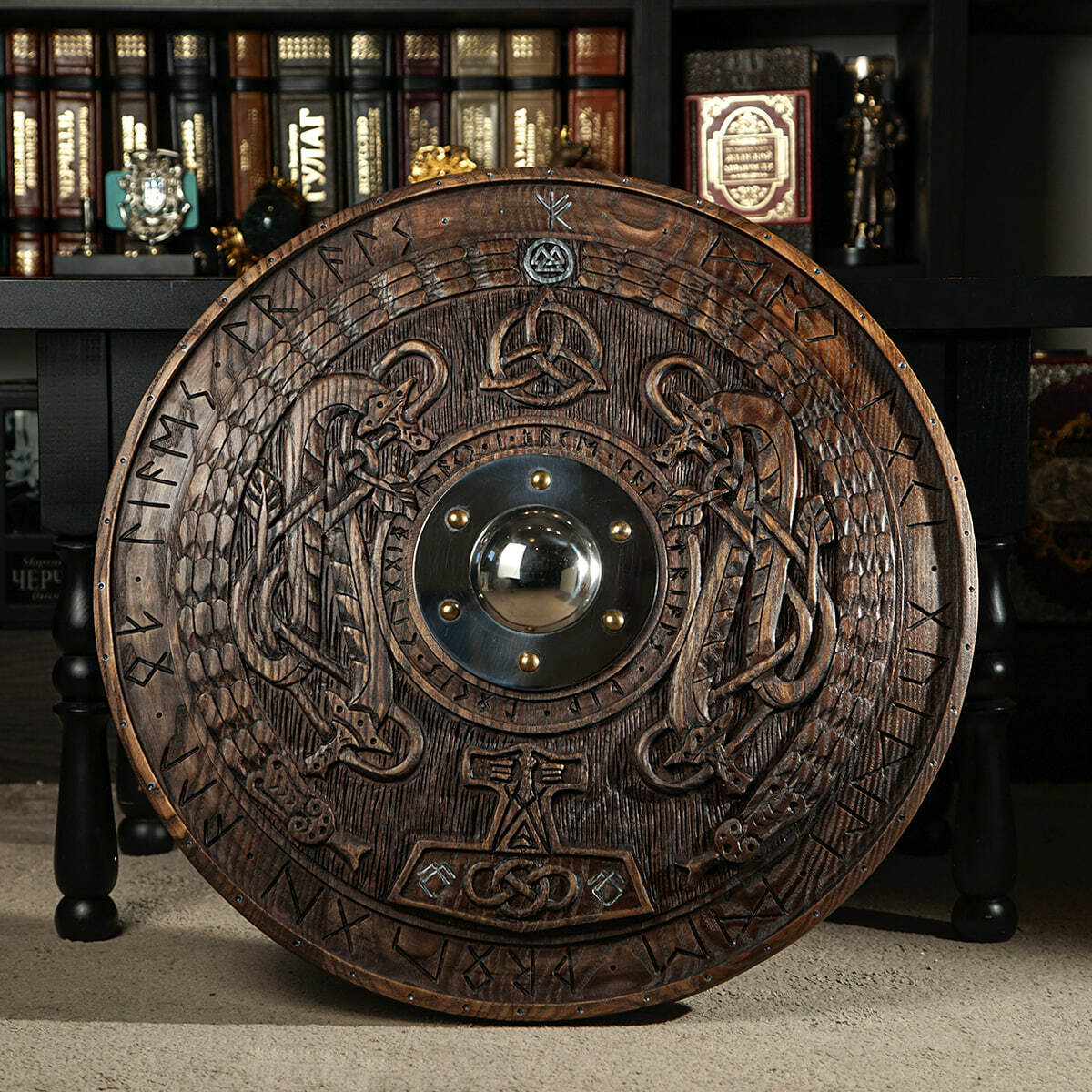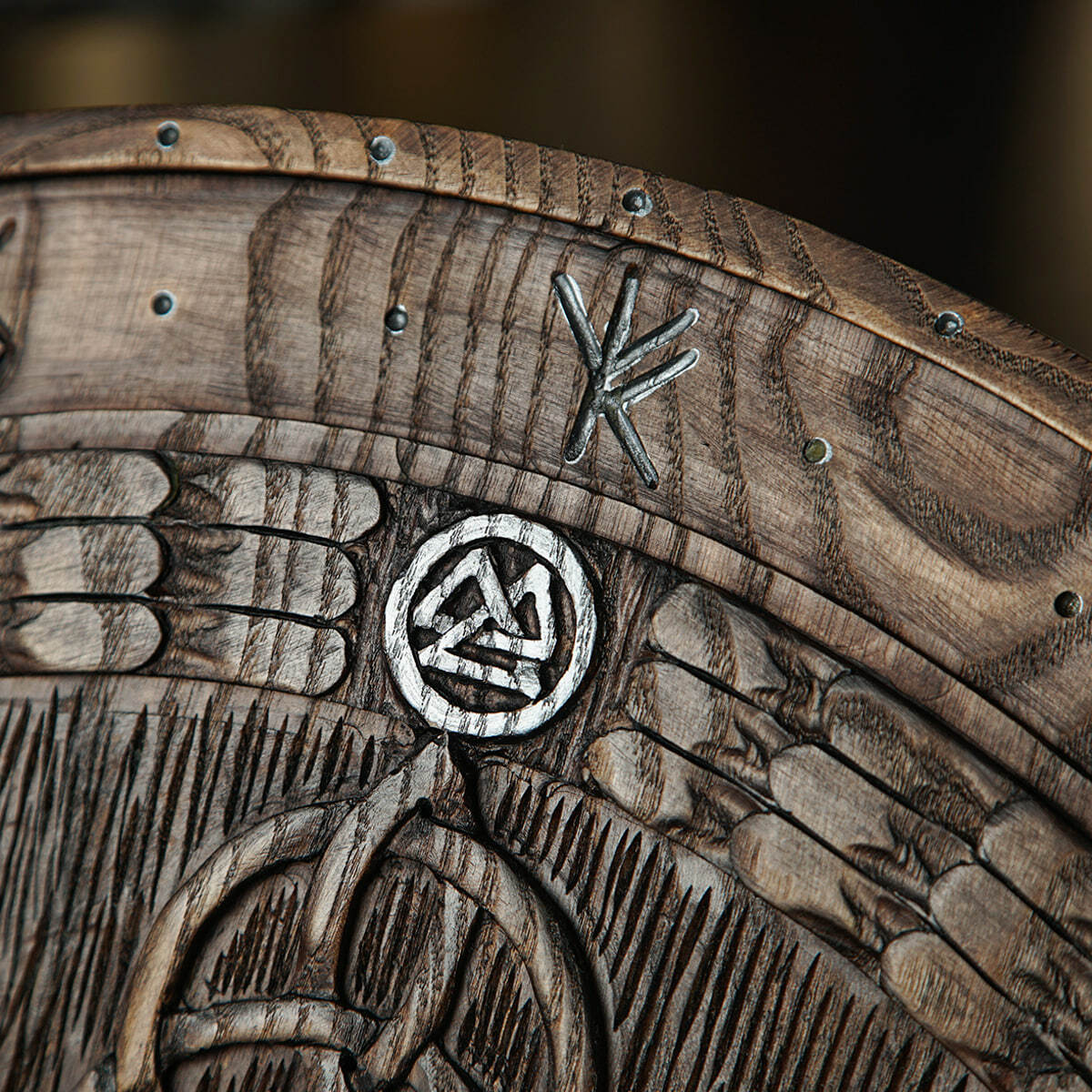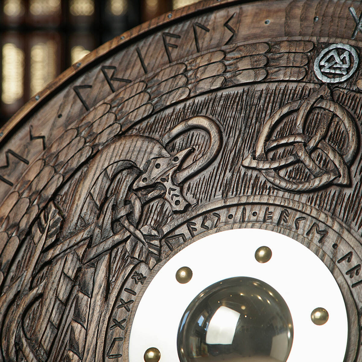 Подарунковий комплект – Дерев'яний щит вікінгів ручної роботи "Norse runes" від Topor & Molot та Ексклюзивний меч із чорної сталі "Millennium" від Topor & Molot
