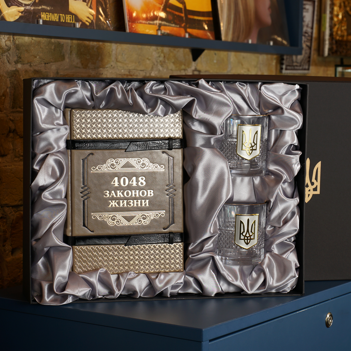 Подарунковий комплект – Книга «4048 законів життя» та Набір для віскі "Тризуб" латунь пандора з позолотою та сріблом (2 келихи) від BIANCANEVE