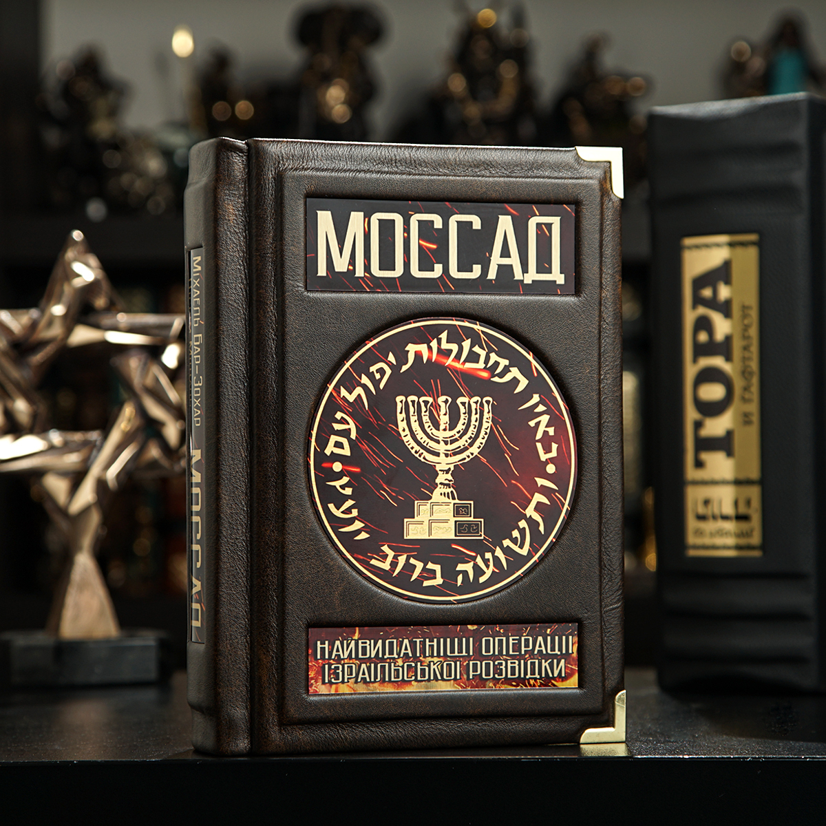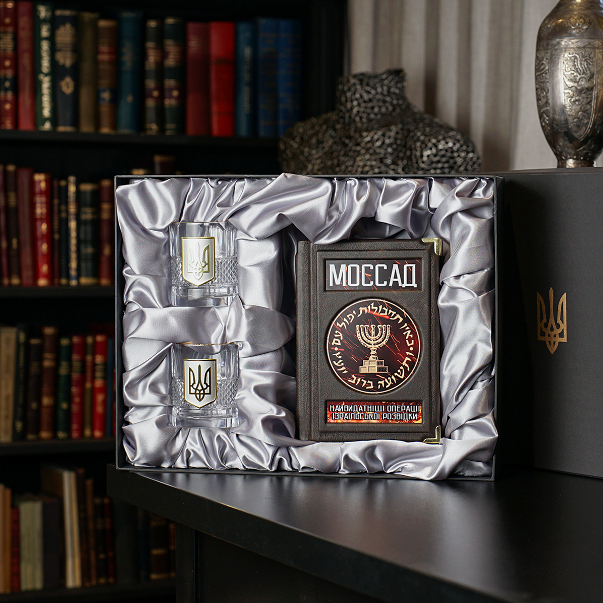 Подарунковий комплект кришталеві келихи з позолотою та сріблом "Тризуб" та книга "Моссад. Найвидатніші операції ізраїльської розвідки", Міхаель Бар-Зохар, Ніссім Мішаль (українською мовою)