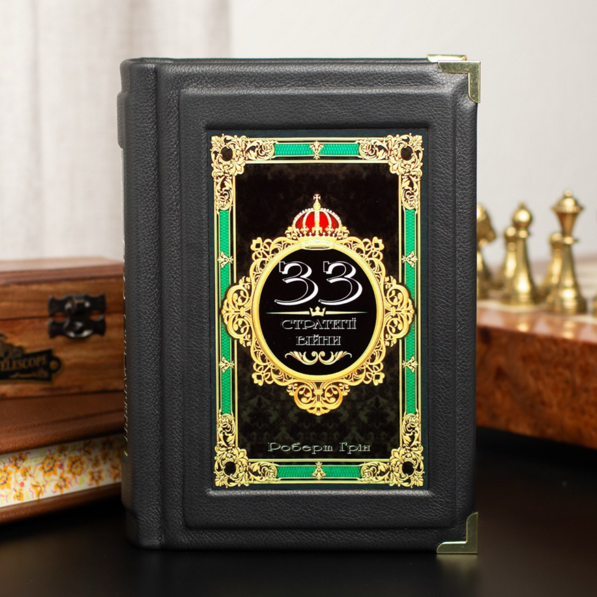 Подарунковий комплект кришталеві келихи з позолотою та сріблом "Тризуб" та книга Роберт Грін "33 стратегії війни" (українською мовою)