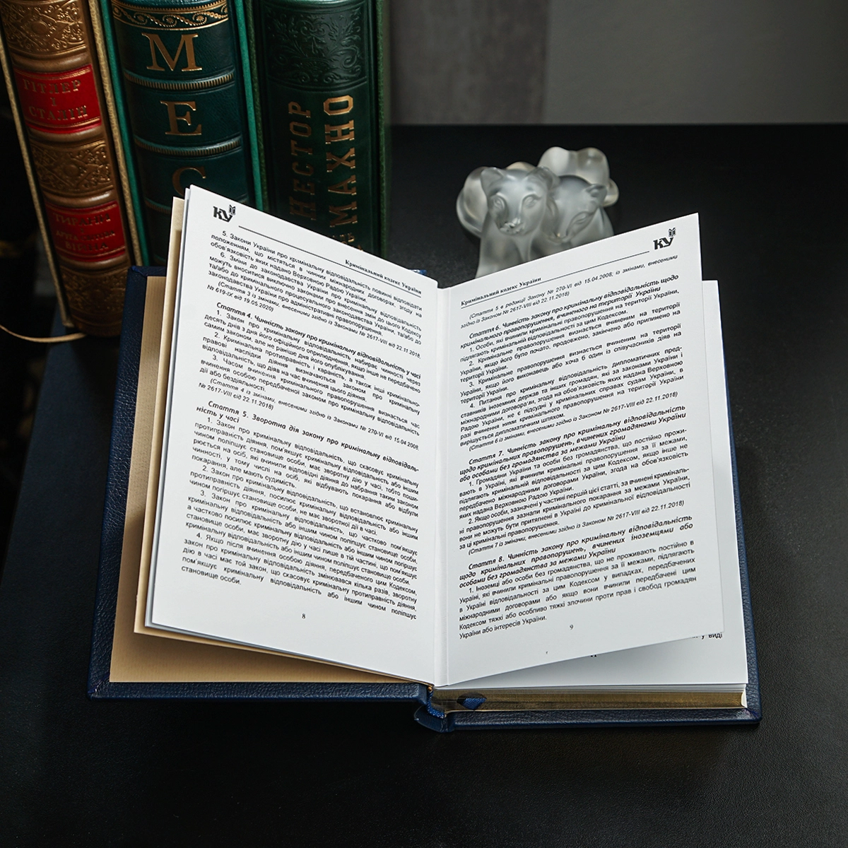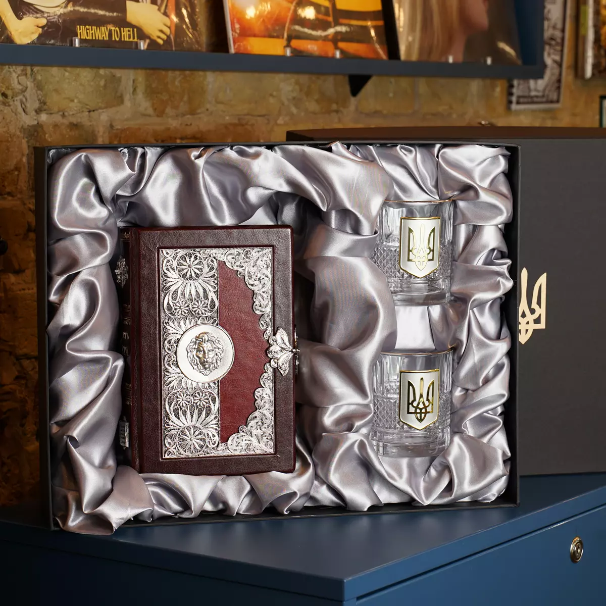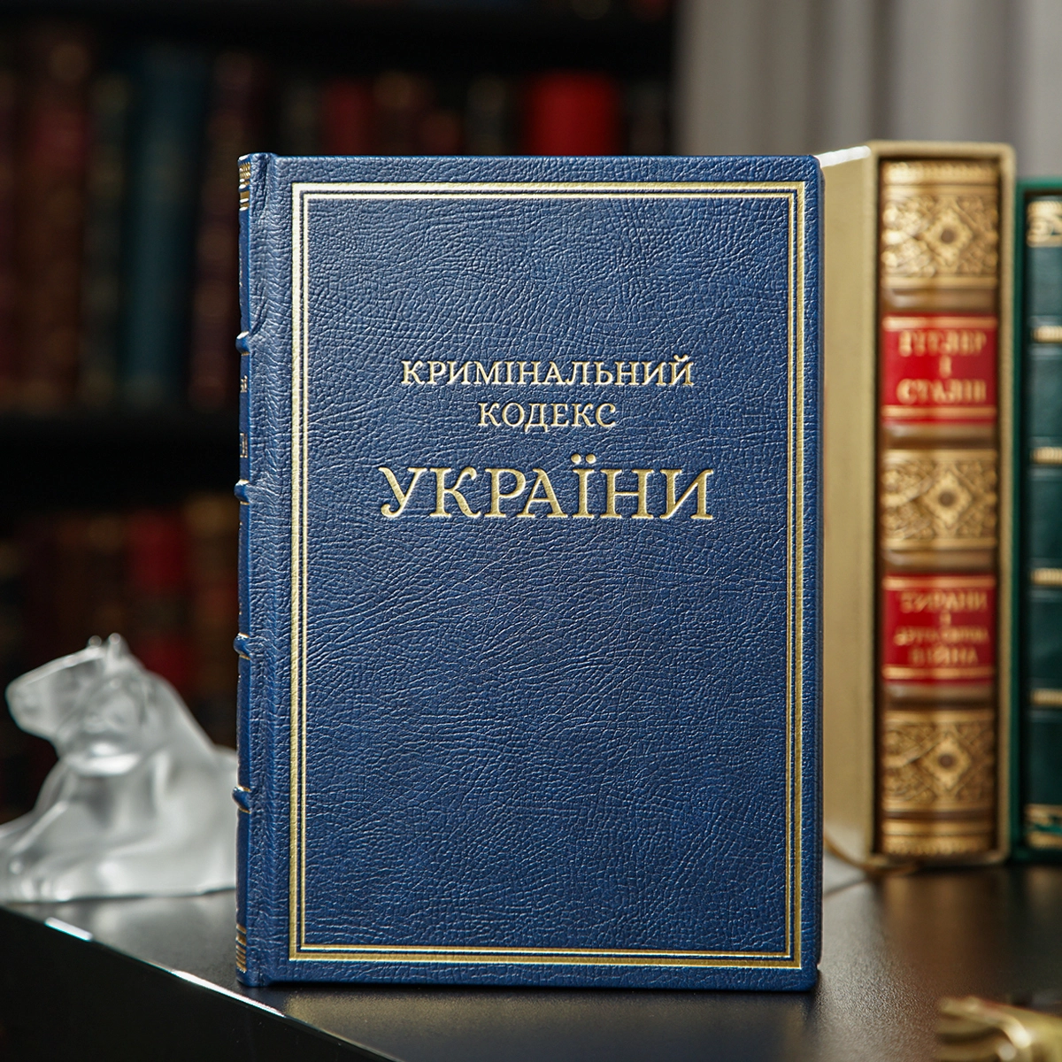 Подарунковий комплект кришталеві келихи з позолотою та сріблом "Тризуб" та книга "Кримінальний кодекс України" (українською мовою)